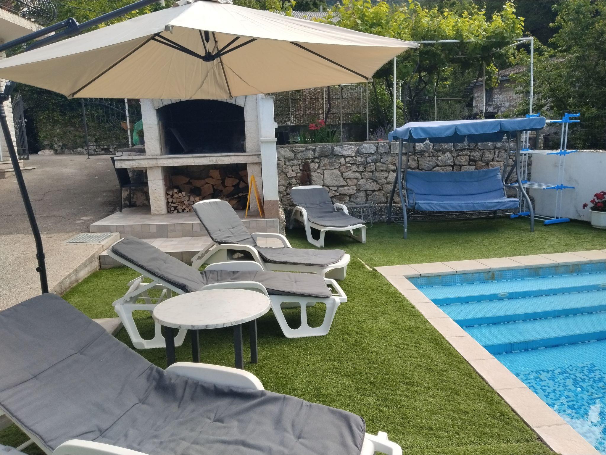 Haus bietet Platz für 7 Gäste. Die Betten sind in Schlafzimmern, die es 3 gibt, innerhalb einer Gesamtfläche von 120m2, angeordnet. Die Gäste haben eine eigene Terrasse zur Verfügung, auf der sie in warmen Sommernächten genießen können. Das Haus bietet Meerblick. Für vollen Genuss und Entspannung gibt es einen privaten Grill für Gäste dieser Unterkunft. Während ihres Aufenthalts können Gäste das gemeinsam zur Nutzung stehende Schwimmbad benutzen. In der Unterkunftseinheit besteht die Möglichkeit des Mitbringens von Haustieren, und die Dienstleistung ist im Preis der Unterkunft enthalten. Unterkunftseinheit hat Räume, die von dem Rest der Einheit abgetrennt werden. IM PREIS INBEGRIFFEN: Kurtaxe, Endreinigung, Klimatisierung, Zentralheizung, Pool, Parkplatz, Internet, Haustiere, Zusatzbett, Bügeleisen, Bügelbrett, Föhn. VERBINDLICHE ZUSÄTZLICHE KOSTEN: Aufzahlung für Kurzaufenthalte (prozentualer Zuschlag pro Nächtigungsanzahl: 30% - 1, 20% - 2, 10% - 3). Die Verfügbarkeit zusätzlicher Dienstleistungen in Ihrem reservierten Termin und die Preise derselben (falls nicht aufgeführt) müssen im Voraus überprüft werden. Zusätzliche Dienstleistungen die in der Zahlungsaufforderung nicht aufgeführt sind werden direkt beim Vermieter bezahlt, angenommen der Gast nutzt auch diese.