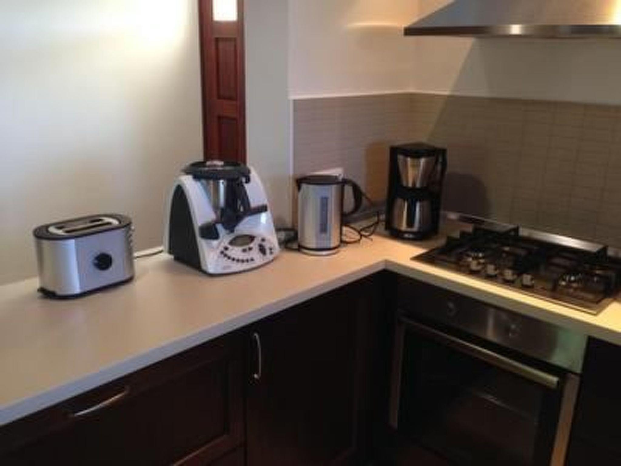 The kitchen has a large dining area. In addition to the usual appliances, it has a Thermomix. Basic cookery book and other recipes are available. The kitchen is equipped so that you can really cook. There is plenty of crockery and glasses as well as all the important cooking utensils, and the living room has a large sofa area that can be pulled out to form a 160 cm wide double bed. There is also a desk and a reading chair with table and floor lamp in the living room. The living room can be used as a separate bedroom, especially in the summer when life takes place outside. The TV with German programmes is located in the living room.Bedroom 1A double bed 160 x 200 cm and a three-door wardrobe. Mosquito blinds in the windows.Bedroom 2Two single beds, each 90 x 200 cm and two-door wardrobe. Mosquito blinds in the windows.Bedroom 3Two single beds, 90 x 200 cm and a spacious chest of drawers, mosquito blinds in the windows.