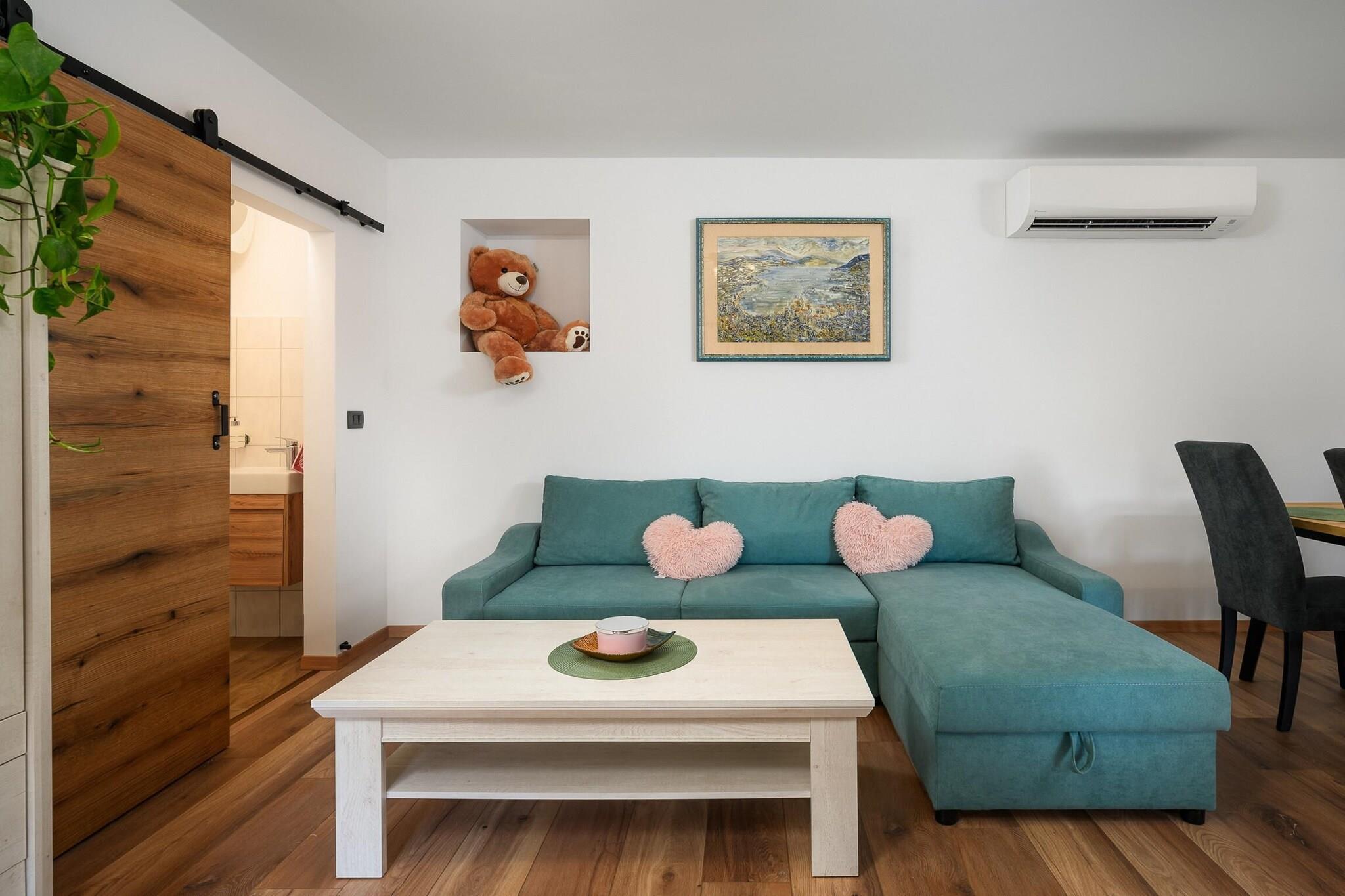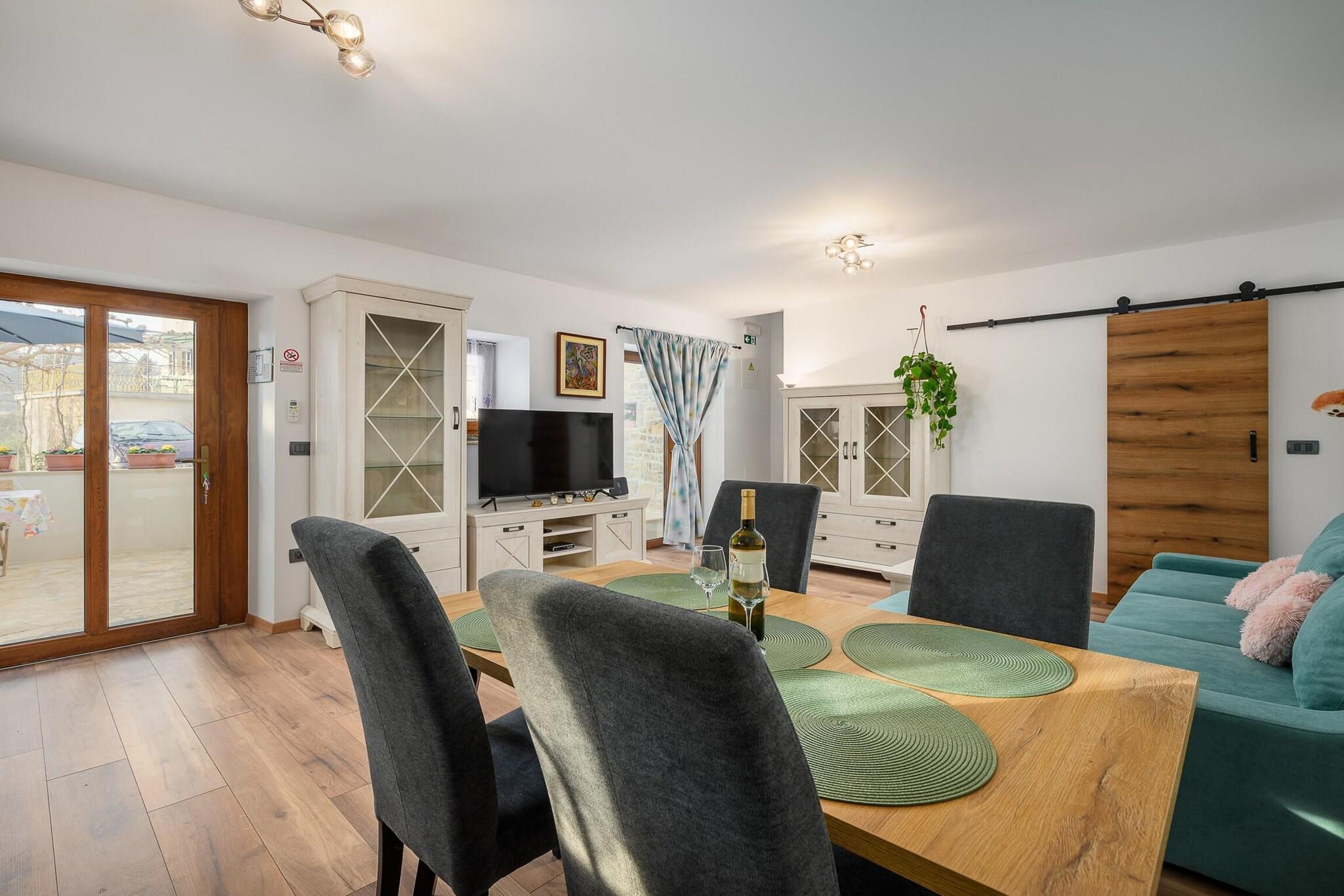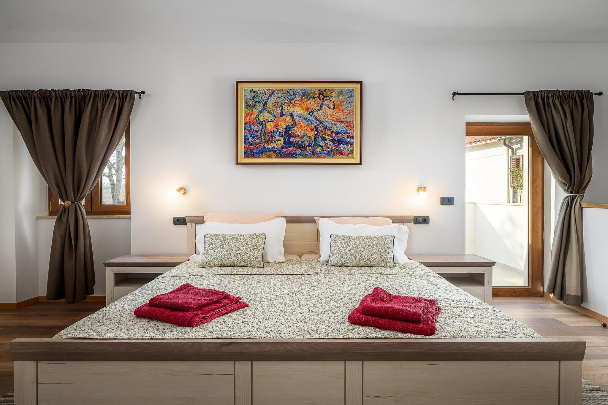 The landejendom i Grožnjan har 1 soveværelse(r) og kapacitet til 4 person(er). Bolig på 65 m² gode møbler og is very luminous, med udsigt til have og swimming pool. Er beliggende 3 km from the restaurant "Ponte Porton", 4 km fra byen "Grožnjan", 7 km from the restaurant "Buje", 7 km fra byen "Buje", 7 km fra supermarkedet "Buje", 7 km fra busstationen "Buje", 15 km fra vandland "Istralandia", 20 km fra stranden "Novigrad", 20 km fra stenstranden "Novigrad", 25 km fra forlystelsesparken "Dino park", 25 km fra de varme bade, 70 km fra togstationen "Pula", 70 km fra lufthavnen "Pula", 100 km fra lufthavnen "Trst" og er beliggende i en ideel for familier område og i flotte omgivelser. Tilbyder have, terrassemøbler, terrasse, vaskemaskine, grill, strygejern, internet (wifi), hårtørrer, altan, aircondition, swimming pool privat, utildækket parkering til i bygning tæt på, 1 TV, satellit (Sprog: Engelsk, Tysk), radio. The amerikanske køkken, elektrisk, med service og køleskab, ovn, opvaskemaskine, tallerkener/bestik, køkkenredskaber, kaffemaskine, brødrister og kedel.