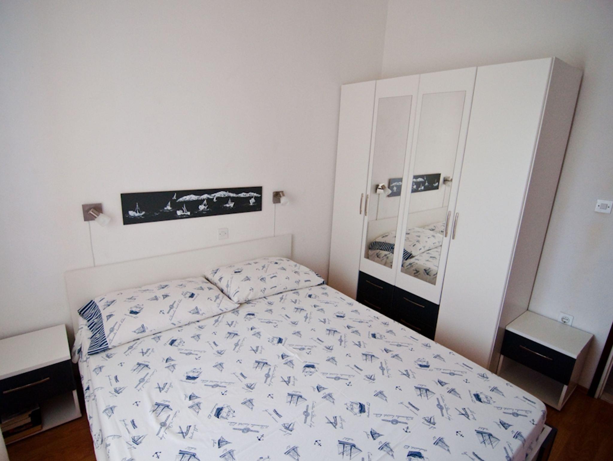 Ferienwohnung bietet Platz für 6 Gäste. Die Betten sind in Schlafzimmern, die es 3 gibt, innerhalb einer Gesamtfläche von 62m2, angeordnet. Die Gäste haben eine eigene Terrasse zur Verfügung, auf der sie in warmen Sommernächten genießen können. Das Apartment bietet Meerblick. Es ist erlaubt, Speisen auf dem Gemeinschafts-Grill vorzubereiten. IM PREIS INBEGRIFFEN: Kurtaxe, Endreinigung, Parkplatz, Internet, Bügeleisen, Bügelbrett, Föhn. VERBINDLICHE ZUSÄTZLICHE KOSTEN: Aufzahlung für Kurzaufenthalte (prozentualer Zuschlag pro Nächtigungsanzahl: 30% - 1, 20% - 2, 10% - 3). Die Verfügbarkeit zusätzlicher Dienstleistungen in Ihrem reservierten Termin und die Preise derselben (falls nicht aufgeführt) müssen im Voraus überprüft werden. Zusätzliche Dienstleistungen die in der Zahlungsaufforderung nicht aufgeführt sind werden direkt beim Vermieter bezahlt, angenommen der Gast nutzt auch diese.