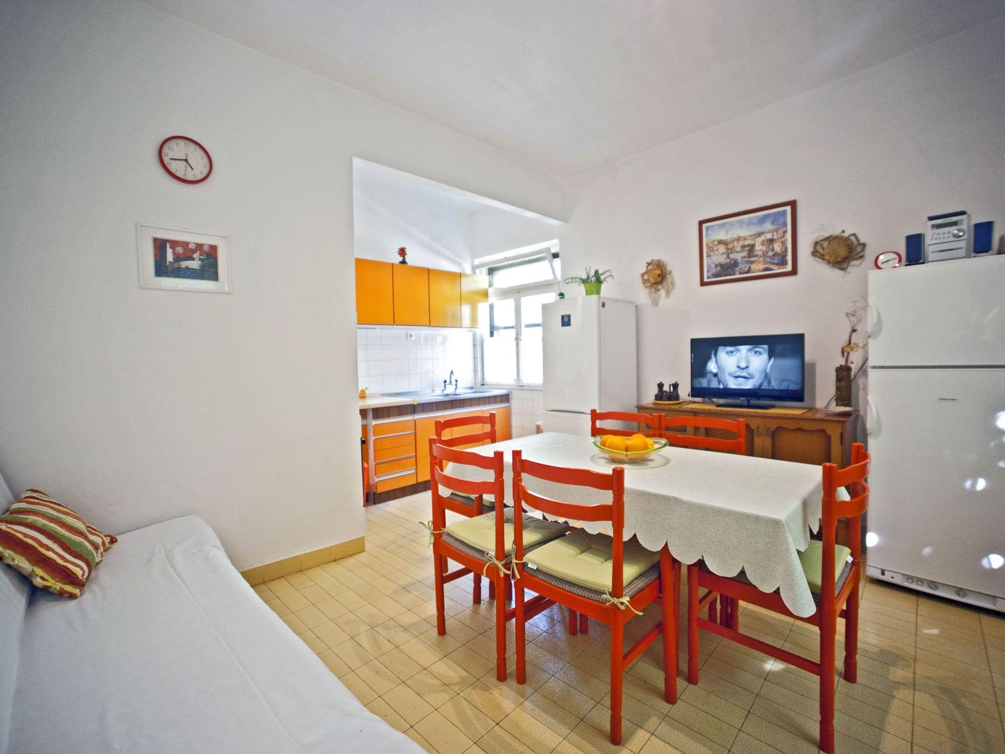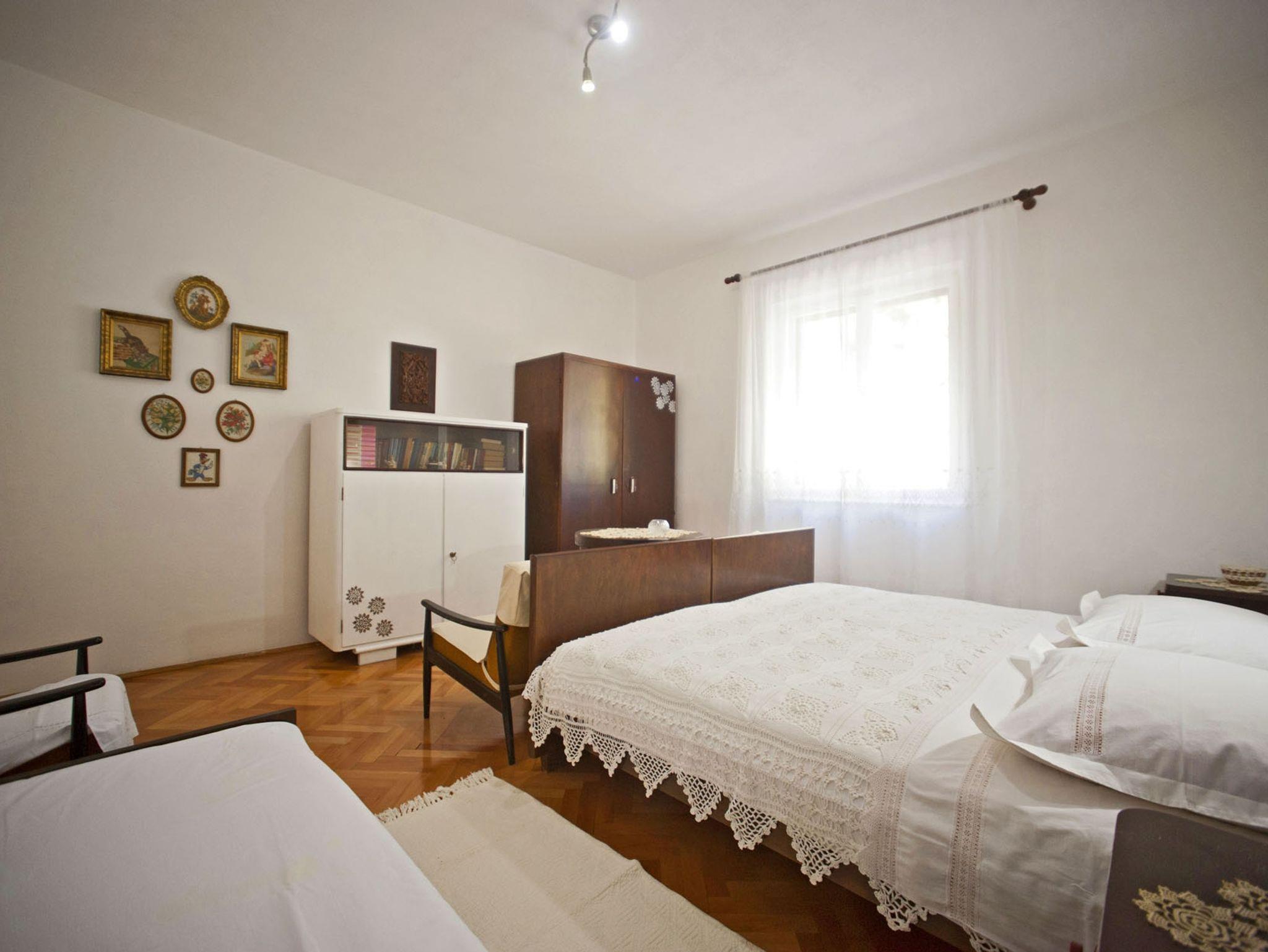 Haus bietet Platz für 8 Gäste. Die Betten sind in Schlafzimmern, die es 3 gibt, innerhalb einer Gesamtfläche von 77m2, angeordnet. Die Gäste haben eine eigene Terrasse zur Verfügung, auf der sie in warmen Sommernächten genießen können. Das Haus bietet Meerblick. Für vollen Genuss und Entspannung gibt es einen privaten Grill für Gäste dieser Unterkunft. In der Unterkunftseinheit besteht die Möglichkeit des Mitbringens von Haustieren gegen Aufpreis. IM PREIS INBEGRIFFEN: Kurtaxe, Endreinigung, Parkplatz, Internet, Kinderbett, tragbarer Grill, Liegestühle. VERBINDLICHE ZUSÄTZLICHE KOSTEN: Aufzahlung für Kurzaufenthalte (prozentualer Zuschlag pro Nächtigungsanzahl: 30% - 1, 20% - 2, 10% - 3). UNVERBINDLICHE ZUSÄTZLICHE KOSTEN: Haustiere (10,00 € pro Nacht). Die Verfügbarkeit zusätzlicher Dienstleistungen in Ihrem reservierten Termin und die Preise derselben (falls nicht aufgeführt) müssen im Voraus überprüft werden. Zusätzliche Dienstleistungen die in der Zahlungsaufforderung nicht aufgeführt sind werden direkt beim Vermieter bezahlt, angenommen der Gast nutzt auch diese. Ermäßigung auf den Grundpreis: Gratistag 14=13 (bei einem Aufenthalt von 14 Tagen oder mehr erhalten Sie einen Gratistag für den Aufenthalt bis 31.12.26).