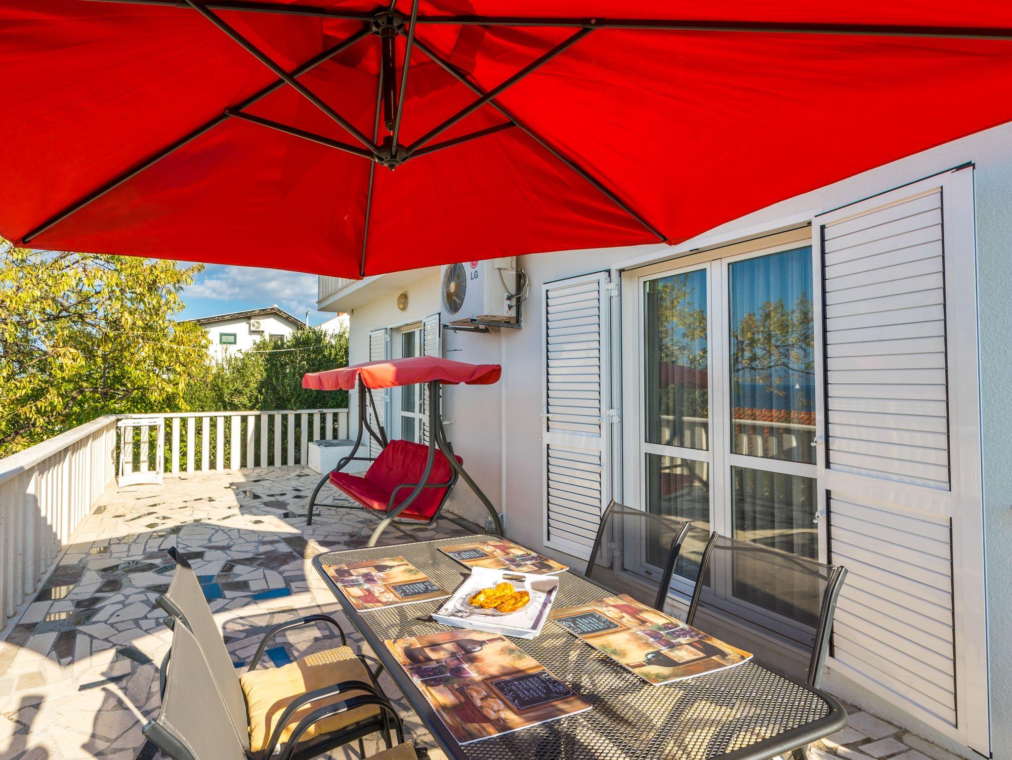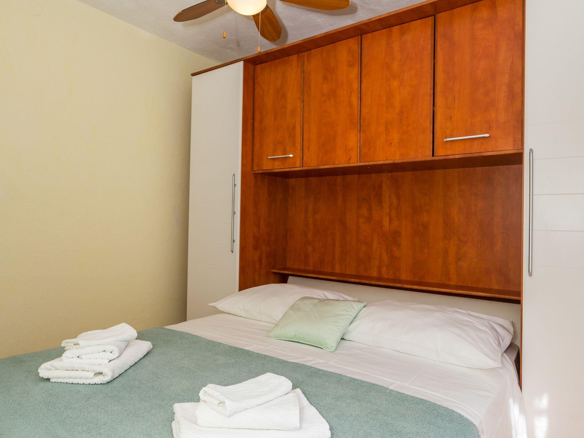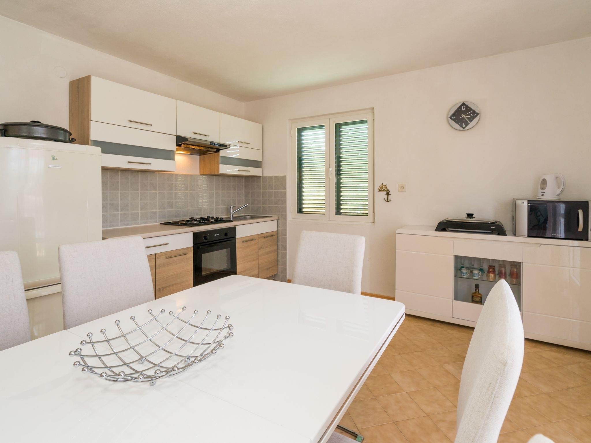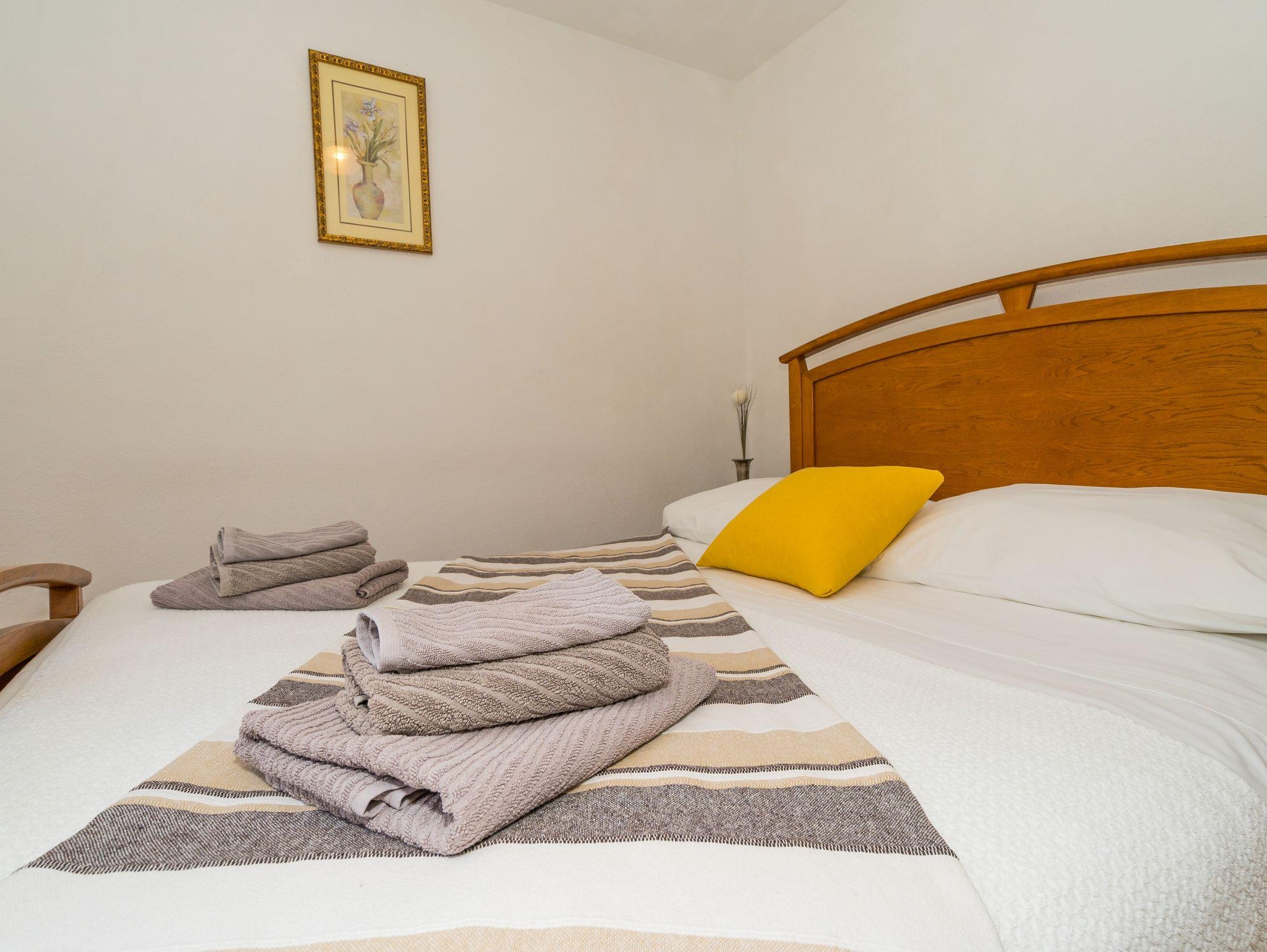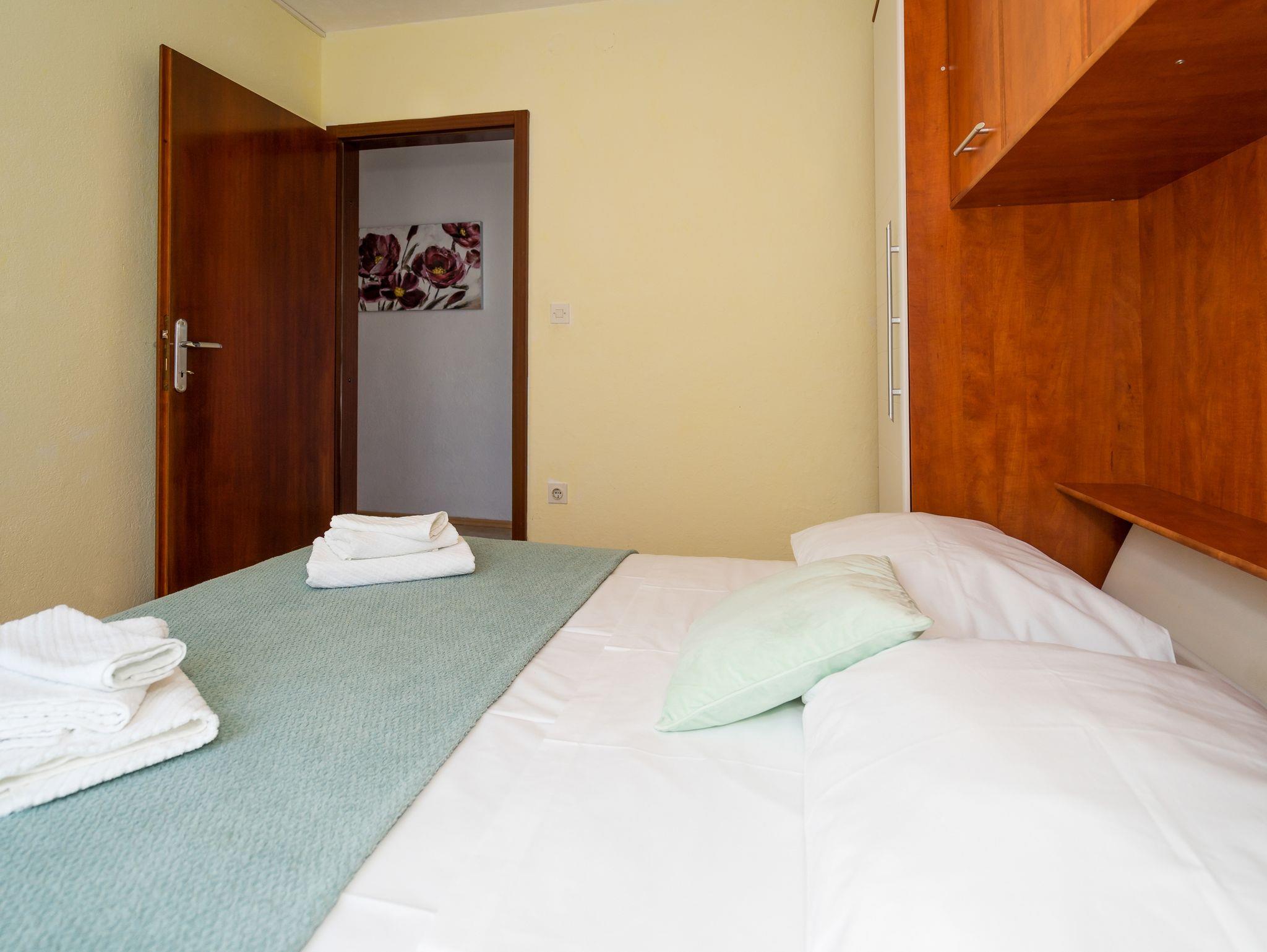 Ferienwohnung bietet Platz für 4 Gäste. Die Betten sind in Schlafzimmern, die es 2 gibt, innerhalb einer Gesamtfläche von 73m2, angeordnet. Die Gäste haben eine eigene Terrasse zur Verfügung, auf der sie in warmen Sommernächten genießen können. Das Apartment bietet Meerblick. Es ist erlaubt, Speisen auf dem Gemeinschafts-Grill vorzubereiten. IM PREIS INBEGRIFFEN: Kurtaxe, Endreinigung, Klimatisierung, Parkplatz, Internet, Kinderbett, Bügeleisen, Bügelbrett, Föhn. VERBINDLICHE ZUSÄTZLICHE KOSTEN: Aufzahlung für Kurzaufenthalte (prozentualer Zuschlag pro Nächtigungsanzahl: 30% - 1, 20% - 2, 10% - 3). Die Verfügbarkeit zusätzlicher Dienstleistungen in Ihrem reservierten Termin und die Preise derselben (falls nicht aufgeführt) müssen im Voraus überprüft werden. Zusätzliche Dienstleistungen die in der Zahlungsaufforderung nicht aufgeführt sind werden direkt beim Vermieter bezahlt, angenommen der Gast nutzt auch diese.