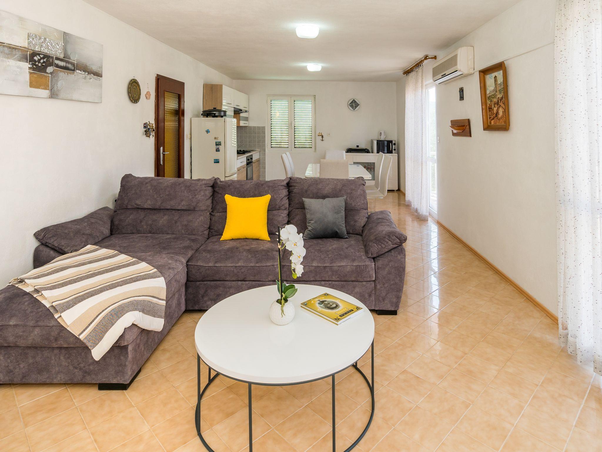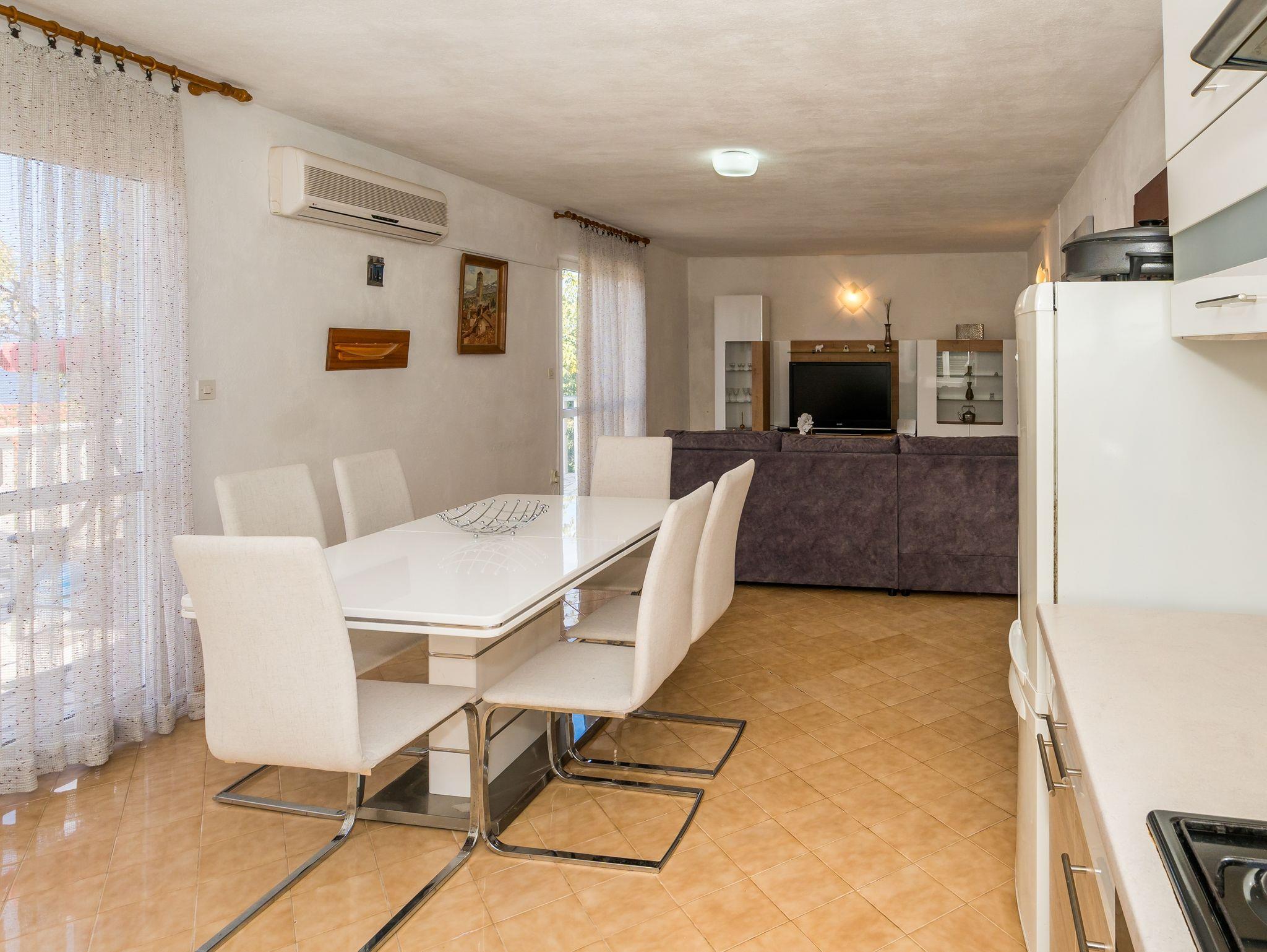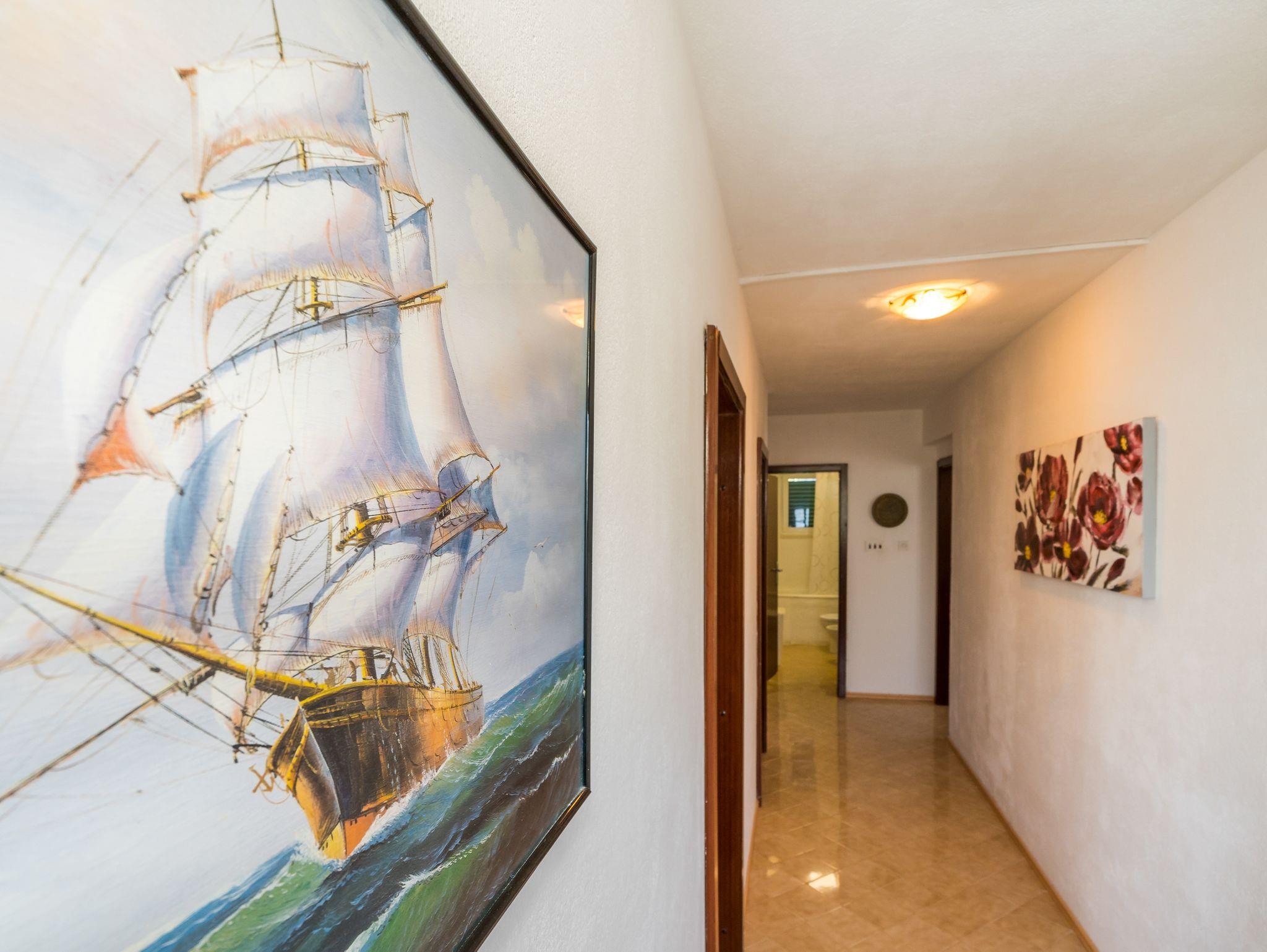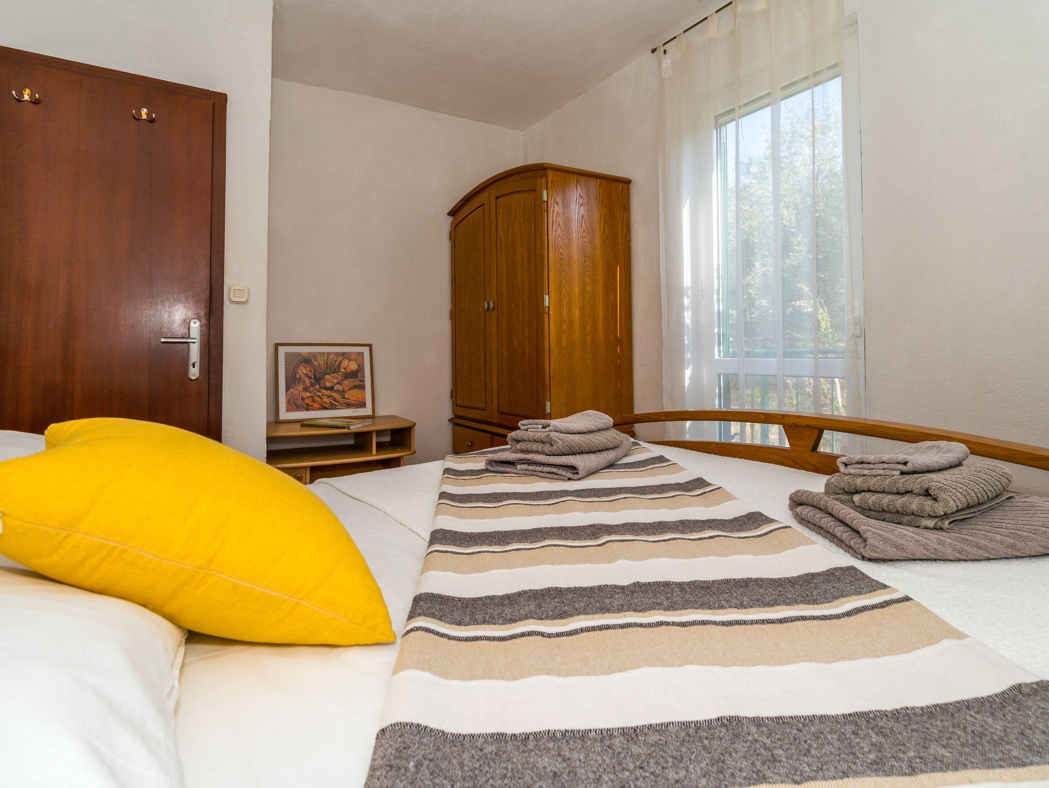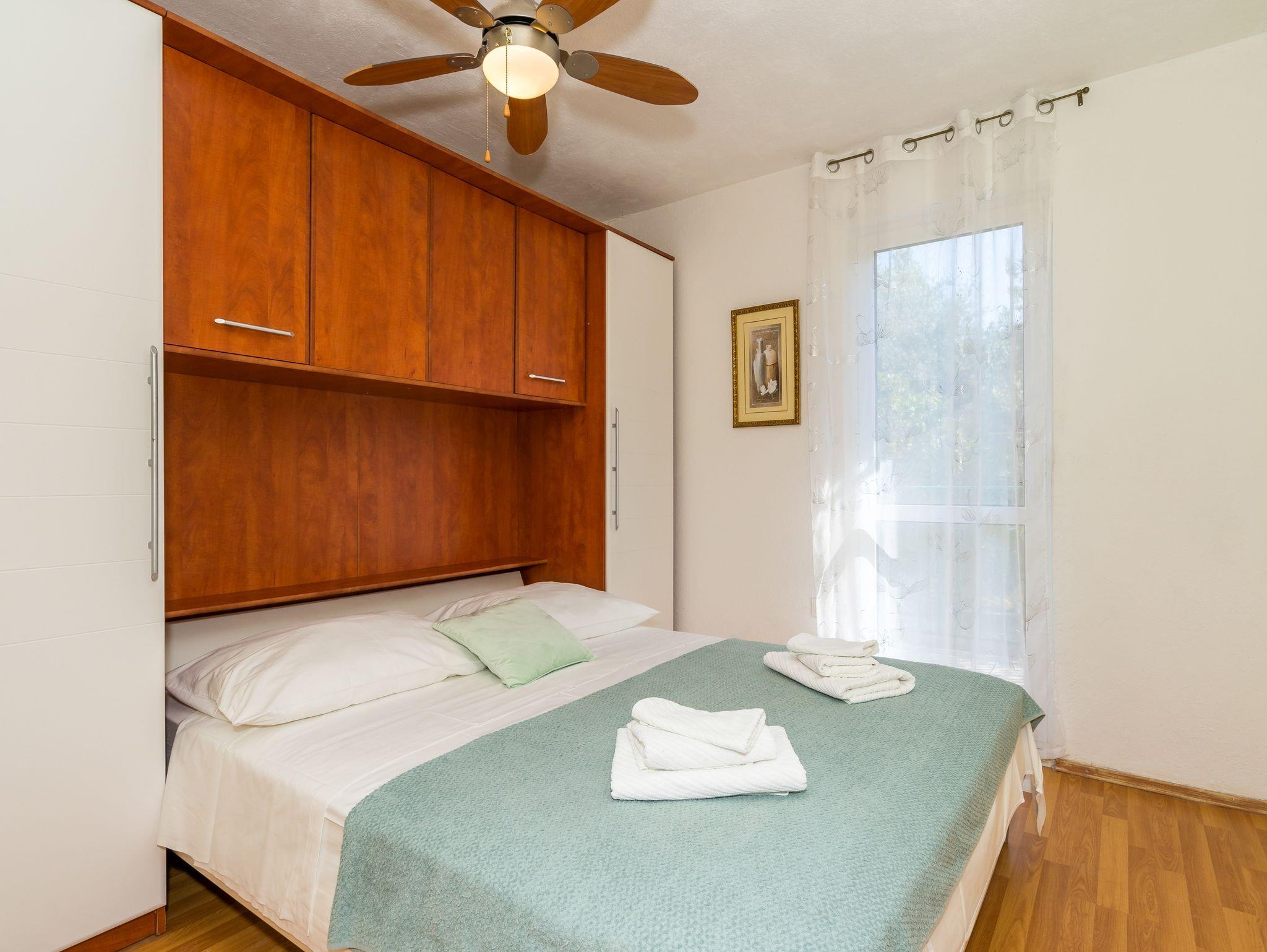 Ferienwohnung bietet Platz für 4 Gäste. Die Betten sind in Schlafzimmern, die es 2 gibt, innerhalb einer Gesamtfläche von 73m2, angeordnet. Die Gäste haben eine eigene Terrasse zur Verfügung, auf der sie in warmen Sommernächten genießen können. Das Apartment bietet Meerblick. Es ist erlaubt, Speisen auf dem Gemeinschafts-Grill vorzubereiten. IM PREIS INBEGRIFFEN: Kurtaxe, Endreinigung, Klimatisierung, Parkplatz, Internet, Kinderbett, Bügeleisen, Bügelbrett, Föhn. VERBINDLICHE ZUSÄTZLICHE KOSTEN: Aufzahlung für Kurzaufenthalte (prozentualer Zuschlag pro Nächtigungsanzahl: 30% - 1, 20% - 2, 10% - 3). Die Verfügbarkeit zusätzlicher Dienstleistungen in Ihrem reservierten Termin und die Preise derselben (falls nicht aufgeführt) müssen im Voraus überprüft werden. Zusätzliche Dienstleistungen die in der Zahlungsaufforderung nicht aufgeführt sind werden direkt beim Vermieter bezahlt, angenommen der Gast nutzt auch diese.