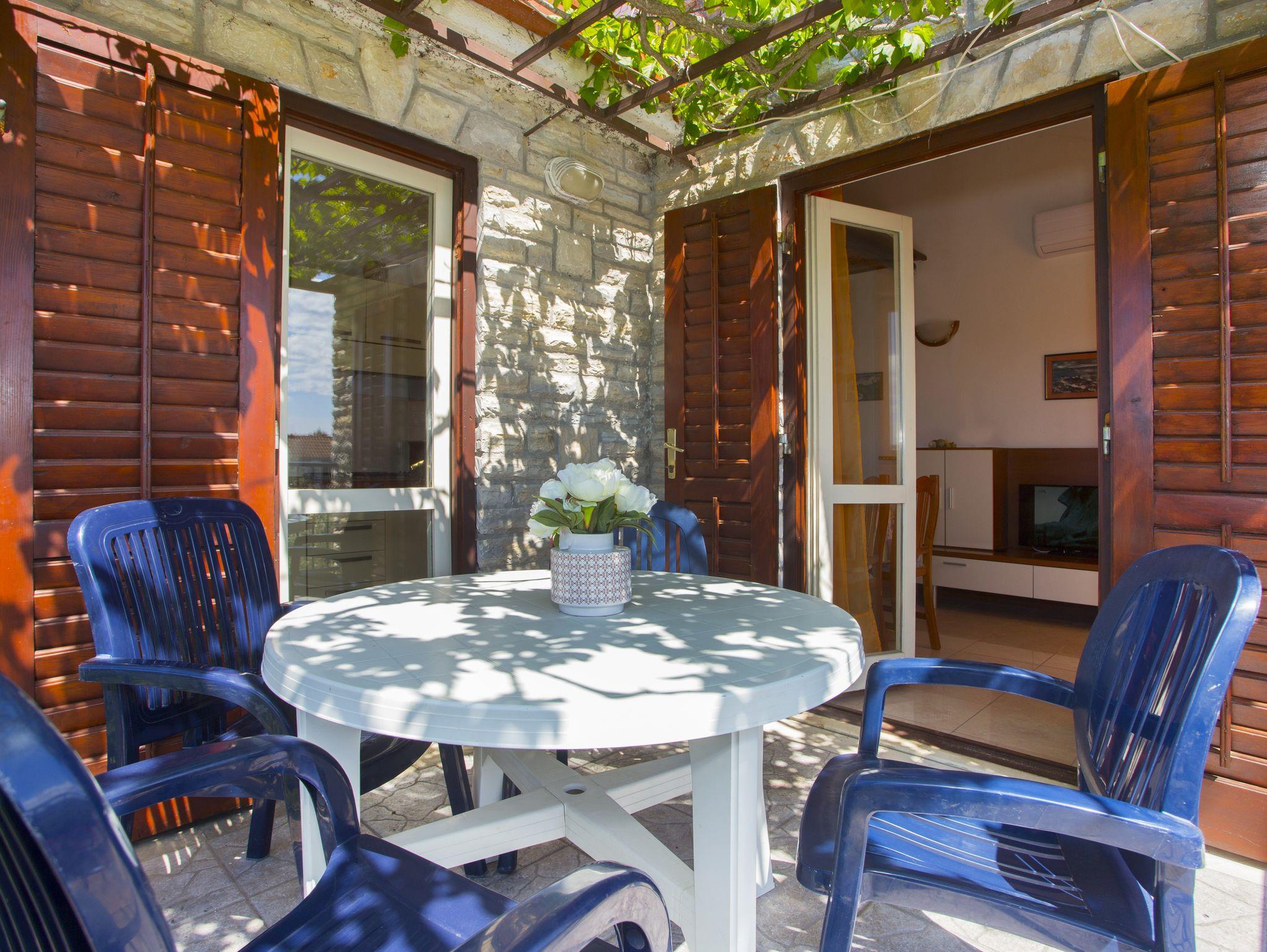 Umgebung des Objekts (Ordentlich), Hof (50m2, Sitzbereich), Parkplatz (Anzahl der Parkplätze: 4, Entfernung vom Objekt: im Hof), Grill: gemeinsam, WiFi Internet, Föhn, Bügeleisen, Bügelbrett, Sonnenschirm, Liegestühle