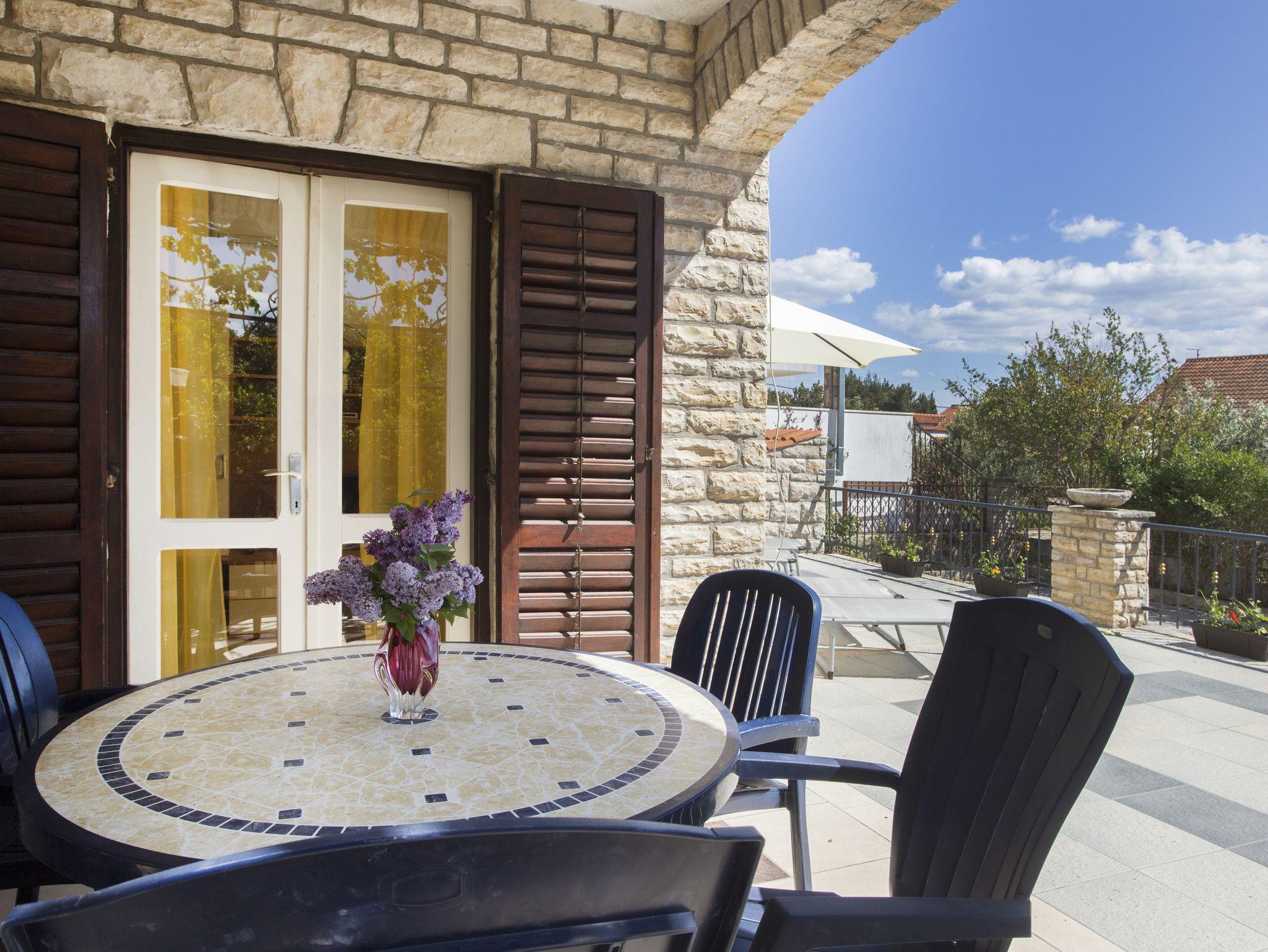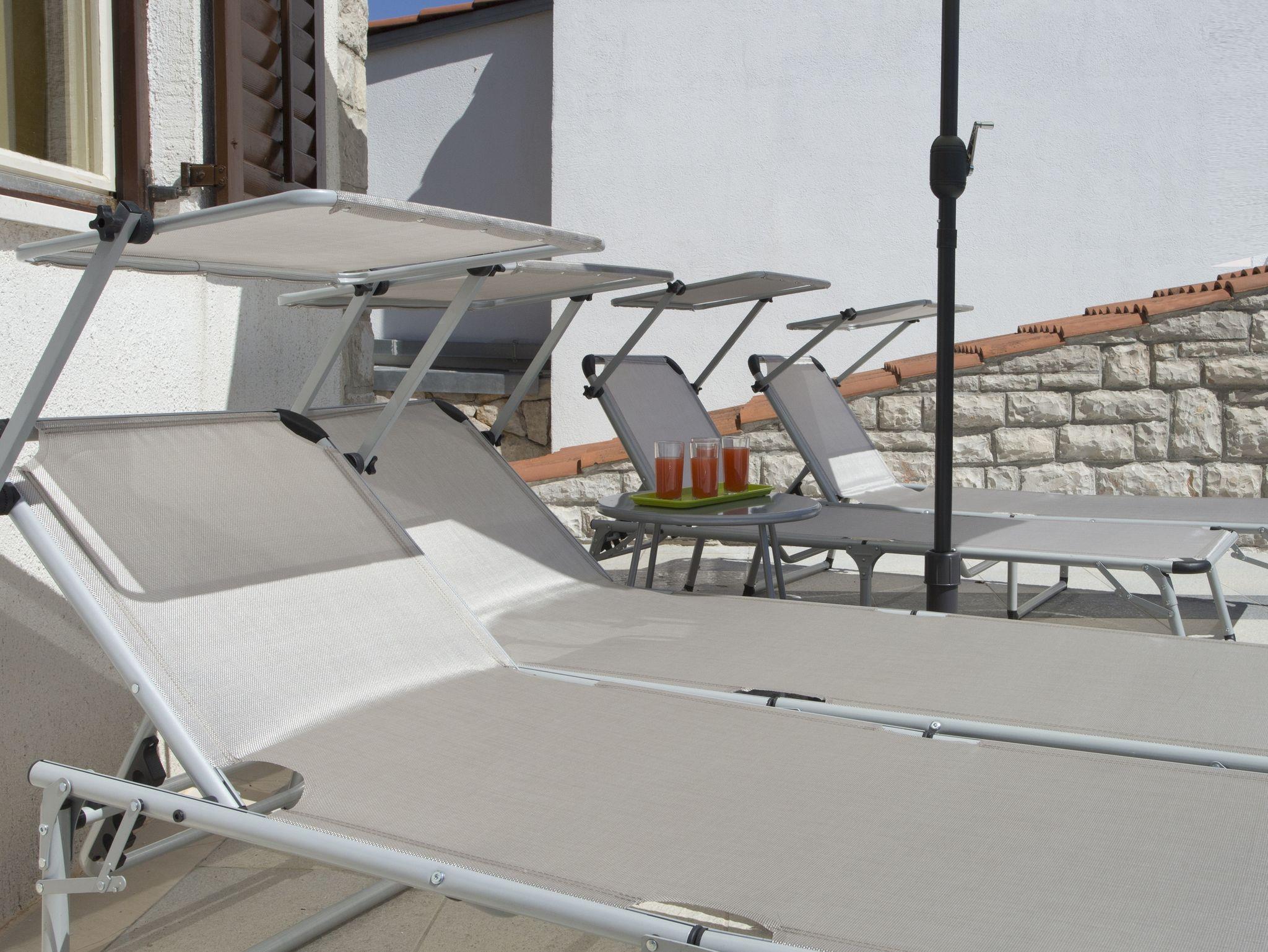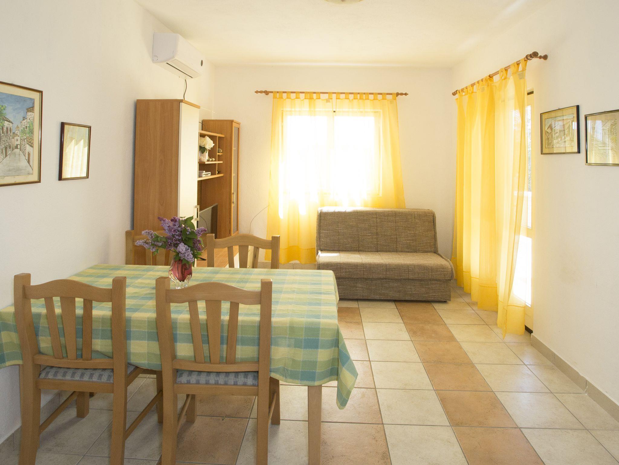 Ferienwohnung bietet Platz für 5 Gäste. Die Betten sind in Schlafzimmern, die es 2 gibt, und in Wohnzimmer, innerhalb einer Gesamtfläche von 47m2, angeordnet. Die Gäste haben eine eigene Terrasse zur Verfügung, auf der sie in warmen Sommernächten genießen können. Das Apartment bietet Meerblick. Es ist erlaubt, Speisen auf dem Gemeinschafts-Grill vorzubereiten. IM PREIS INBEGRIFFEN: Kurtaxe, Endreinigung, Klimatisierung, Parkplatz, Internet, Bügeleisen, Bügelbrett, Föhn, Sonnenschirm, Liegestühle. Die Verfügbarkeit zusätzlicher Dienstleistungen in Ihrem reservierten Termin und die Preise derselben (falls nicht aufgeführt) müssen im Voraus überprüft werden. Zusätzliche Dienstleistungen die in der Zahlungsaufforderung nicht aufgeführt sind werden direkt beim Vermieter bezahlt, angenommen der Gast nutzt auch diese.