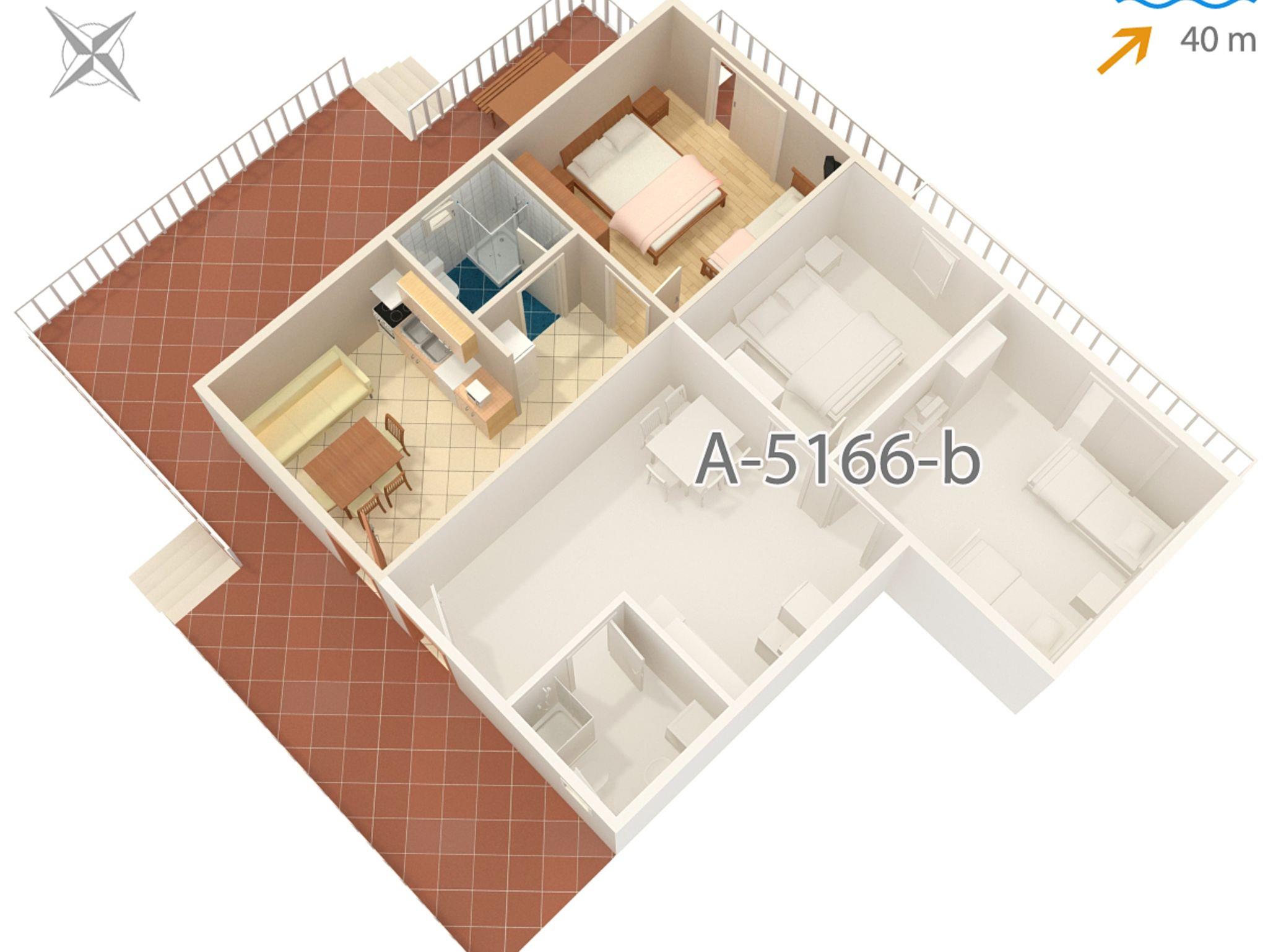 Ferienwohnung bietet Platz für 4 Gäste. Die Betten sind in Schlafzimmern, die es 1 gibt, und in Esszimmer, innerhalb einer Gesamtfläche von 34m2, angeordnet. Die Gäste haben eine eigene Terrasse zur Verfügung, auf der sie in warmen Sommernächten genießen können. Das Apartment bietet Meerblick. Es ist erlaubt, Speisen auf dem Gemeinschafts-Grill vorzubereiten. IM PREIS INBEGRIFFEN: Kurtaxe, Endreinigung, Klimatisierung, Parkplatz, Internet, Wäschewaschen, Kinderbett, Bügeleisen. VERBINDLICHE ZUSÄTZLICHE KOSTEN: Aufzahlung für Kurzaufenthalte (prozentualer Zuschlag pro Nächtigungsanzahl: 30% - 1, 20% - 2, 10% - 3). Die Verfügbarkeit zusätzlicher Dienstleistungen in Ihrem reservierten Termin und die Preise derselben (falls nicht aufgeführt) müssen im Voraus überprüft werden. Zusätzliche Dienstleistungen die in der Zahlungsaufforderung nicht aufgeführt sind werden direkt beim Vermieter bezahlt, angenommen der Gast nutzt auch diese.