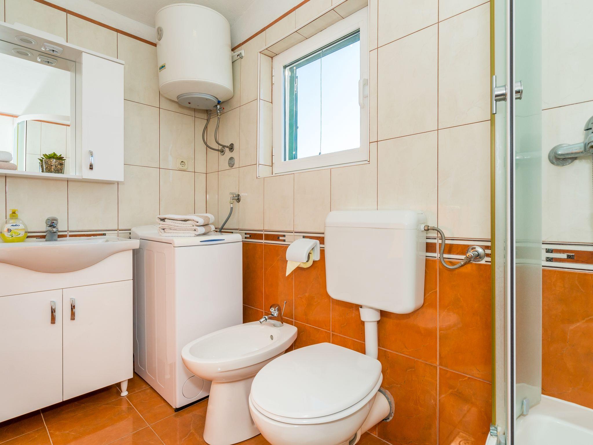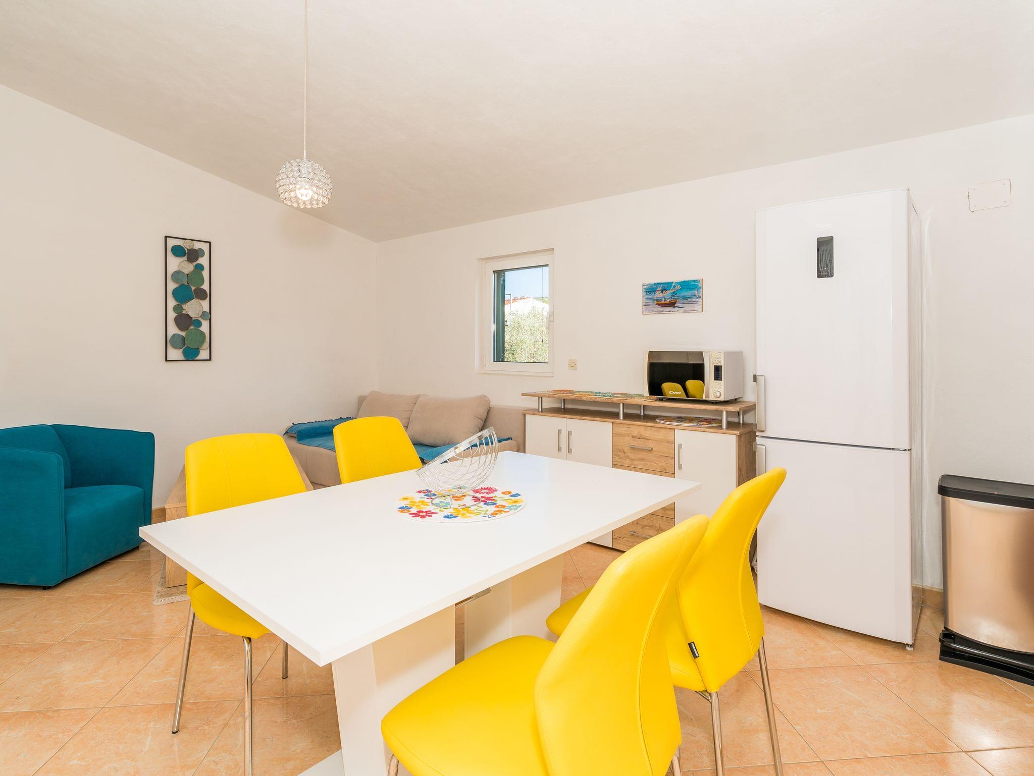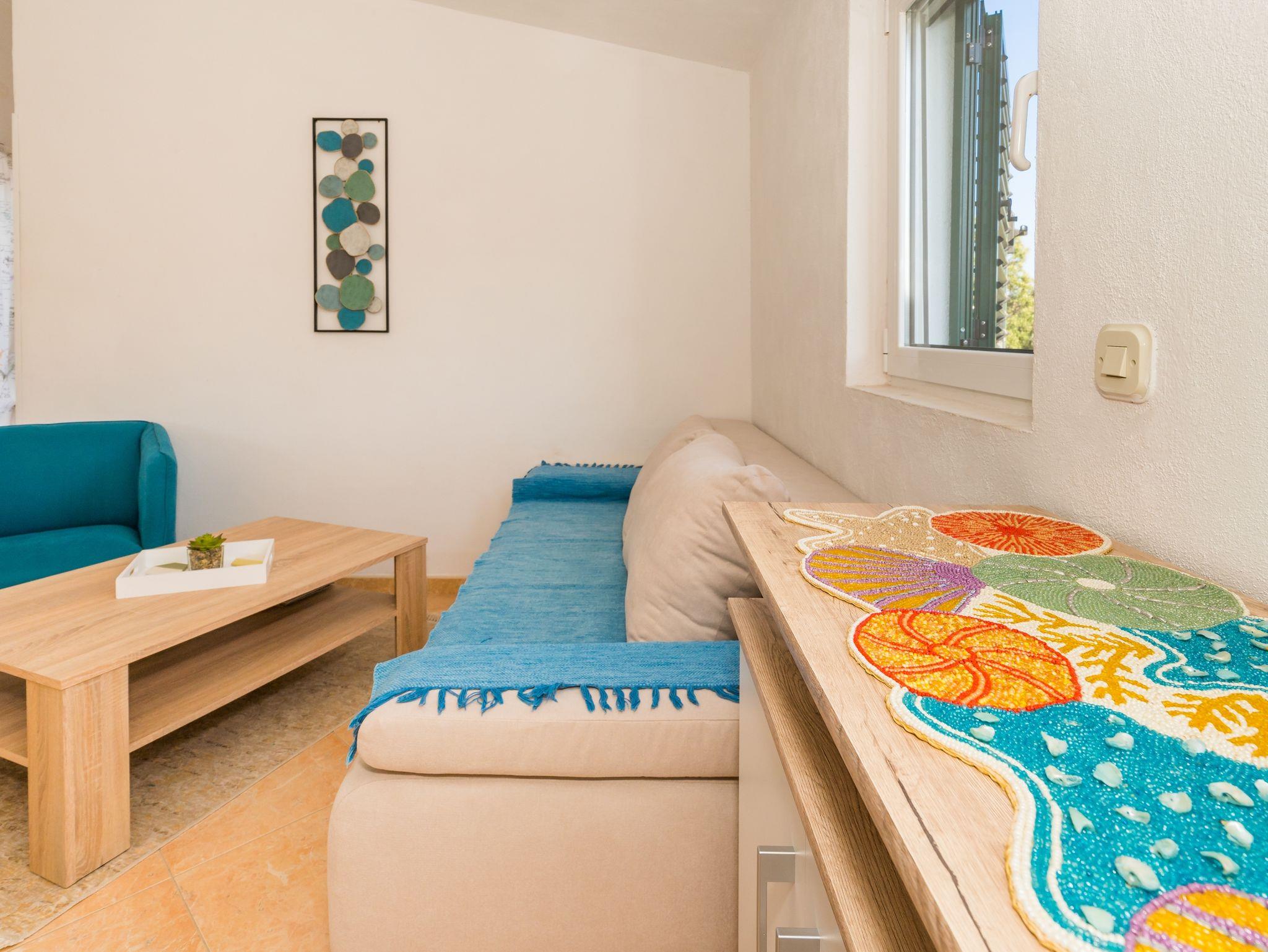 Ferienwohnung bietet Platz für 3 Gäste. Die Betten sind in Schlafzimmern, die es 1 gibt, und in Wohnzimmer, innerhalb einer Gesamtfläche von 41m2, angeordnet. Die Gäste haben eine eigene Terrasse zur Verfügung, auf der sie in warmen Sommernächten genießen können. Das Apartment bietet Meerblick. Es ist erlaubt, Speisen auf dem Gemeinschafts-Grill vorzubereiten. IM PREIS INBEGRIFFEN: Kurtaxe, Endreinigung, Klimatisierung, Parkplatz, Internet, Kinderbett, Bügeleisen, Bügelbrett, Föhn. VERBINDLICHE ZUSÄTZLICHE KOSTEN: Aufzahlung für Kurzaufenthalte (prozentualer Zuschlag pro Nächtigungsanzahl: 30% - 1, 20% - 2, 10% - 3). Die Verfügbarkeit zusätzlicher Dienstleistungen in Ihrem reservierten Termin und die Preise derselben (falls nicht aufgeführt) müssen im Voraus überprüft werden. Zusätzliche Dienstleistungen die in der Zahlungsaufforderung nicht aufgeführt sind werden direkt beim Vermieter bezahlt, angenommen der Gast nutzt auch diese. Ermäßigung auf den Grundpreis: Gratistag 14=13 (bei einem Aufenthalt von 14 Tagen oder mehr erhalten Sie einen Gratistag für den Aufenthalt bis 31.12.26).