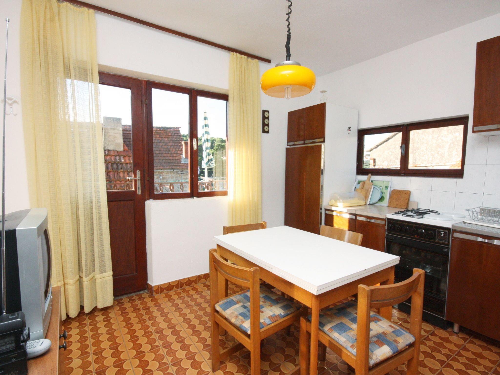 Ferienwohnung bietet Platz für 4 Gäste. Die Betten sind in Schlafzimmern, die es 2 gibt, innerhalb einer Gesamtfläche von 29m2, angeordnet. Die Gäste haben einen eigenen Balkon zur Verfügung, auf der sie in warmen Sommernächten genießen können. Das Apartment bietet Meerblick. In der Unterkunftseinheit besteht die Möglichkeit des Mitbringens von Haustieren, und die Dienstleistung ist im Preis der Unterkunft enthalten. IM PREIS INBEGRIFFEN: Kurtaxe, Endreinigung, Klimatisierung, Internet, Haustiere, Bügeleisen. VERBINDLICHE ZUSÄTZLICHE KOSTEN: Aufzahlung für Kurzaufenthalte (prozentualer Zuschlag pro Nächtigungsanzahl: 30% - 1, 20% - 2, 10% - 3). Die Verfügbarkeit zusätzlicher Dienstleistungen in Ihrem reservierten Termin und die Preise derselben (falls nicht aufgeführt) müssen im Voraus überprüft werden. Zusätzliche Dienstleistungen die in der Zahlungsaufforderung nicht aufgeführt sind werden direkt beim Vermieter bezahlt, angenommen der Gast nutzt auch diese. Ermäßigung auf den Grundpreis: Gratistag 14=13 (bei einem Aufenthalt von 14 Tagen oder mehr erhalten Sie einen Gratistag für den Aufenthalt bis 31.12.26).