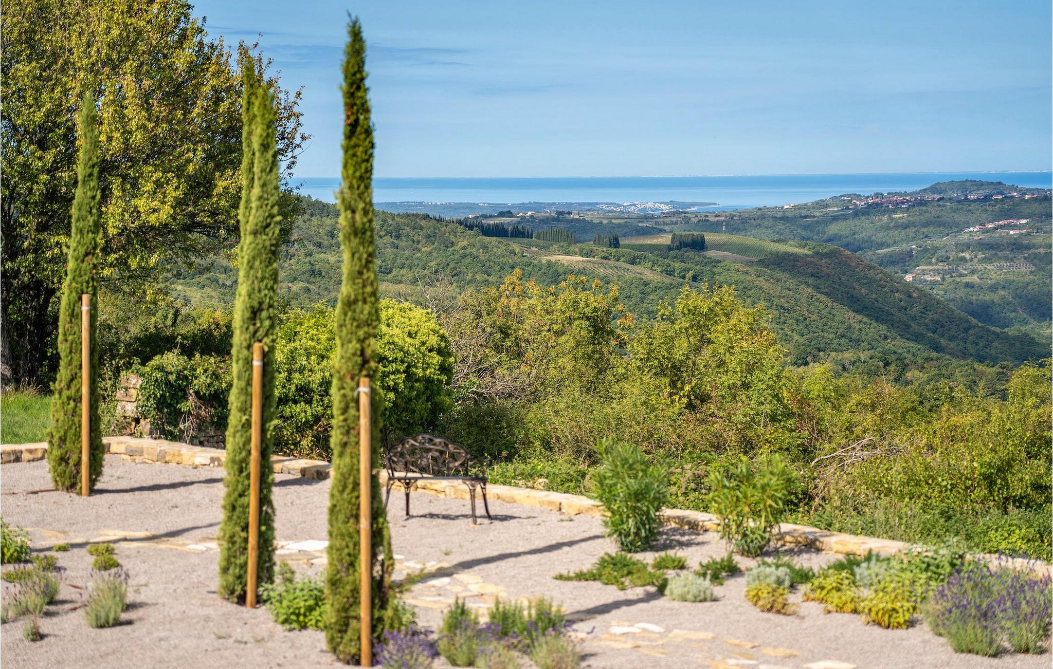 Book Villa Paradiso DIstria og tilbring en uforglemmelig ferie med dine kære i det magiske Istrien.Villa Paradiso dIstria ligger på en bakke med en fantastisk panoramaudsigt over landskabet i det nordlige Istrien i den lille landsby Kucibreg nær Momjan og Buje. Disse to steder finder du også alle de faciliteter, du har brug for på ferien: restauranter, caféer, dagligvarebutikker og supermarkeder. Den nærmeste sandstrand ligger omkring 22 km fra villaen, nord for Umag, ved navn Kanegra. For at lære regionen bedre at kende, anbefaler vi ture til kystbyerne Umag - kendt for ATP-tennisturneringen - og Novigrad, samt til de mere landlige byer Buje eller Motovun - kendt for sin årlige filmfestival. Oplev regionen, mens du vandrer eller cykler, og nyd naturen, der ligger for dine fødder.