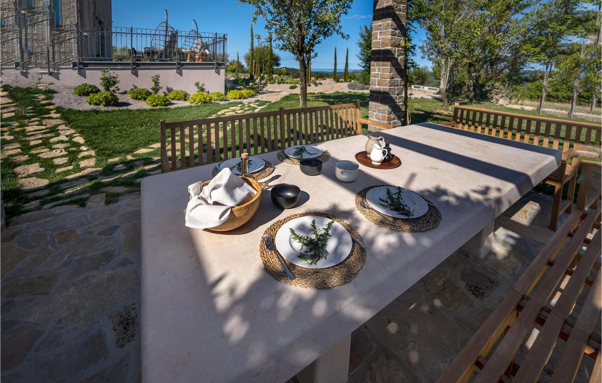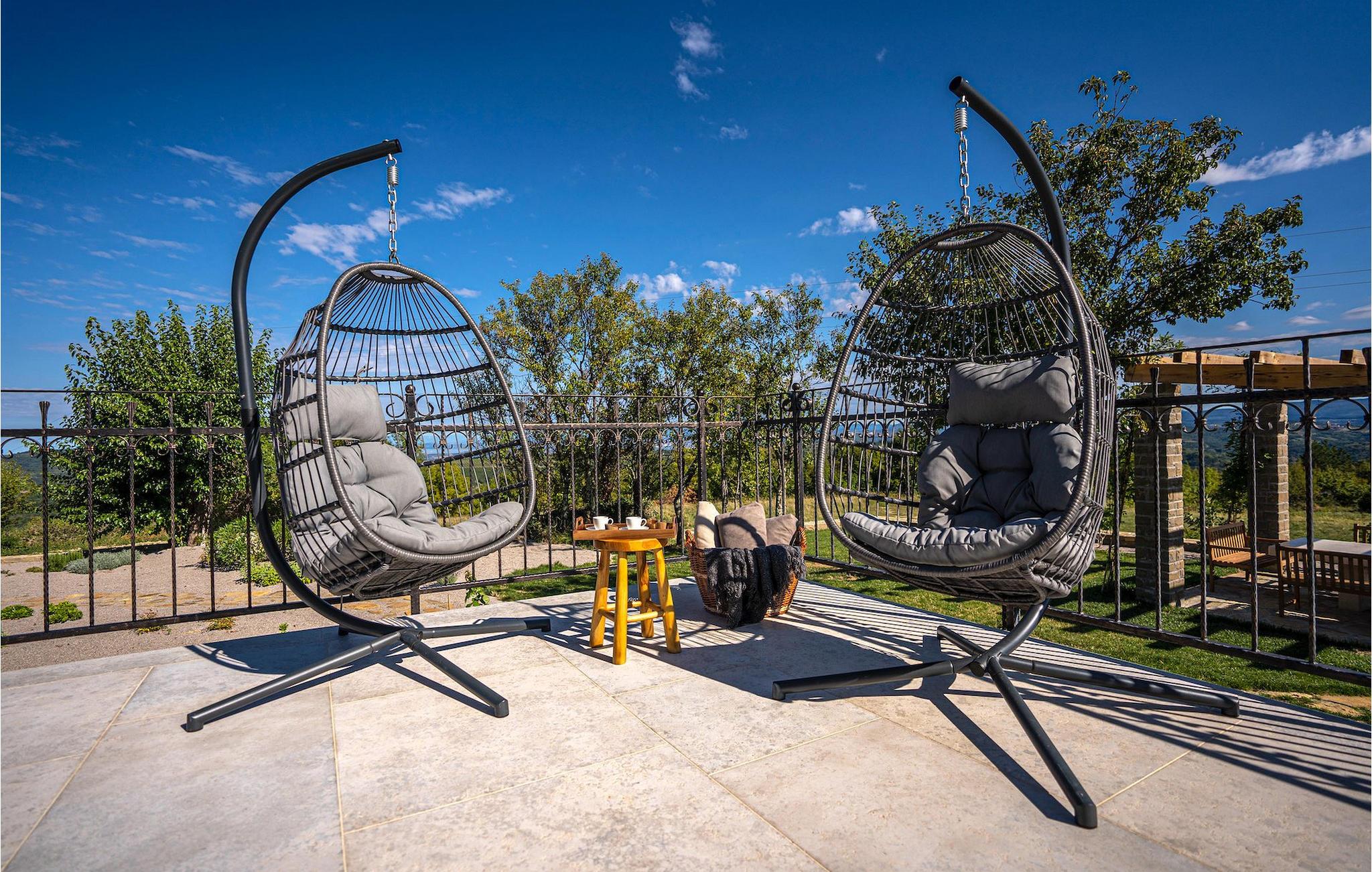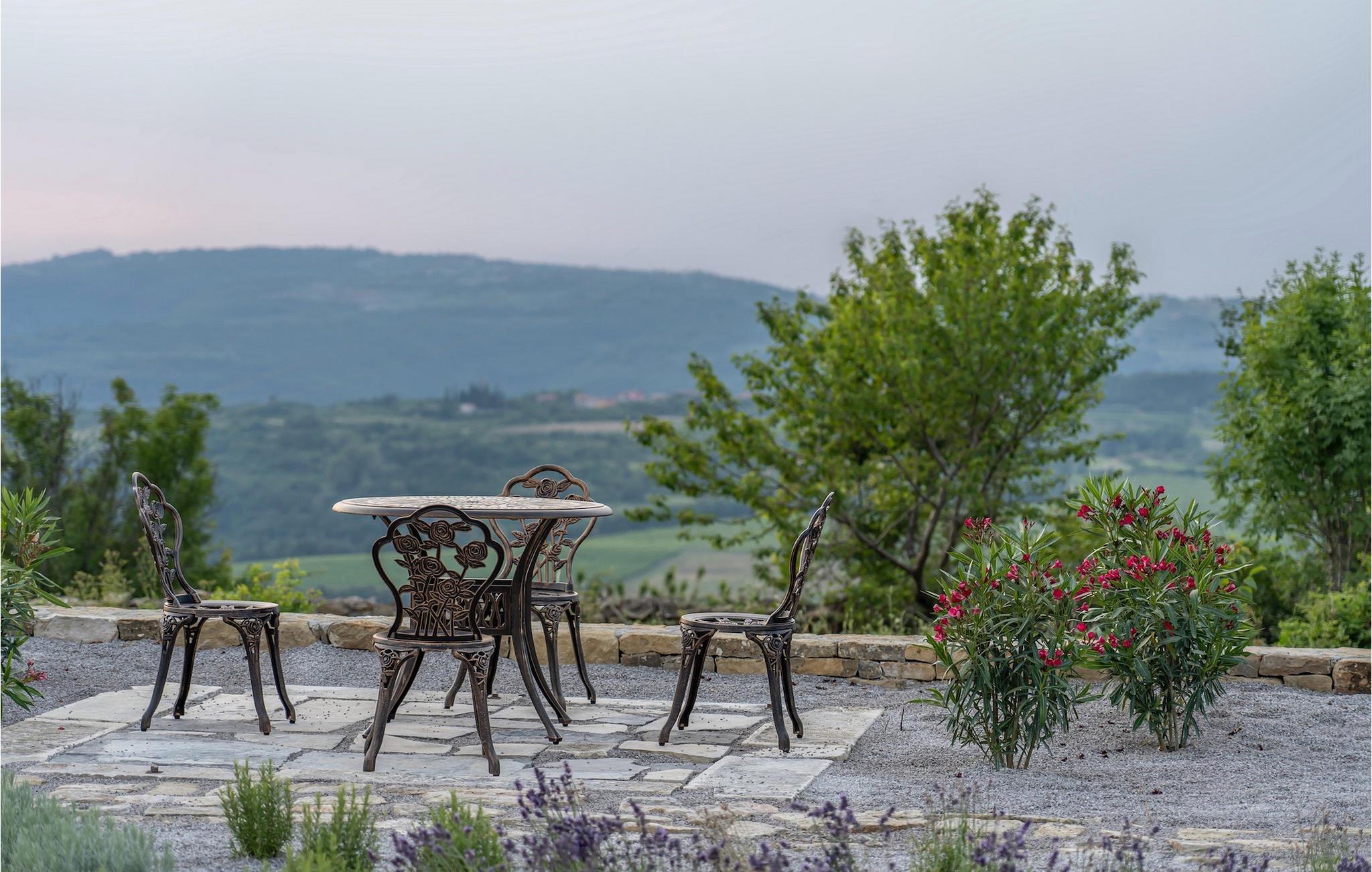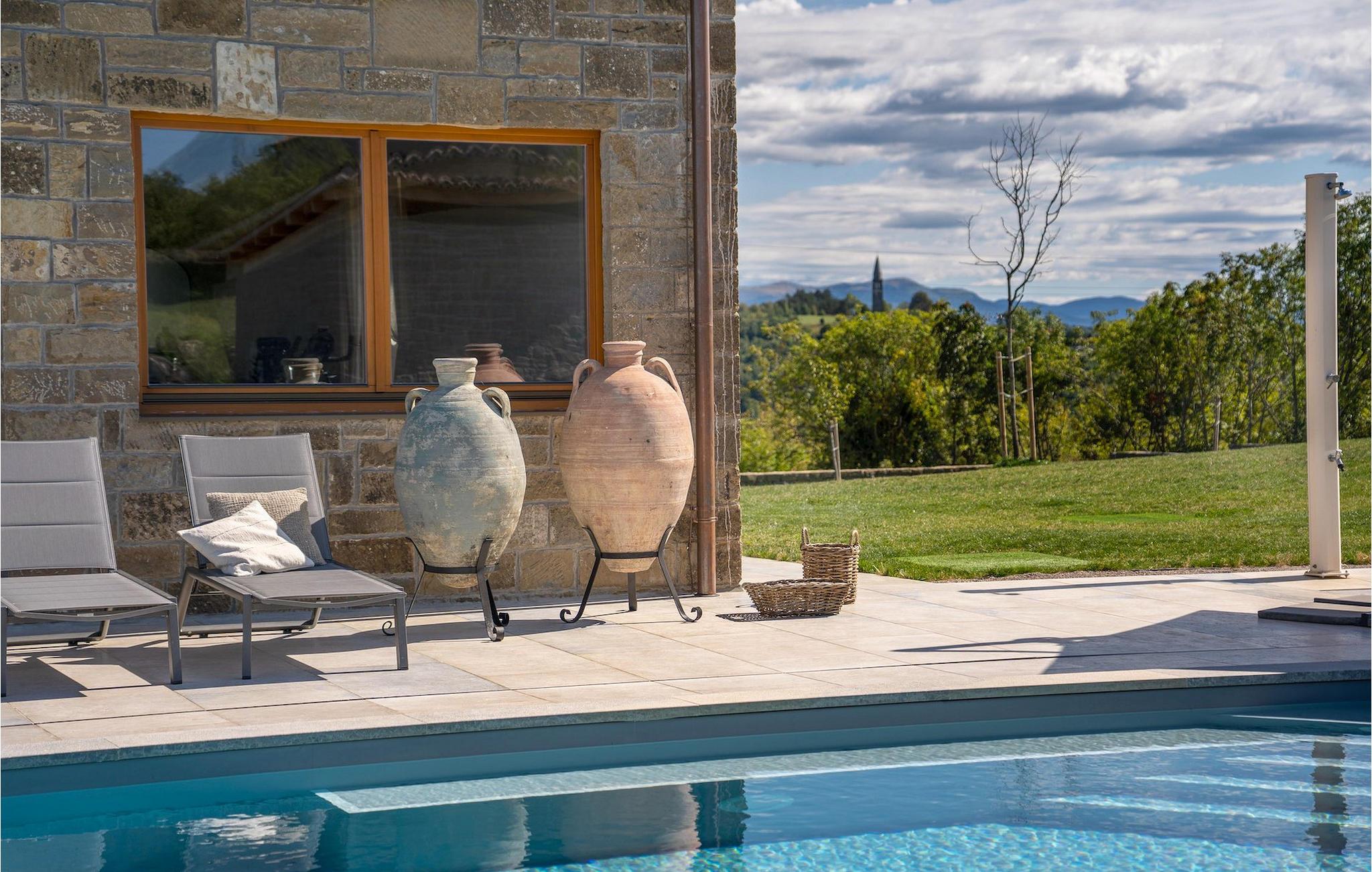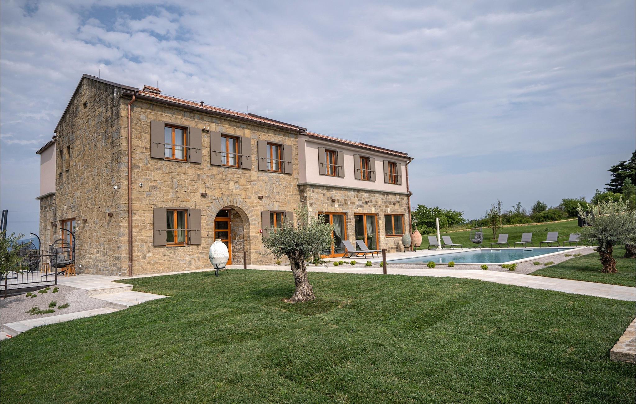Den storslåede Villa Paradiso dIstria kan virkelig blive dit personlige paradis på jorden. Den imponerende bygning står på en bakke i det nordlige Istrien, omgivet af det fantastiske landskab. Med den smukke panoramaudsigt vil du helt sikkert komme til ro. Hjertet i villaen er dog den forfriskende 61m2 udendørs pool, hvor du sandsynligvis vil nyde det meste af din velfortjente ferie. Komfortable liggestole inviterer dig til at slappe af, mens du bliver forkælet af den istriske sol. Grillpladsen er ideel til at vise dine grillfærdigheder frem og nyde lækre måltider med lokale specialiteter sammen med familie og venner.