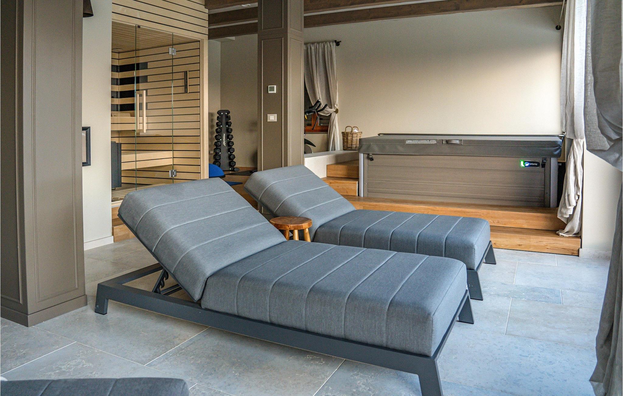 På samme niveau kan du være aktiv i fitnessområdet eller nyde saunaen med udsigt. Her er endnu et separat badeværelse med bruser. For børnene - store og små - byder en spillekonsol på ekstra sjov.