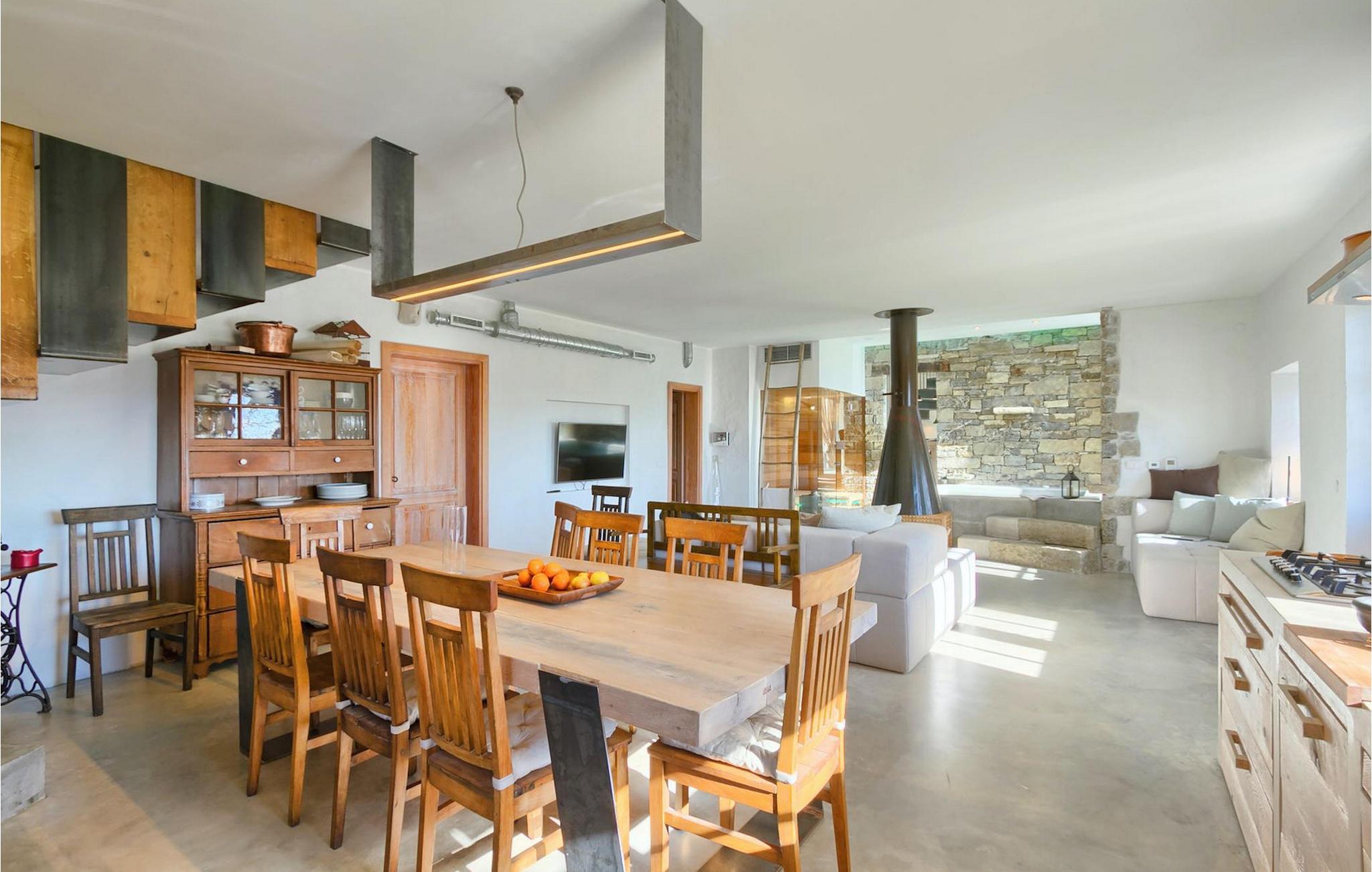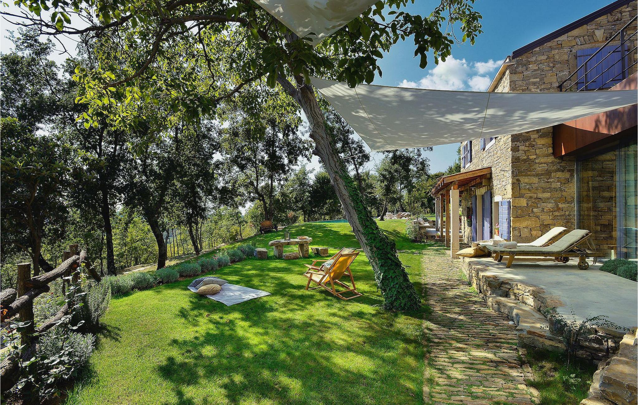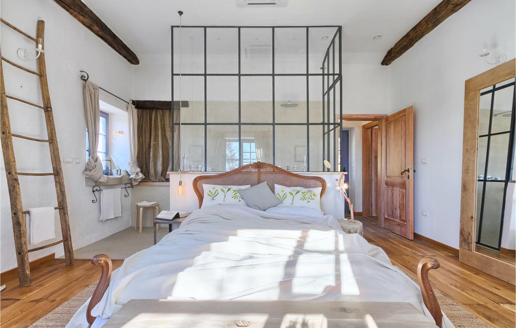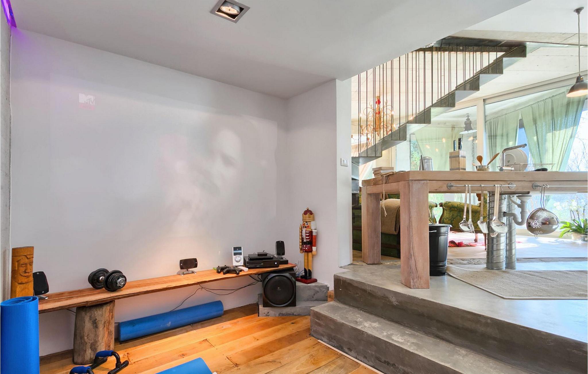 Beliggende for enden af en privat vej, er dette utrolige feriehus lige uden for den maleriske middelalderby Grožnjan virkelig et unikt fund. Når man kører ned til ejendommen, kan du ikke lade være med at føle en følelse af forventning: at blive til et fantastisk åbent rum omgivet af træer og endelig dit sommerhus. Det er svært ikke at blive overvældet af omgivelserne og den spektakulære, vidtrækkende udsigt over vinmarkerne, olivenlundene og skoven i det pragtfulde istriske landskab. Svømmebassinet, der er skulptureret ind i grunden og placeret ved siden af bakken, er designet på en måde, hvorved kanten simpelthen forsvinder, i en herlig kulisse, der giver det magiske panorama. Villaens enestående design er lige så fantastisk med dets omhyggeligt planlagte ydre, der kan prale af traditionelle elementer fra det autentiske istriske stenhus med klare, sofistikerede linjer i det moderne tårn. Det skaber den perfekte blanding af moderne elementer, der fremhæver, ikke tager væk, fra den mere traditionelle og originale del af huset. Et moderne bud på den autentiske istriske facade omslutter et cool, moderne interiør inspireret af det industrielle design. De indendørs områder er intime, men åbne, og det uafbrudte klare spænd skaber en bro, hvorunder de konventioner, der definerer indendørs rum, forsvinder. Indrettet til en meget høj standard med et professionelt køkken, gode opholdsområder, 3 store airconditionerede soveværelser med moderne ensuite badeværelser, synes denne fantastiske villa at samle fortid og nutid på en trendy måde. Udsatte metalrør, kanaler, forvitrede grå vægge, moderne kunst og smarte pendellamper komplementerer vintagemøblerne, stilfulde detaljer, træpaneler og stenvægge, som giver interiøret en varm, indbydende aura, der fremhæver boligens industrielle charme.