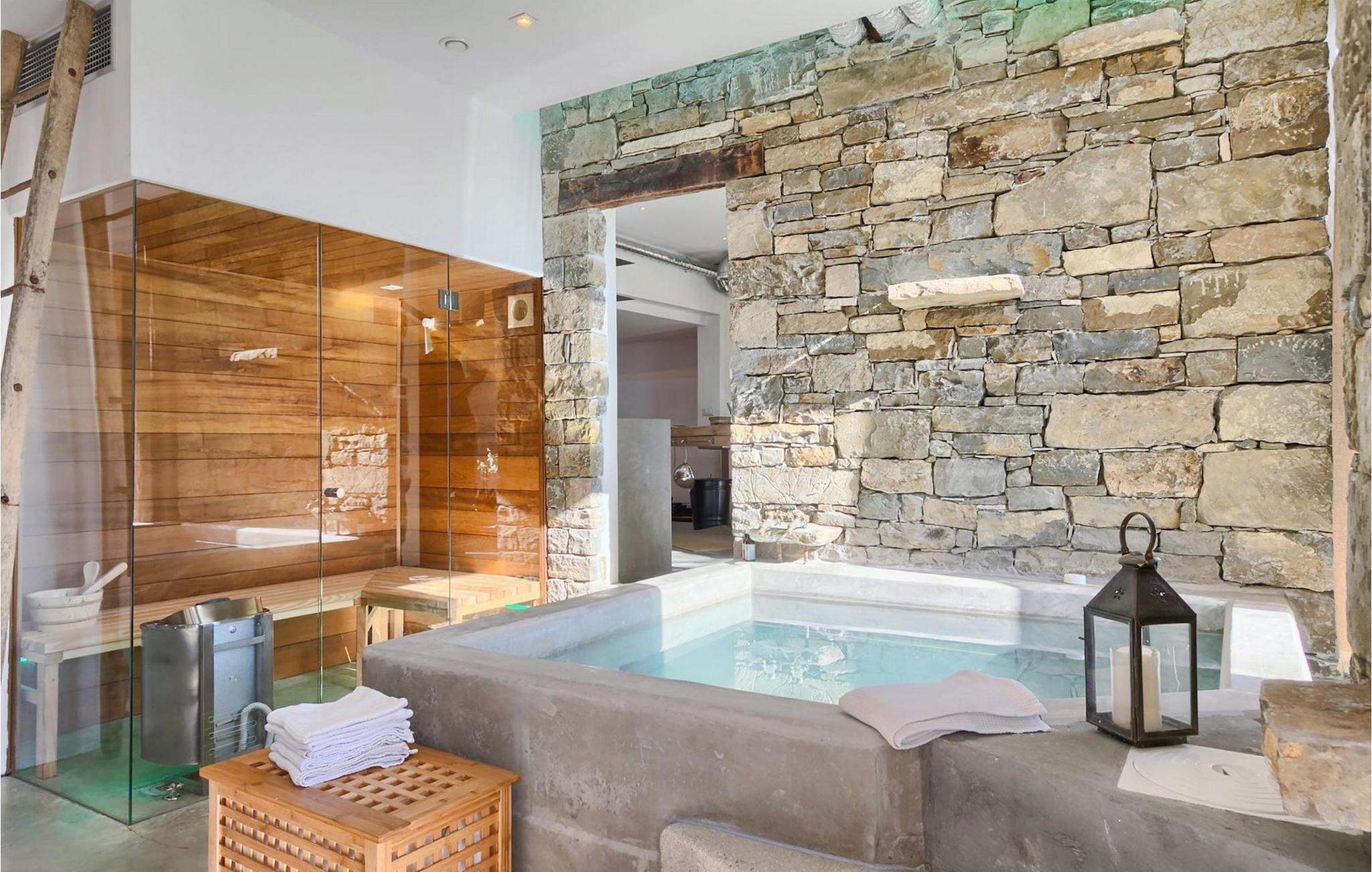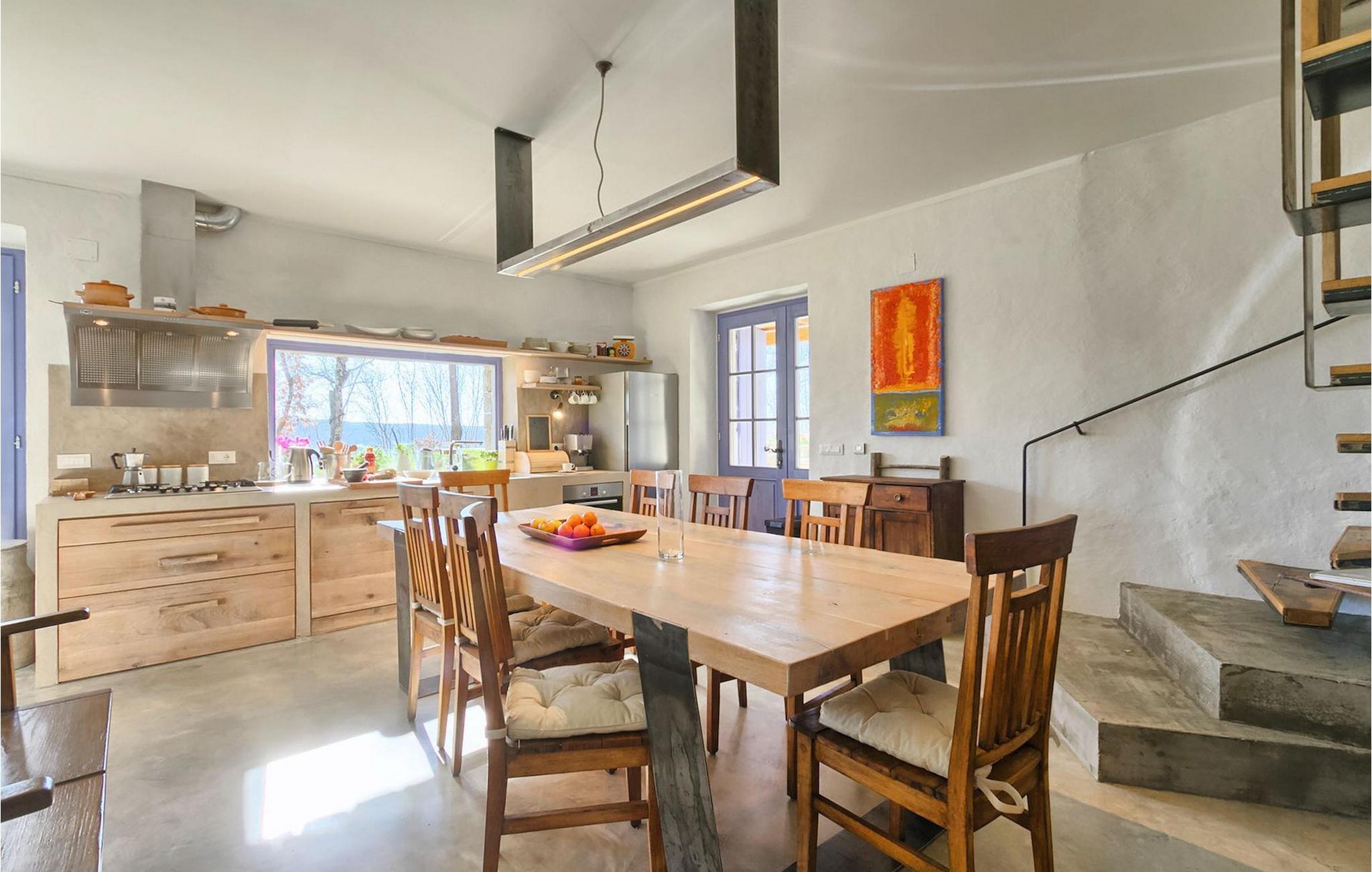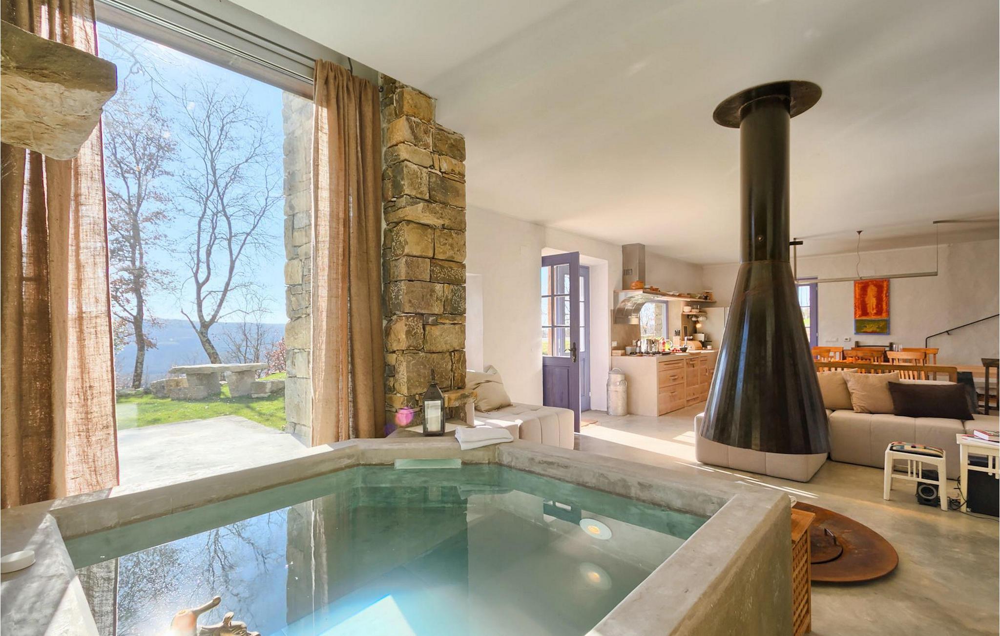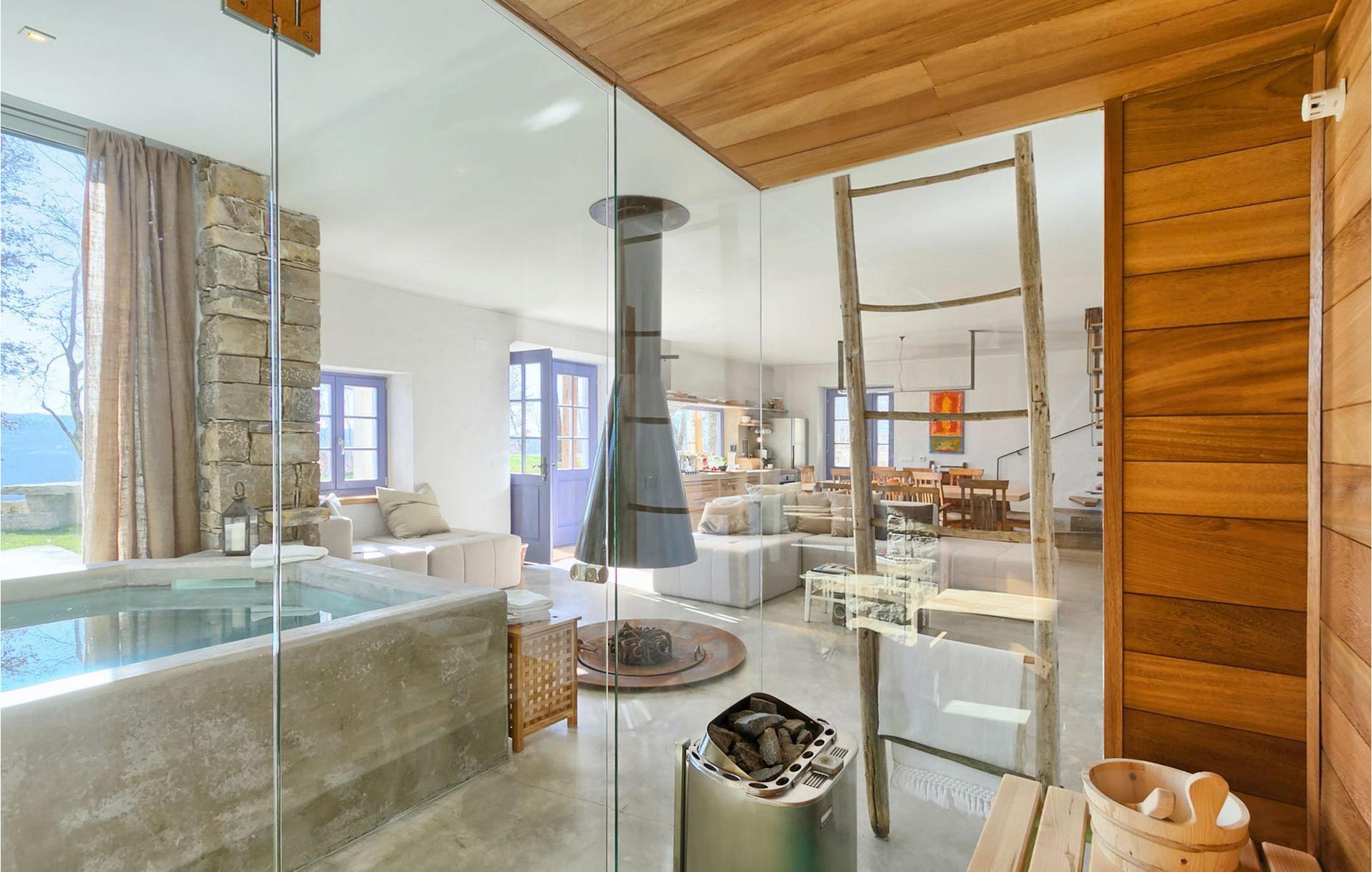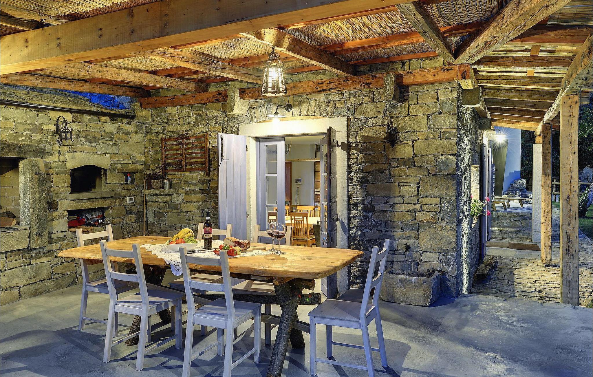 Beliggende for enden af en privat vej, er dette utrolige feriehus lige uden for den maleriske middelalderby Grožnjan virkelig et unikt fund. Når man kører ned til ejendommen, kan du ikke lade være med at føle en følelse af forventning: at blive til et fantastisk åbent rum omgivet af træer og endelig dit sommerhus. Det er svært ikke at blive overvældet af omgivelserne og den spektakulære, vidtrækkende udsigt over vinmarkerne, olivenlundene og skoven i det pragtfulde istriske landskab. Svømmebassinet, der er skulptureret ind i grunden og placeret ved siden af bakken, er designet på en måde, hvorved kanten simpelthen forsvinder, i en herlig kulisse, der giver det magiske panorama. Villaens enestående design er lige så fantastisk med dets omhyggeligt planlagte ydre, der kan prale af traditionelle elementer fra det autentiske istriske stenhus med klare, sofistikerede linjer i det moderne tårn. Det skaber den perfekte blanding af moderne elementer, der fremhæver, ikke tager væk, fra den mere traditionelle og originale del af huset. Et moderne bud på den autentiske istriske facade omslutter et cool, moderne interiør inspireret af det industrielle design. De indendørs områder er intime, men åbne, og det uafbrudte klare spænd skaber en bro, hvorunder de konventioner, der definerer indendørs rum, forsvinder. Indrettet til en meget høj standard med et professionelt køkken, gode opholdsområder, 3 store airconditionerede soveværelser med moderne ensuite badeværelser, synes denne fantastiske villa at samle fortid og nutid på en trendy måde. Udsatte metalrør, kanaler, forvitrede grå vægge, moderne kunst og smarte pendellamper komplementerer vintagemøblerne, stilfulde detaljer, træpaneler og stenvægge, som giver interiøret en varm, indbydende aura, der fremhæver boligens industrielle charme.