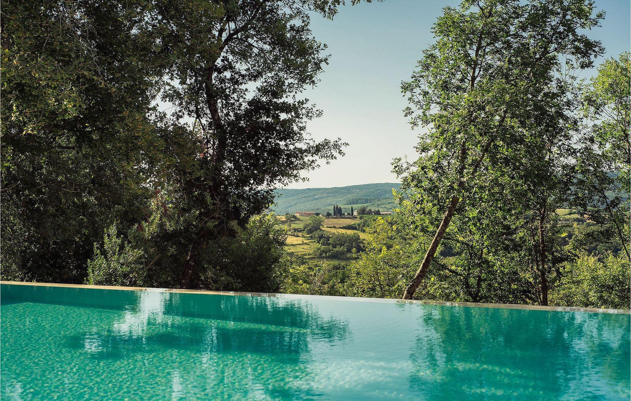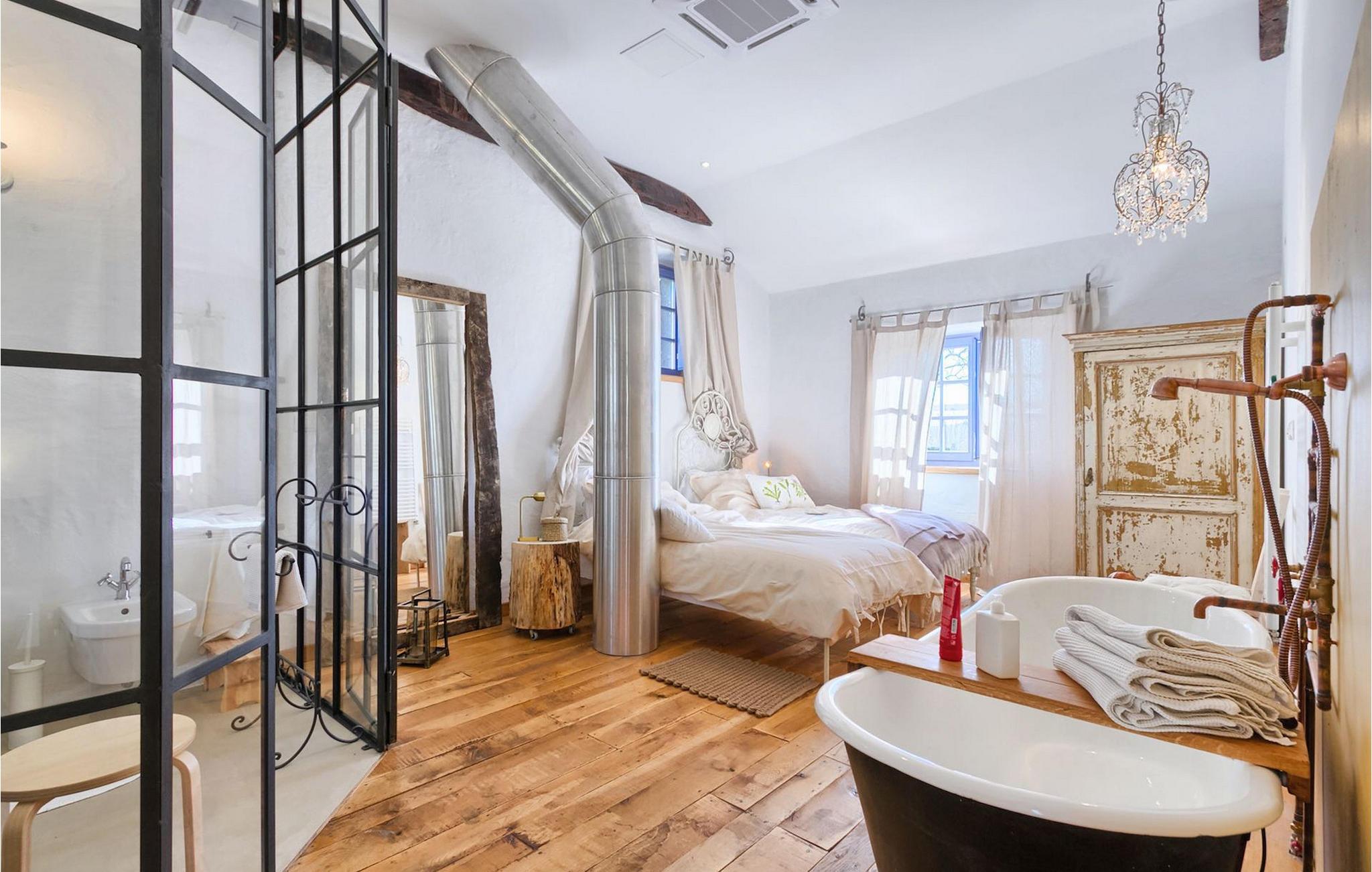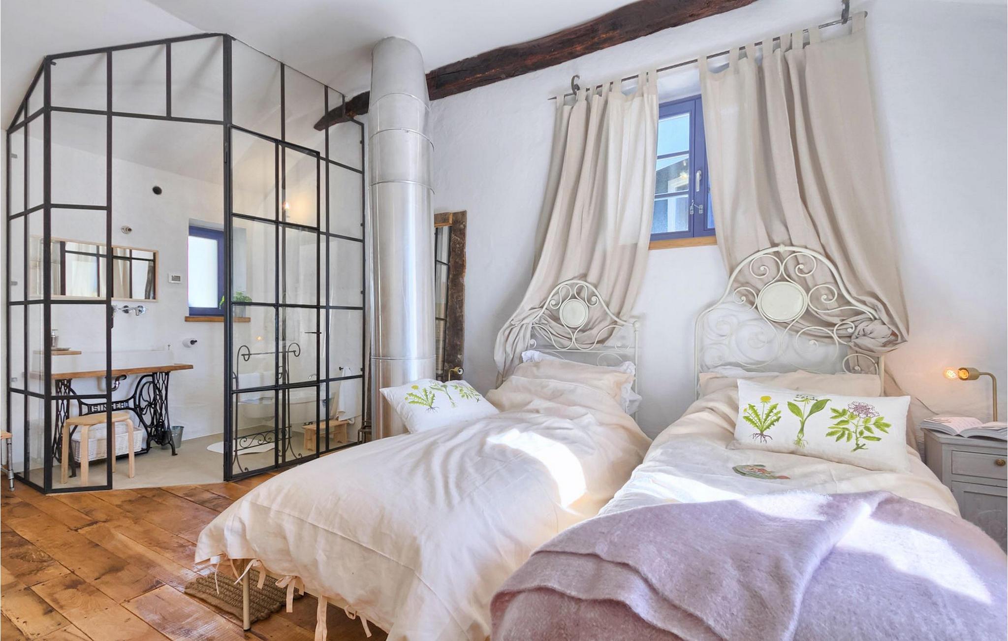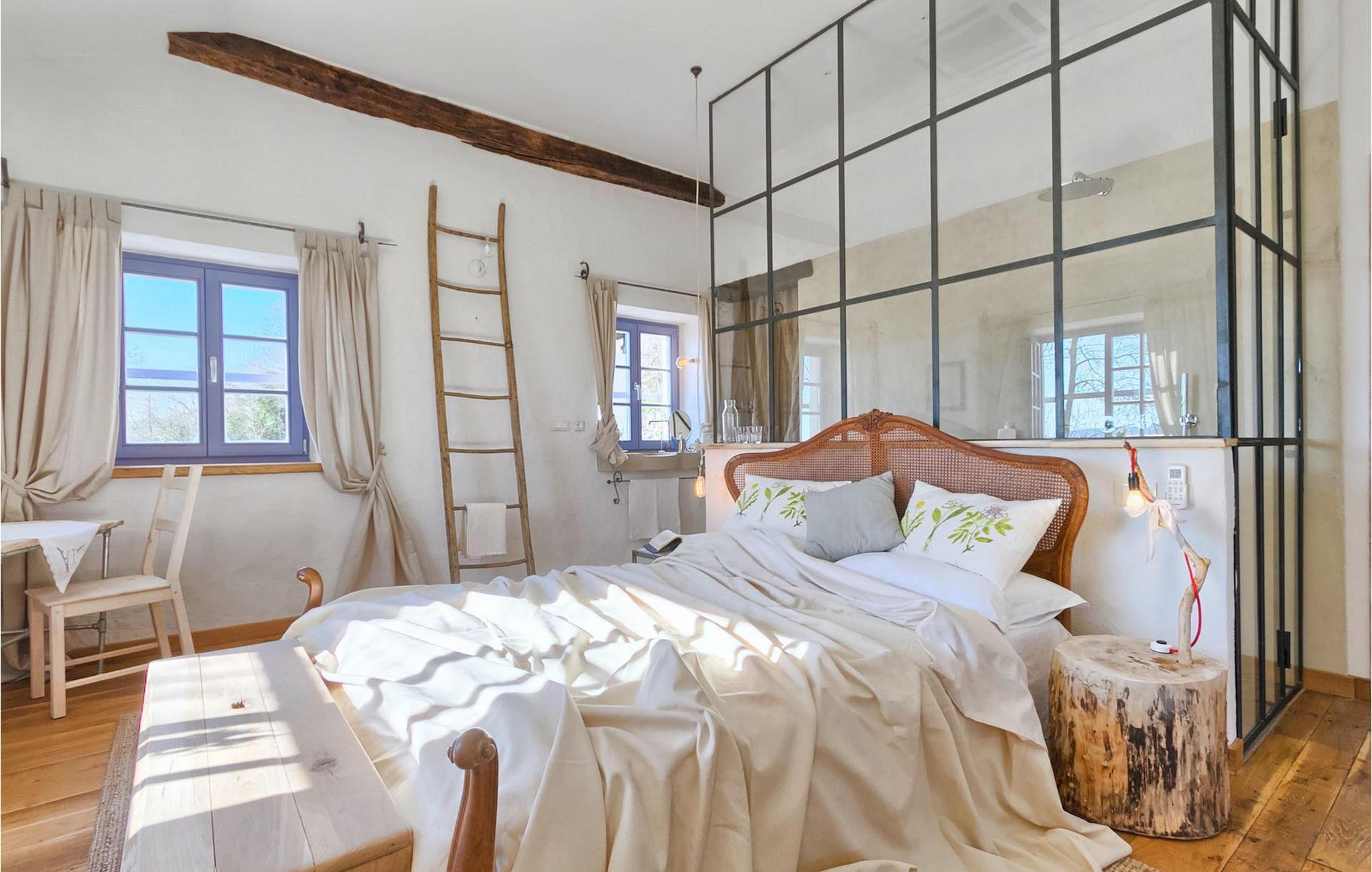 Beliggende for enden af en privat vej, er dette utrolige feriehus lige uden for den maleriske middelalderby Grožnjan virkelig et unikt fund. Når man kører ned til ejendommen, kan du ikke lade være med at føle en følelse af forventning: at blive til et fantastisk åbent rum omgivet af træer og endelig dit sommerhus. Det er svært ikke at blive overvældet af omgivelserne og den spektakulære, vidtrækkende udsigt over vinmarkerne, olivenlundene og skoven i det pragtfulde istriske landskab. Svømmebassinet, der er skulptureret ind i grunden og placeret ved siden af bakken, er designet på en måde, hvorved kanten simpelthen forsvinder, i en herlig kulisse, der giver det magiske panorama. Villaens enestående design er lige så fantastisk med dets omhyggeligt planlagte ydre, der kan prale af traditionelle elementer fra det autentiske istriske stenhus med klare, sofistikerede linjer i det moderne tårn. Det skaber den perfekte blanding af moderne elementer, der fremhæver, ikke tager væk, fra den mere traditionelle og originale del af huset. Et moderne bud på den autentiske istriske facade omslutter et cool, moderne interiør inspireret af det industrielle design. De indendørs områder er intime, men åbne, og det uafbrudte klare spænd skaber en bro, hvorunder de konventioner, der definerer indendørs rum, forsvinder. Indrettet til en meget høj standard med et professionelt køkken, gode opholdsområder, 3 store airconditionerede soveværelser med moderne ensuite badeværelser, synes denne fantastiske villa at samle fortid og nutid på en trendy måde. Udsatte metalrør, kanaler, forvitrede grå vægge, moderne kunst og smarte pendellamper komplementerer vintagemøblerne, stilfulde detaljer, træpaneler og stenvægge, som giver interiøret en varm, indbydende aura, der fremhæver boligens industrielle charme.