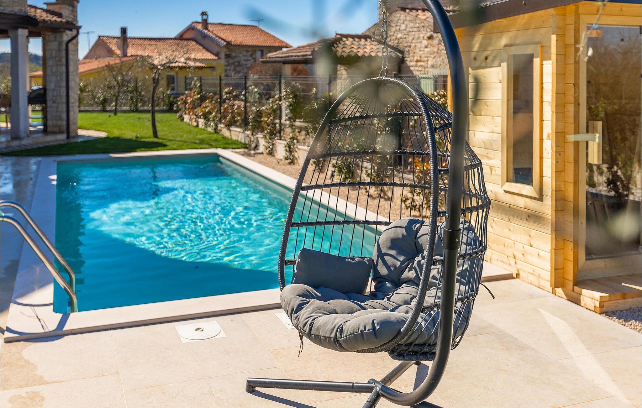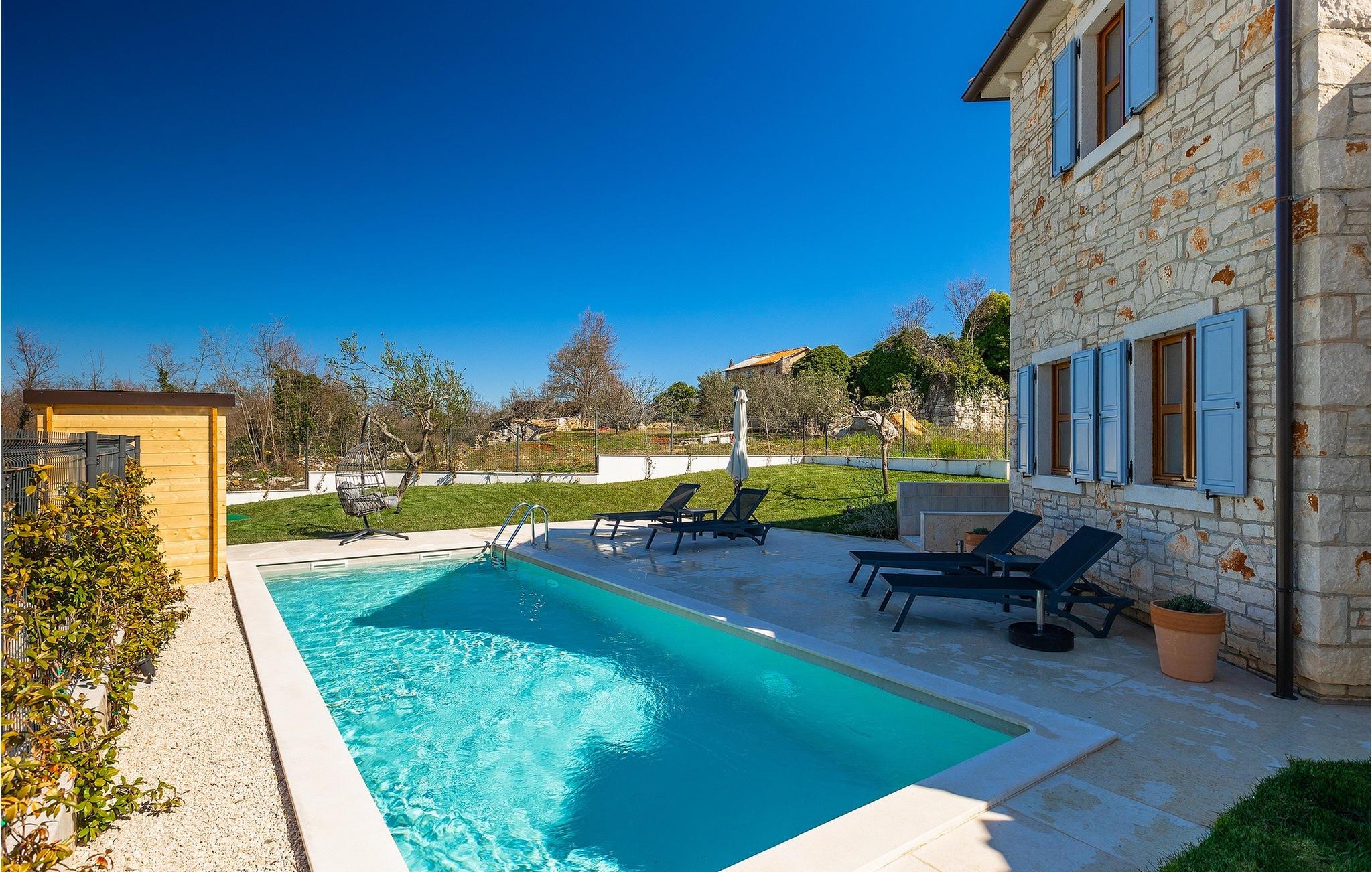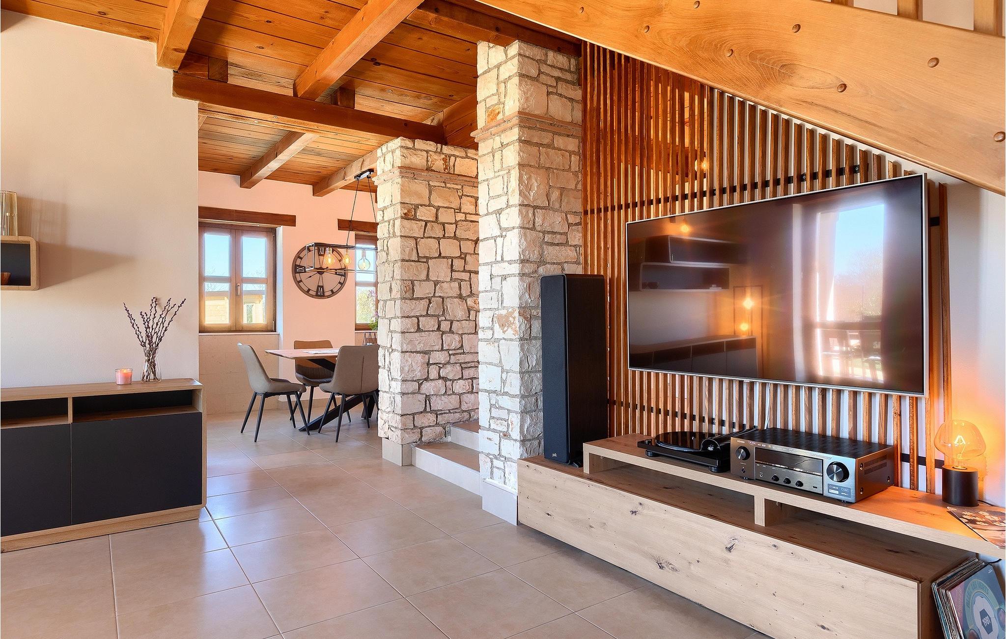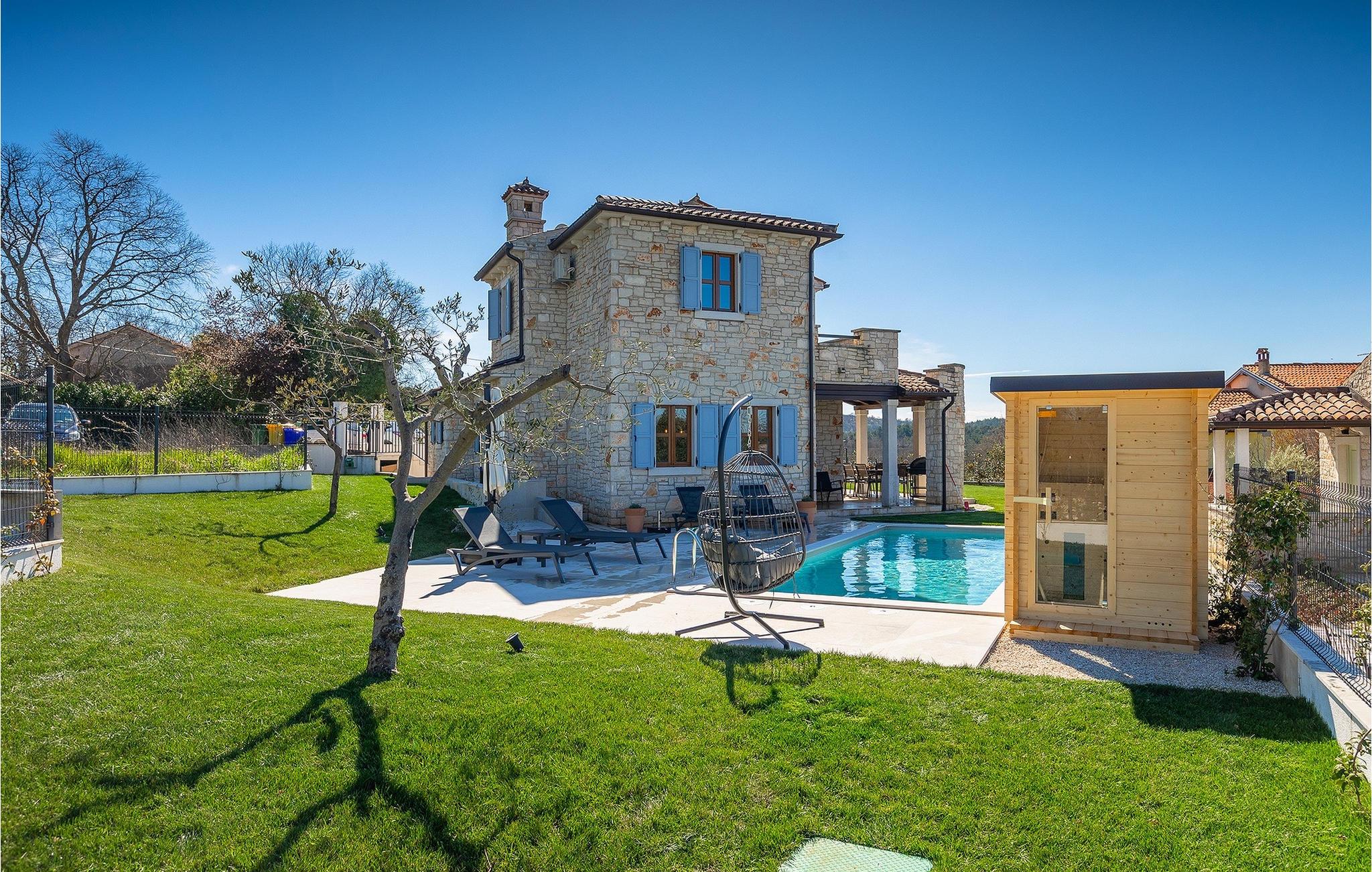 Drømmer du om at tilbringe din ferie i en traditionel og rustik villa, omgivet af stilhed og sindsro? Så er Villa Elysium Bellezza det perfekte valg for dig. Villaen er beliggende i den lille landsby Martincici, i det centrale Istrien. Den restaurerede stenvilla består af to etager og er ideel til familier med børn eller par. Stueetagen af villaen består af en hyggelig stue med et tv og en vintage grammofon med plader, en spiseplads, et fuldt udstyret køkken og et badeværelse. Ovenpå er der to hyggelige og komfortable soveværelser med dobbeltsenge og et badeværelse med jacuzzi til romantiske stunder for to. Fra soveværelserne har du direkte udgang til terrassen, hvorfra du kan nyde udsigten over naturen. Udendørsområdet er villaens højdepunkt, hvor du kan slappe af ved poolen, slappe af i saunaen eller tilberede lækre måltider på grillen med din familie. Terrassen er overdækket og har en spiseplads, hvor du kan afslutte de lune aftener med et glas Malvasia fra Istrien. Villaen er helt indhegnet og har en parkeringsplads til 3 biler. Villaen tilbyder sine gæster en ladestation til e-biler.Villa Elysium Bellezza ligger i den lille landsby Martincici, ikke langt fra de istriske byer Bale og Motovun. Motovun er et af de mest berømte og kendte steder i det centrale Istrien. Byen ligger på en bakke, omgivet af mure, og ved foden af byen ligger dalen af floden Mirna. Hvis du kører gennem det centrale Istrien, vil du se talrige middelalderbyer som Grožnjan, Buzet eller Oprtalj. En gåtur gennem de smalle gader vil tage dig tilbage til fortiden i denne region, og desuden byder de på enestående panoramaudsigt. Det centrale Istrien er også kendt for sit vin- og gastronomiske tilbud, så vi anbefaler, at du prøver adskillige istriske delikatesser såsom istrisk pasta og trøfler, og runder det hele af med det bedste istriske Malvasia. Istriens kyst er kendt for sine kulturelle centre som Pula og amfiteatret, den gamle bydel i Rovinj og Porec med Euphrasius-basilikaen. Istrien har gode vejforbindelser, så du kan komme hurtigt fra den ene ende til den anden og opleve så mange forskellige aktiviteter som muligt.
