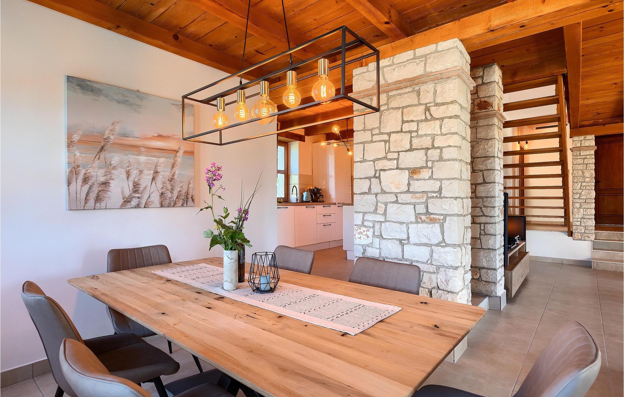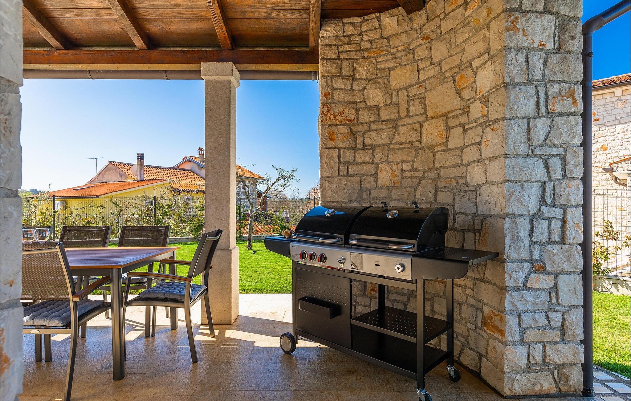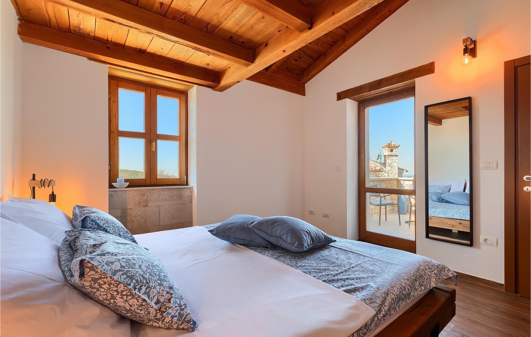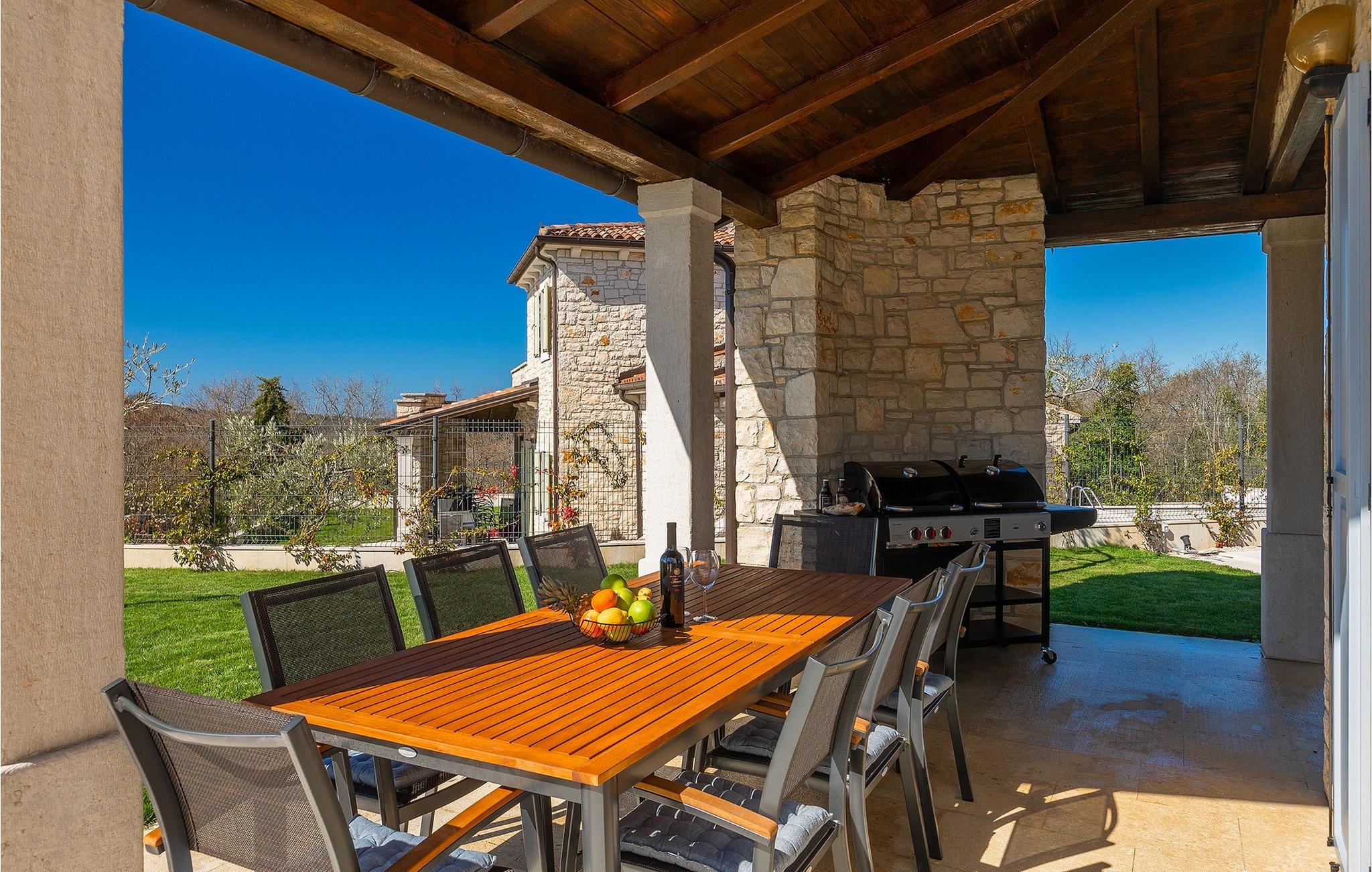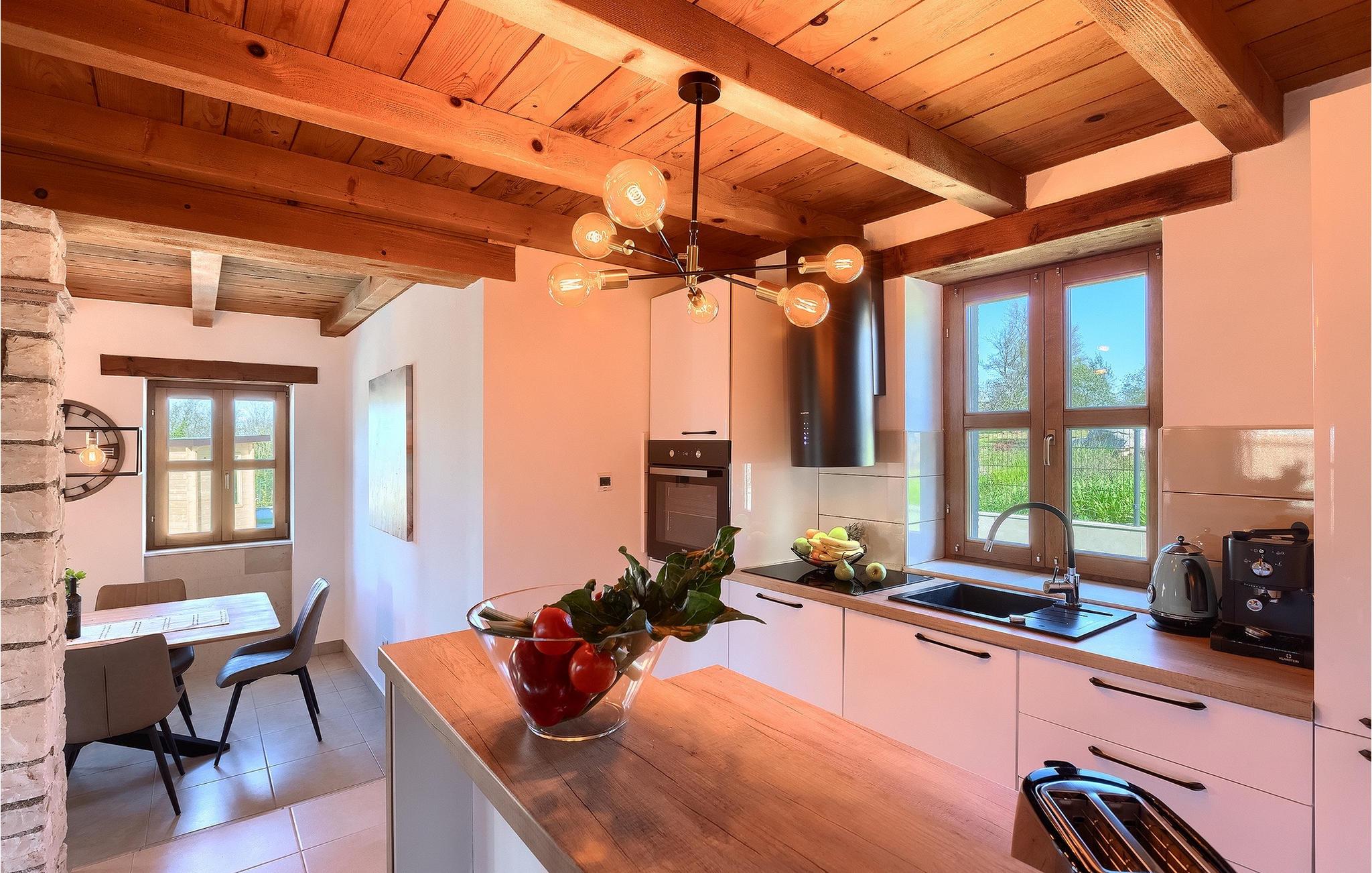Drømmer du om at tilbringe din ferie i en traditionel og rustik villa, omgivet af stilhed og sindsro? Så er Villa Elysium Bellezza det perfekte valg for dig. Villaen er beliggende i den lille landsby Martincici, i det centrale Istrien. Den restaurerede stenvilla består af to etager og er ideel til familier med børn eller par. Stueetagen af villaen består af en hyggelig stue med et tv og en vintage grammofon med plader, en spiseplads, et fuldt udstyret køkken og et badeværelse. Ovenpå er der to hyggelige og komfortable soveværelser med dobbeltsenge og et badeværelse med jacuzzi til romantiske stunder for to. Fra soveværelserne har du direkte udgang til terrassen, hvorfra du kan nyde udsigten over naturen. Udendørsområdet er villaens højdepunkt, hvor du kan slappe af ved poolen, slappe af i saunaen eller tilberede lækre måltider på grillen med din familie. Terrassen er overdækket og har en spiseplads, hvor du kan afslutte de lune aftener med et glas Malvasia fra Istrien. Villaen er helt indhegnet og har en parkeringsplads til 3 biler. Villaen tilbyder sine gæster en ladestation til e-biler.Villa Elysium Bellezza ligger i den lille landsby Martincici, ikke langt fra de istriske byer Bale og Motovun. Motovun er et af de mest berømte og kendte steder i det centrale Istrien. Byen ligger på en bakke, omgivet af mure, og ved foden af byen ligger dalen af floden Mirna. Hvis du kører gennem det centrale Istrien, vil du se talrige middelalderbyer som Grožnjan, Buzet eller Oprtalj. En gåtur gennem de smalle gader vil tage dig tilbage til fortiden i denne region, og desuden byder de på enestående panoramaudsigt. Det centrale Istrien er også kendt for sit vin- og gastronomiske tilbud, så vi anbefaler, at du prøver adskillige istriske delikatesser såsom istrisk pasta og trøfler, og runder det hele af med det bedste istriske Malvasia. Istriens kyst er kendt for sine kulturelle centre som Pula og amfiteatret, den gamle bydel i Rovinj og Porec med Euphrasius-basilikaen. Istrien har gode vejforbindelser, så du kan komme hurtigt fra den ene ende til den anden og opleve så mange forskellige aktiviteter som muligt.