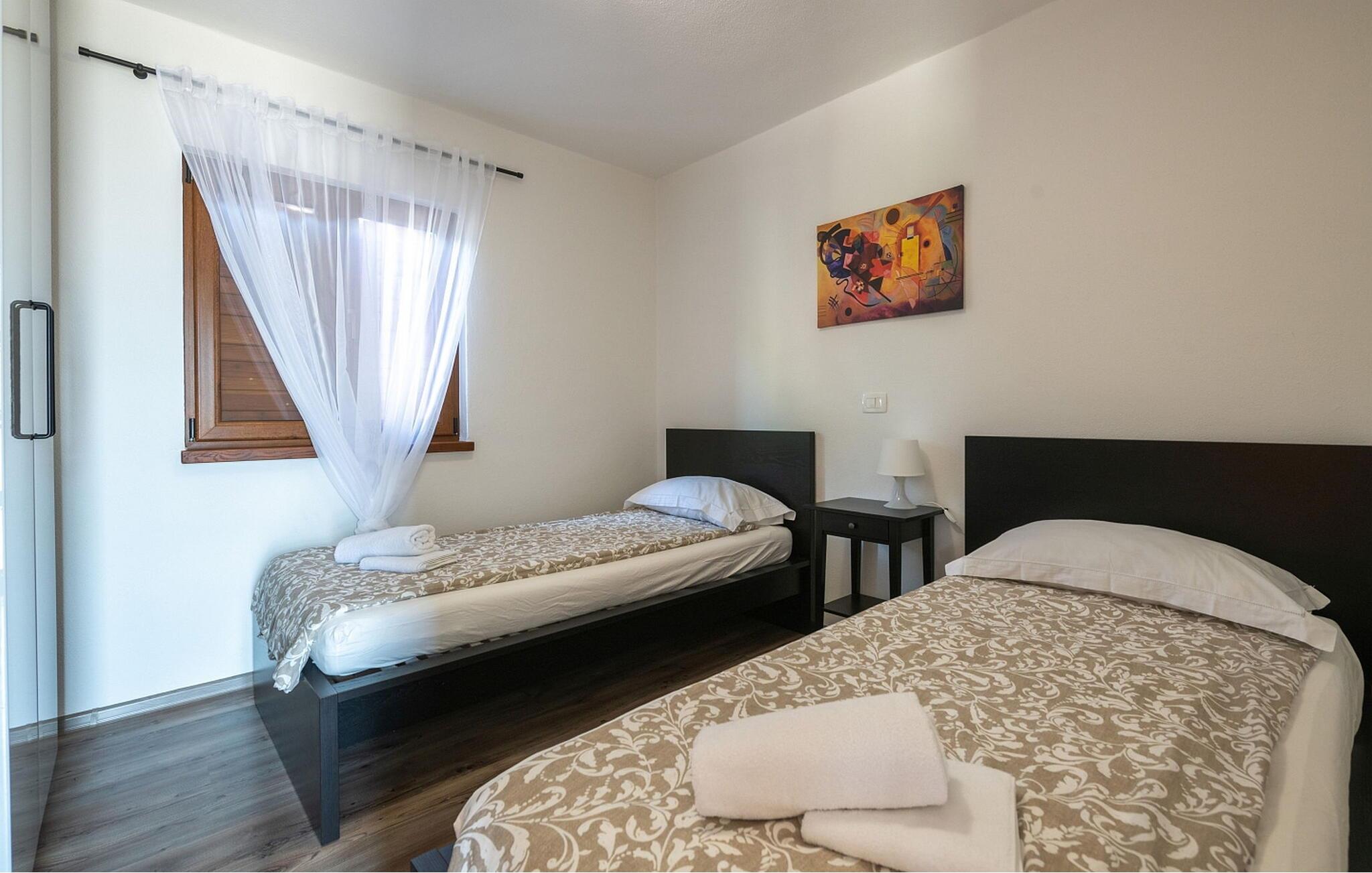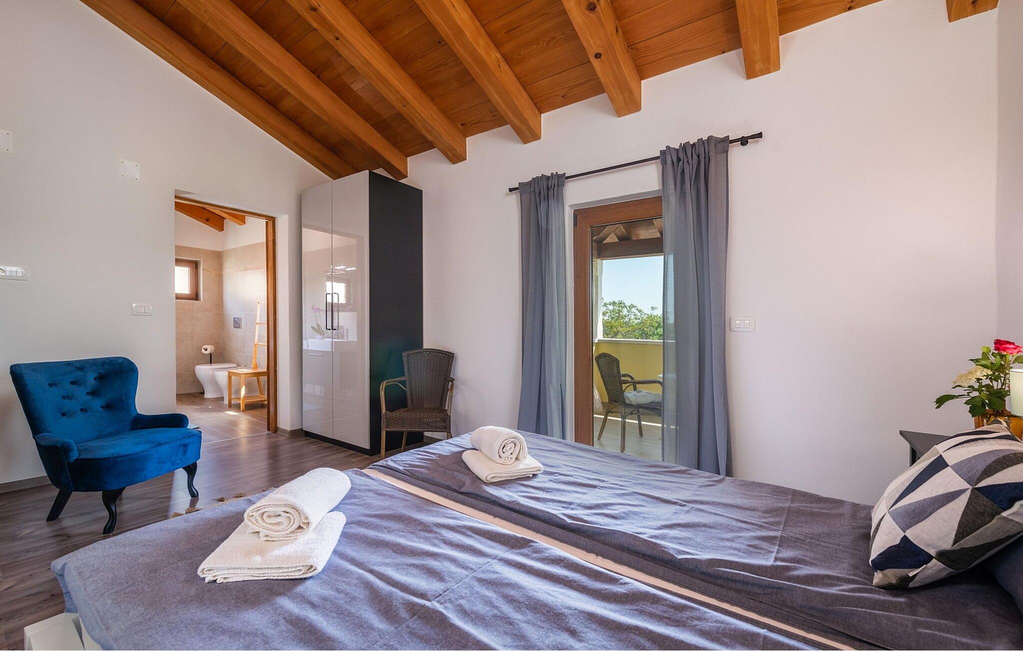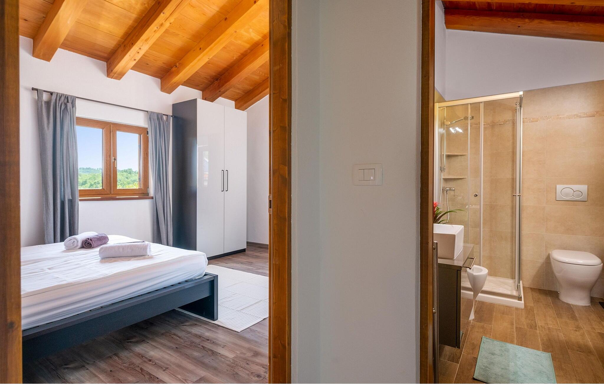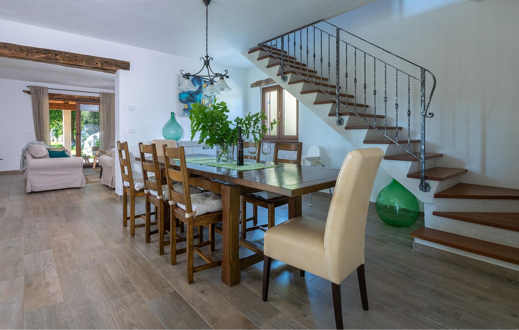 Casa IDa ligger i landsbyen Vigini, og det er et af de to huse i hele landsbyen. Vigini er en landsby i det grønne, uberørte centrale Istrien nær Groznjan, den maleriske kunstnerby. Groznjan fortryller ikke kun med kunstværkerne, men også med de betagende udsigter, der strækker sig fra alle sider af bakken, jazztonerne, der flyder gennem de smalle gader, den blide brise, der bringer en ægte forfriskning i de varme sommermåneder og udvalget af autoktone produkter. Casa IDa er bygget i 2017 og byder på egen ejendom en swimmingpool på 32 kvm, overdækket sommerkøkken med spisebord, terrasse med siddesæt og separat toilet ved siden af swimmingpoolen. De diskrete boligejere bor i nabohuset med en særejendom. Sommerhus til 8 gæster på 200 kvm. Stueetagen indeholder stue med pejs og udgang til terrasse, fuldt udstyret køkken, spisestue, soveværelse med to enkeltsenge, bad/toilet. På første sal er der et soveværelse med dobbeltseng, bad/toilet i hallen, soveværelse med dobbeltseng med adgang til baladur (typisk gammel indgang i Istrien) og privat bad/toilet, endnu et soveværelse med to enkeltsenge. Bemærk venligst, at denne ejendom ikke accepterer ungdomsgrupper eller polterabends. En ungdomsgruppe på denne ejendom er en gruppe bestående af personer på 26 år eller derunder. Book ikke denne ejendom, hvis du er en ungdomsgruppe eller et polterabend, da din reservation vil blive afvist efter booking, hvilket kan omfatte ved ankomst til ejendommen eller under dit ophold, og du vil ikke blive refunderet.