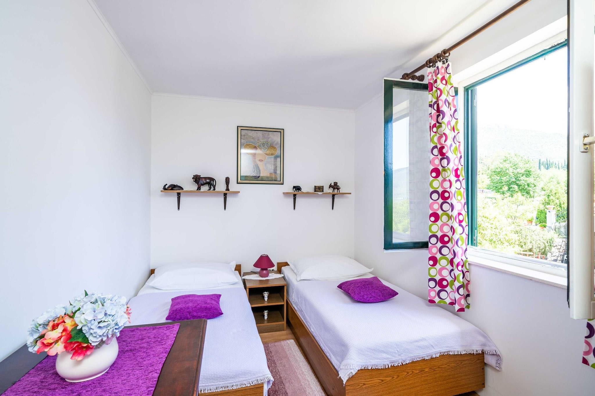 Apartment Laurel Leaf har en lejlighed med 3 soveværelser og terrasse beliggende i Gruda, Dubrovnik-regionen. Gruda er det perfekte sted for dem, der ønsker at nyde solen og havet, mens de bor i et roligt område væk fra byens folkemængder. Smuk møbleret terrasse med udsigt over haven, og den er udstyret med udendørs grillfaciliteter.Privat parkering, WiFi og et tv er til rådighed.Denne dejlige 3 værelses lejlighed har WiFi og tv. Behagelig plads til 6 personer. Gæsterne vil få terrasse, opholdsstue og eget badeværelse. Smuk møbleret terrasse med udsigt over haven, og den er udstyret med udendørs grillfaciliteter. Køkkenet er udstyret med spiseplads, køleskab, ovn, elkedel, brødrister og køkkenredskaber. Badeværelset er udstyret med bruser og hårtørrer. Strygefaciliteter er til gæsternes rådighed. Barneseng er tilgængelig efter anmodning. Gruda er et perfekt sted for dem, der ønsker at nyde solen og havet og ønsker at bevare deres fred og privatliv. Cavtat Old Town, et dejligt malerisk sted med sin smukke promenade og strande er 13 kilometer væk, mens Old Town, historiske og kulturelle centrum af Dubrovnik er 24 kilometer væk. Nærmeste marked er 300 m væk, og busstation 1 km. Cavtat Station med hyppige Buslinjer ligger 13 km fra overnatningsstedet, og Dubrovnik Lufthavn ligger 8 km derfra.