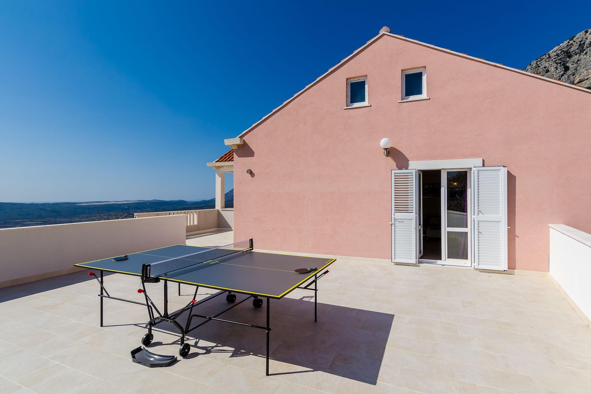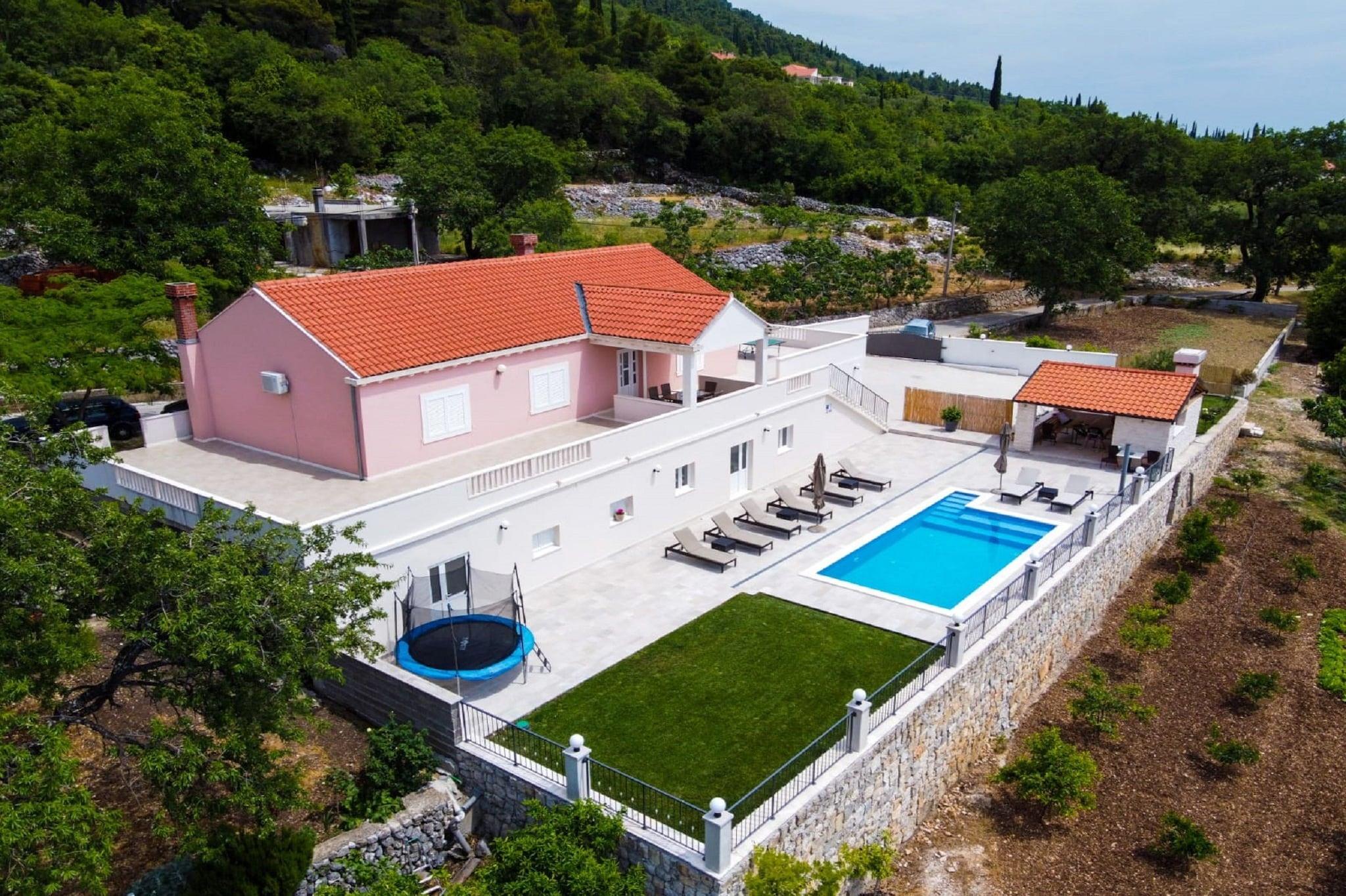 Ny moderne villa med sin vidunderlige private swimmingpool har en rolig landlig beliggenhed i landsbyen Pridvorje i smukke Konavle-regionen. Et perfekt sted at nyde en afslappet ferie med masser af privatliv. Kun 28 km fra Dubrovnik, en berømt kystby middelalderby ved Adriaterhavskysten og 11 km væk fra byen Cavtat. Denne smukke og rummelige villa i ejendom (500m) spredes over to etager. Det er en perfekt indkvartering til op til 8 personer med 3 smagfuldt indrettede værelser, 2 badeværelser med jacuzzi, moderne stue / spisestue med åbent køkken og en fantastisk udsigt over Konavle og et hav. Rummelige terrasser er veludstyrede med havemøbler, trampolin, tenisbord og tilbyder også en flot panoramaudsigt over de grønne marker af vinmarker og oliven, der omgiver denne private ejendom. Gæsterne kan smage organice frugt og grøntsager fra haven omkring Villa. Udendørsområdet byder på privat swimmingpool, dejlig indhegnet have med legeplads - trampolin, charmerende terrasse med pejs, stort stort træbord ved tagterrassen og gloriet end nok parkeringspladser.
