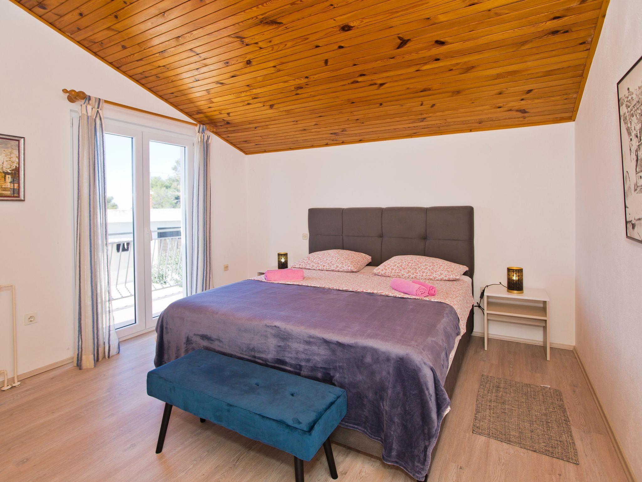Ferienwohnung bietet Platz für 5 Gäste. Die Betten sind in Schlafzimmern, die es 3 gibt, innerhalb einer Gesamtfläche von 98m2, angeordnet. Die Gäste haben eine eigene Terrasse zur Verfügung, auf der sie in warmen Sommernächten genießen können. Das Apartment bietet Meerblick. Es ist erlaubt, Speisen auf dem Gemeinschafts-Grill vorzubereiten. IM PREIS INBEGRIFFEN: Kurtaxe, Endreinigung, Klimatisierung, Parkplatz, Internet, Kinderbett, Bügeleisen, Bügelbrett, Föhn. Die Verfügbarkeit zusätzlicher Dienstleistungen in Ihrem reservierten Termin und die Preise derselben (falls nicht aufgeführt) müssen im Voraus überprüft werden. Zusätzliche Dienstleistungen die in der Zahlungsaufforderung nicht aufgeführt sind werden direkt beim Vermieter bezahlt, angenommen der Gast nutzt auch diese. Ermäßigung auf den Grundpreis: Gratistag 14=13 (bei einem Aufenthalt von 14 Tagen oder mehr erhalten Sie einen Gratistag für den Aufenthalt bis 31.12.26).