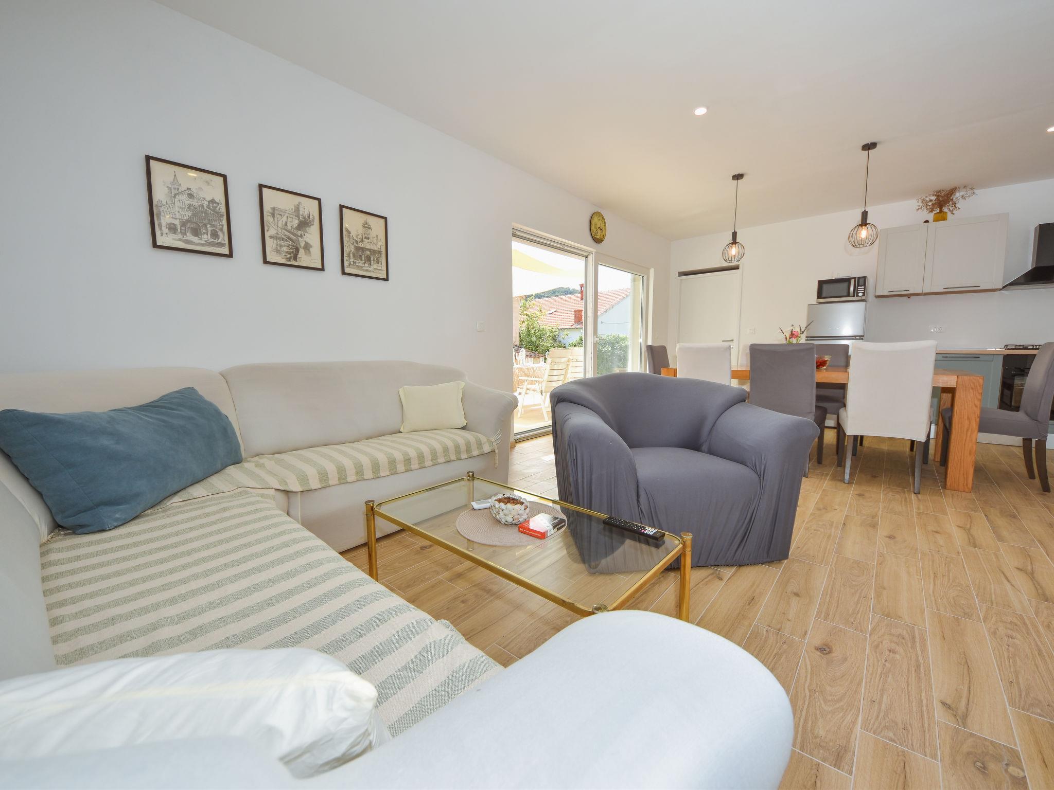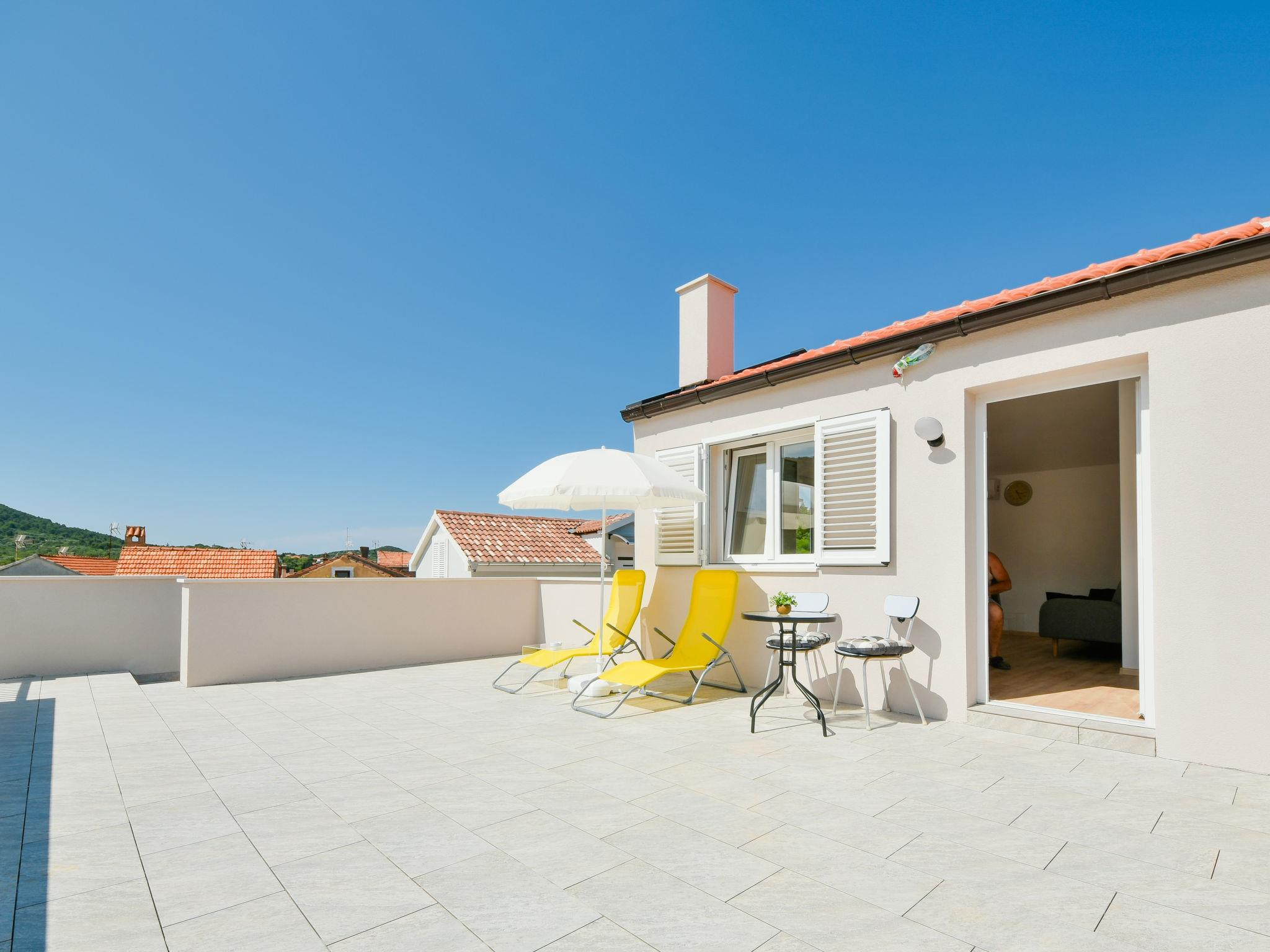 Beautiful single-family house "Pleasant dreams", 2 storeys, built in 2023. 250 m from the centre of Veli Iž, in a quiet, sunny, elevated position, 250 m from the sea, 400 m from the beach. Private: property 600 m2. Garden furniture. In the house: internet access. Parking at the house on the premises. Shop 250 m, restaurant 300 m, bus stop 27.6 km, pebble beach 400 m. Tennis 200 m.