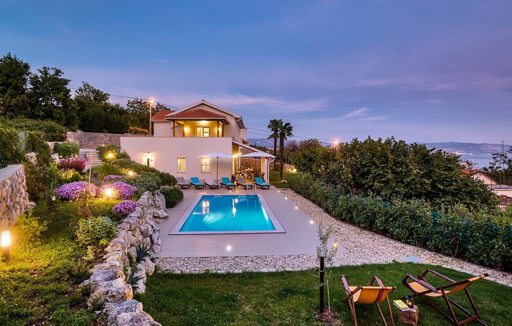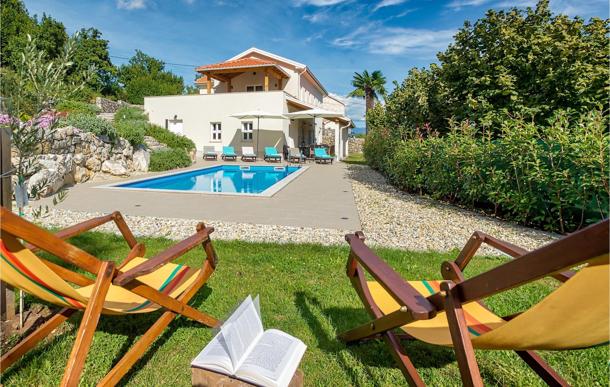 Denne smukke villa ligger nær Opatija, Kvarnerbugtens perle, og byder på en storslået udsigt over bugten. Familievillaen i to etager har 4 moderne indrettede soveværelser og kan rumme op til 8 personer i alt. Den store, åbne stueetage består af en stue med en komfortabel sofa og en pejs, en spiseplads og et moderne, fuldt udstyret køkken med en kogeø. Et soveværelse med dobbeltseng og eget badeværelse ligger også i stueetagen og har direkte adgang til den smukke have. Ovenpå er der 3 yderligere dobbeltværelser, alle med eget badeværelse. På første sal er der en terrasse, et særligt privat sted, hvorfra du kan nyde den storslåede havudsigt med et glas Malvasia. Haven er højdepunktet i villaen, designet med stor sans for detaljer. Foran villaen er der en stor privat pool og liggestole, der inviterer dig til at slappe af. Ved siden af poolen er der en grillplads, hvor du kan tilberede lækre måltider på kulgrillen og servere dem for din familie i den overdækkede udendørs spiseplads. Villaen byder på mange aktiviteter såsom bordtennis, bordfodbold og poolbord, så du kommer bestemt ikke til at kede dig. Villa Pia er perfekt til familier og grupper, der ønsker at tilbringe en vidunderlig ferie. Den bedste måde at beskrive Icici og hele Kvarnerbugten ville være - betagende. Beliggende kun 2 km fra Opatija, Adriaens perle, og 18 km fra Rijeka, når du først besøger dette smukke område, vil du aldrig forlade det. Inden for 5 km finder du mange forskellige strande, ideelle til at slikke den varme kroatiske sol. I nærheden er der også en marina