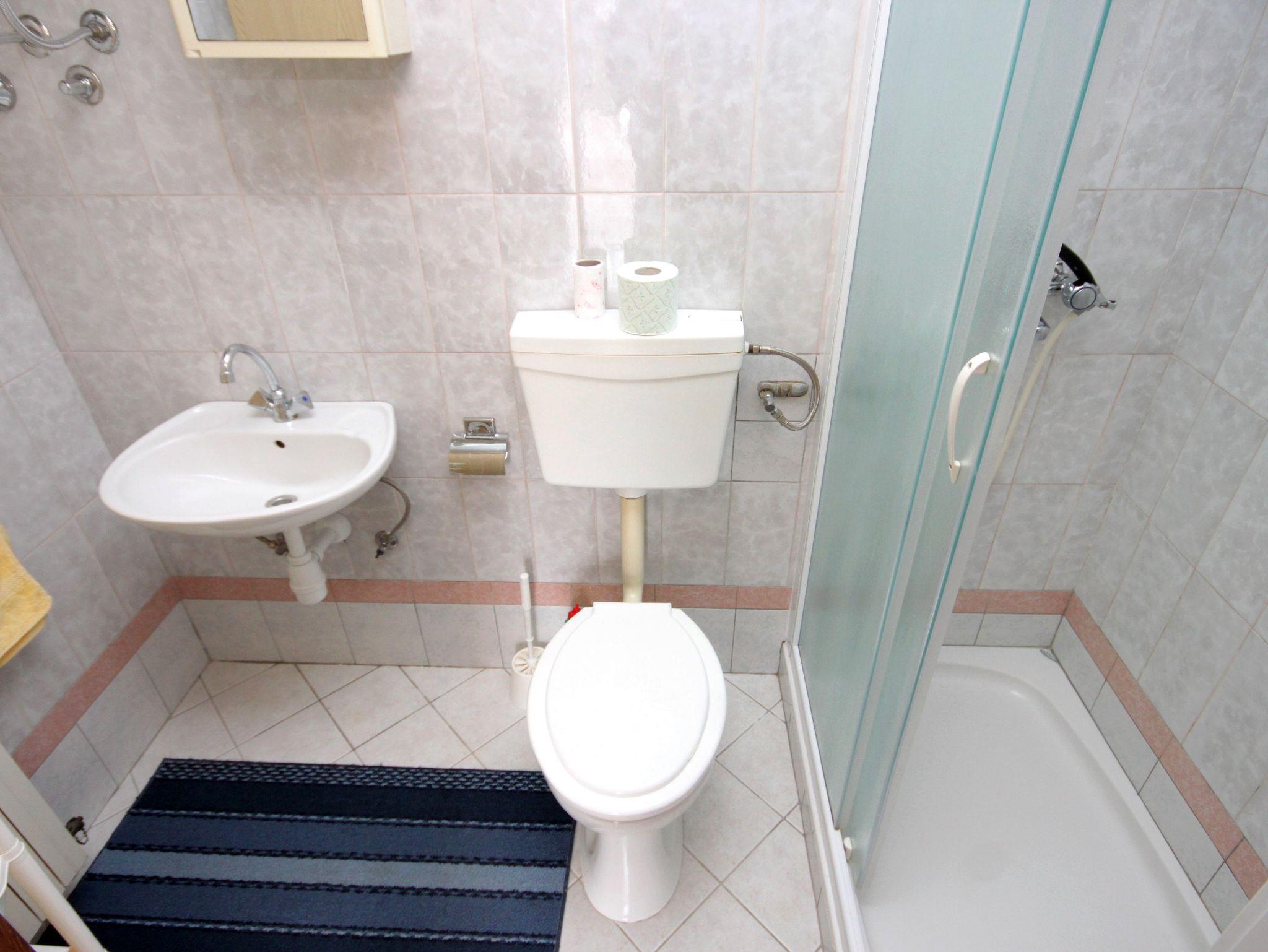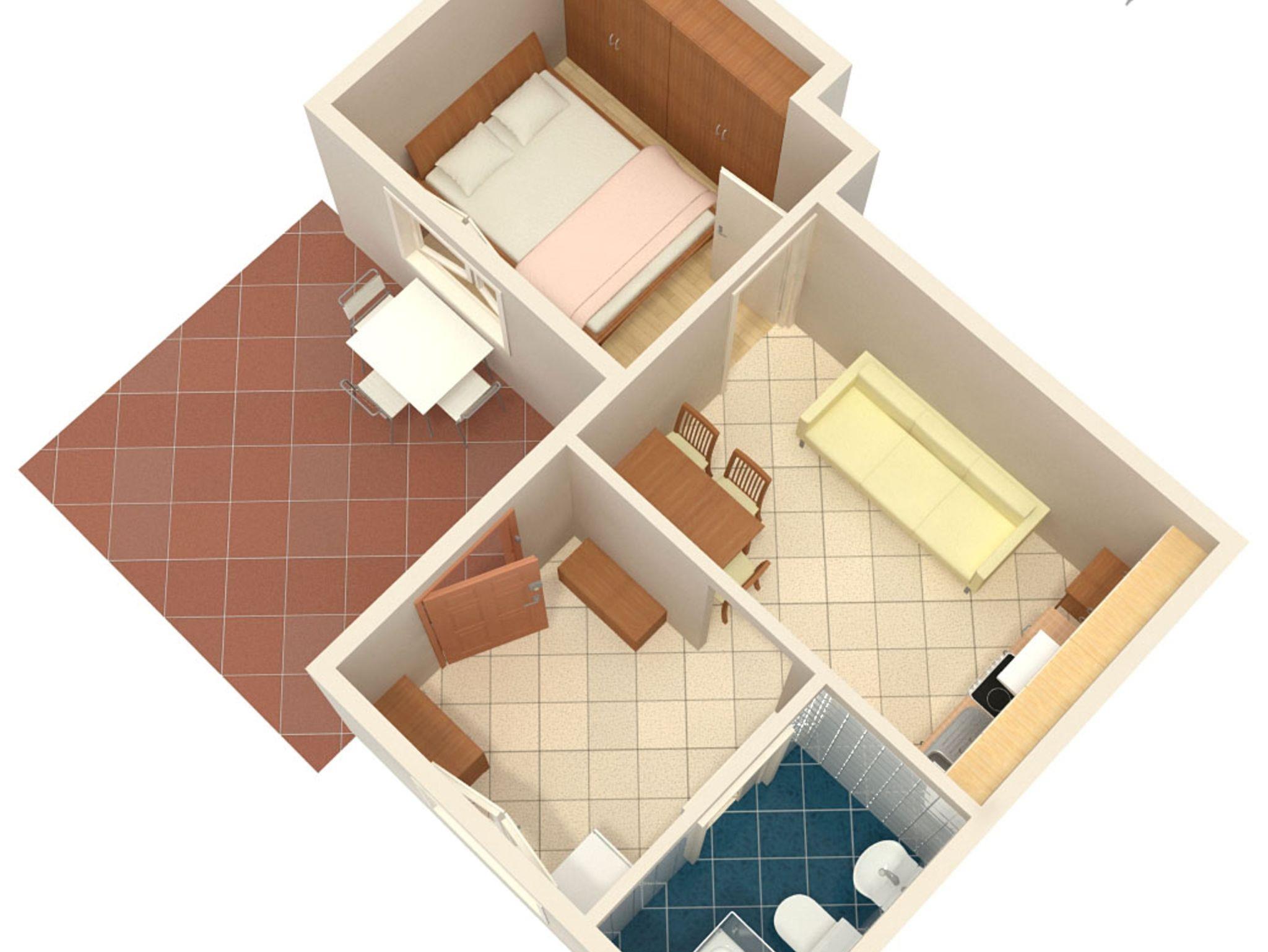 Ferienwohnung bietet Platz für 3 Gäste. Die Betten sind in Schlafzimmern, die es 1 gibt, und in Esszimmer, innerhalb einer Gesamtfläche von 30m2, angeordnet. Die Gäste haben eine eigene Terrasse zur Verfügung, auf der sie in warmen Sommernächten genießen können. Es ist erlaubt, Speisen auf dem Gemeinschafts-Grill vorzubereiten. In der Unterkunftseinheit besteht die Möglichkeit des Mitbringens von Haustieren gegen Aufpreis. IM PREIS INBEGRIFFEN: Kurtaxe, Endreinigung, Zentralheizung, Parkplatz, Internet, Kinderbett, Bügeleisen, Bügelbrett, Föhn, tragbarer Grill, Liegestühle. VERBINDLICHE ZUSÄTZLICHE KOSTEN: Aufzahlung für Kurzaufenthalte (prozentualer Zuschlag pro Nächtigungsanzahl: 30% - 1, 20% - 2, 10% - 3). UNVERBINDLICHE ZUSÄTZLICHE KOSTEN: Frühstück (7,00 €, 50% Nachlass für Kinder zwischen 4 und 12 Jahren, Kinder bis 4 Jahre sind frei.), Klimatisierung (7,00 € pro Nacht), Wäschewaschen (5,00 € Waschen), Haustiere (5,00 € pro Nacht). Die Verfügbarkeit zusätzlicher Dienstleistungen in Ihrem reservierten Termin und die Preise derselben (falls nicht aufgeführt) müssen im Voraus überprüft werden. Zusätzliche Dienstleistungen die in der Zahlungsaufforderung nicht aufgeführt sind werden direkt beim Vermieter bezahlt, angenommen der Gast nutzt auch diese.