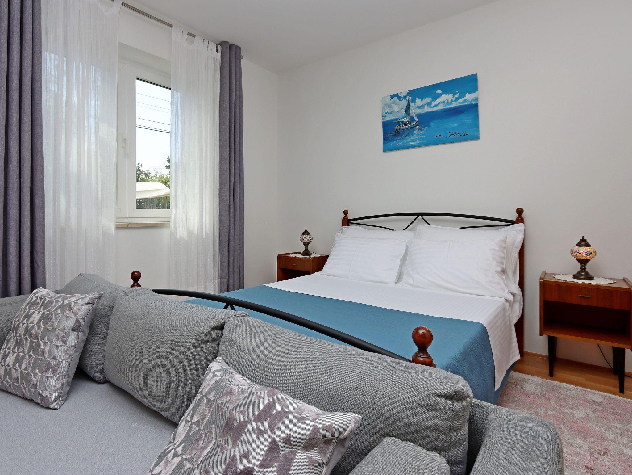 Ferienwohnung bietet Platz für 4 Gäste. Die Betten sind in Schlafzimmern, die es 1 gibt, und in Wohnzimmer, innerhalb einer Gesamtfläche von 48m2, angeordnet. Die Gäste haben eine eigene Terrasse zur Verfügung, auf der sie in warmen Sommernächten genießen können. Das Apartment bietet Meerblick. IM PREIS INBEGRIFFEN: Kurtaxe, Endreinigung, Klimatisierung, Parkplatz, Internet, Bügeleisen, Bügelbrett, Föhn. VERBINDLICHE ZUSÄTZLICHE KOSTEN: Aufzahlung für Kurzaufenthalte (prozentualer Zuschlag pro Nächtigungsanzahl: 30% - 1, 20% - 2, 10% - 3). Die Verfügbarkeit zusätzlicher Dienstleistungen in Ihrem reservierten Termin und die Preise derselben (falls nicht aufgeführt) müssen im Voraus überprüft werden. Zusätzliche Dienstleistungen die in der Zahlungsaufforderung nicht aufgeführt sind werden direkt beim Vermieter bezahlt, angenommen der Gast nutzt auch diese. Ermäßigung auf den Grundpreis: Gratistag 14=13 (bei einem Aufenthalt von 14 Tagen oder mehr erhalten Sie einen Gratistag für den Aufenthalt bis 31.12.26).