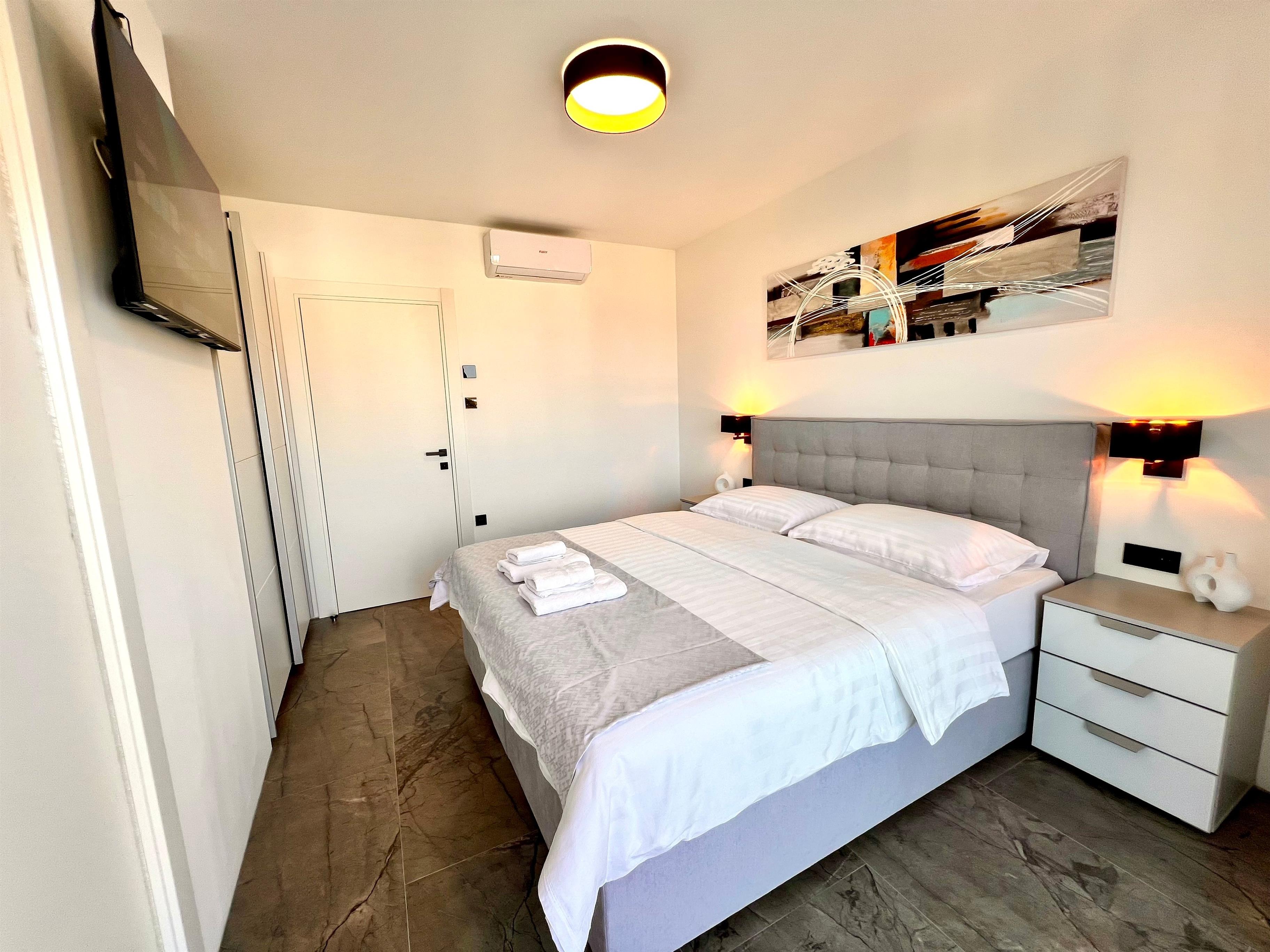 The apartment is designed in a contemporary style and situated in a brand-new modern building. Private parking is included, with an electric vehicle charging option, and a garage is also available upon request. This is the perfect blend of modern living, prime location, and luxurious comfort.