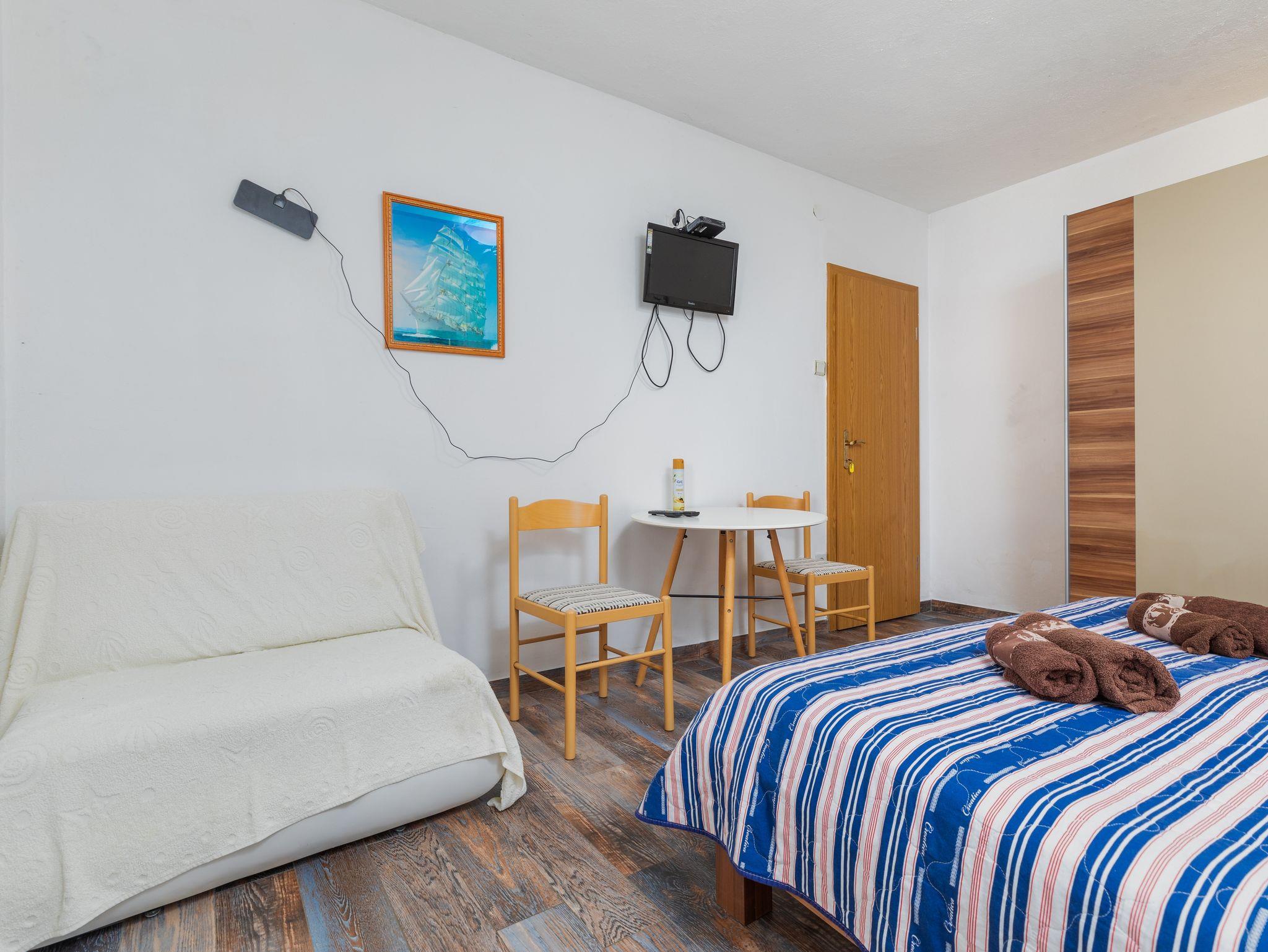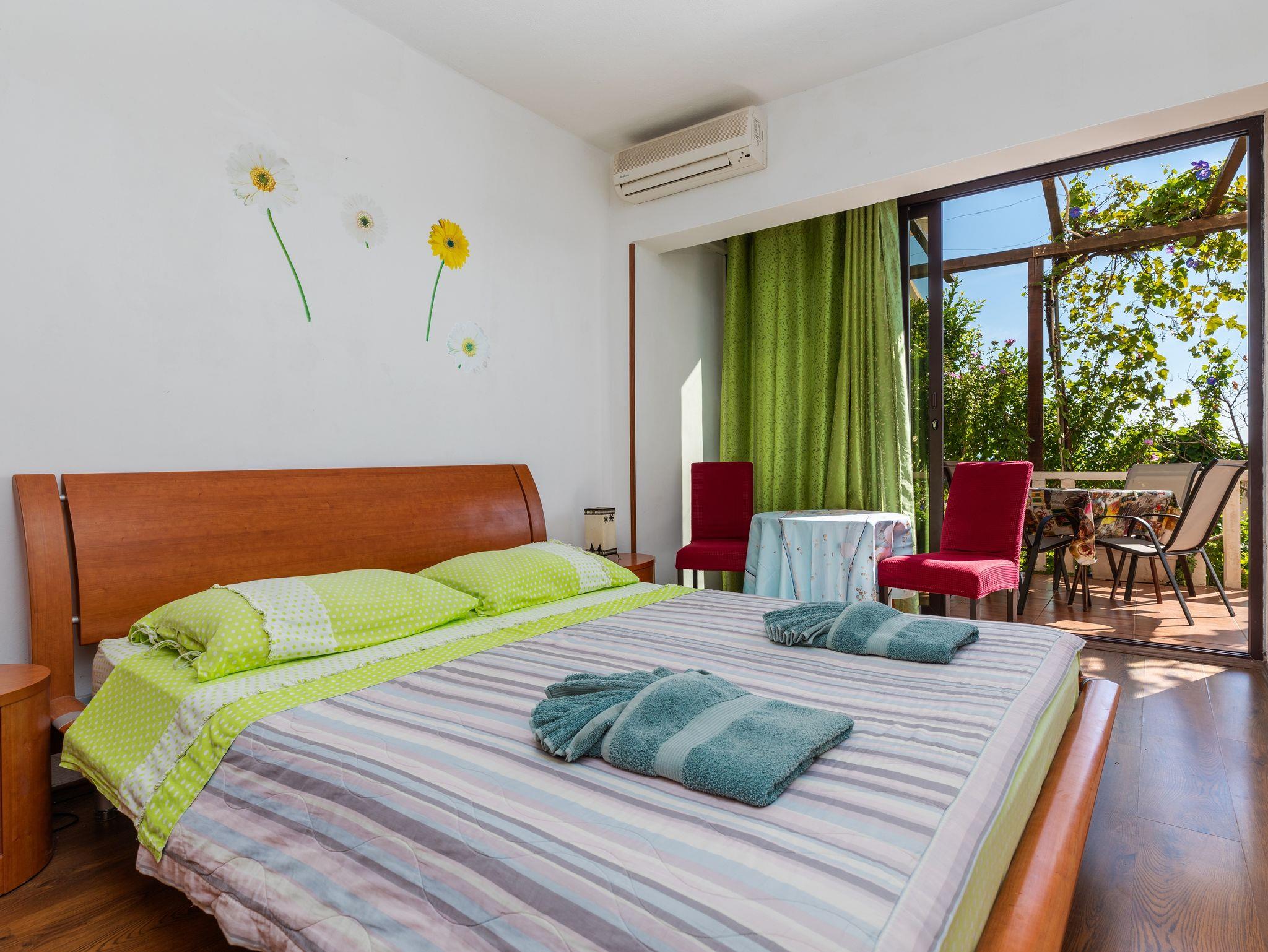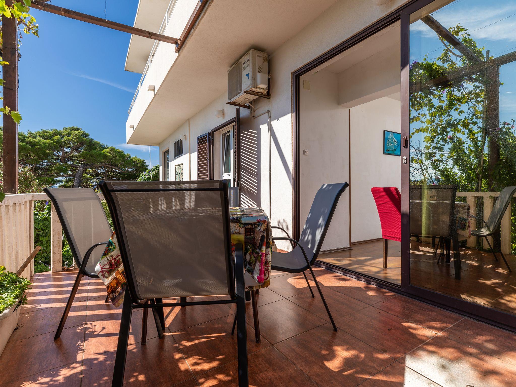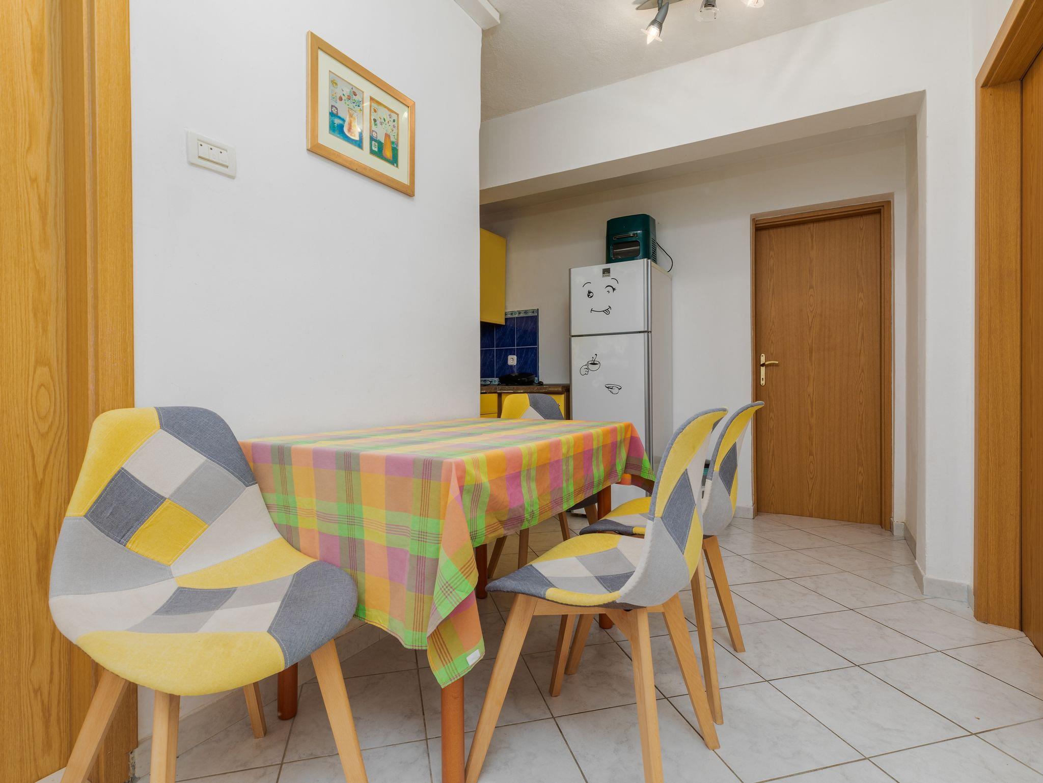 Ferienwohnung bietet Platz für 5 Gäste. Die Betten sind in Schlafzimmern, die es 2 gibt, innerhalb einer Gesamtfläche von 42m2, angeordnet. Die Gäste haben eine eigene Terrasse zur Verfügung, auf der sie in warmen Sommernächten genießen können. Das Apartment bietet Meerblick. Es ist erlaubt, Speisen auf dem Gemeinschafts-Grill vorzubereiten. In der Unterkunftseinheit besteht die Möglichkeit des Mitbringens von Haustieren gegen Aufpreis. IM PREIS INBEGRIFFEN: Kurtaxe, Endreinigung, Klimatisierung, Parkplatz, Internet, Kinderbett, tragbarer Grill. VERBINDLICHE ZUSÄTZLICHE KOSTEN: Aufzahlung für Kurzaufenthalte (prozentualer Zuschlag pro Nächtigungsanzahl: 30% - 1, 20% - 2, 10% - 3). UNVERBINDLICHE ZUSÄTZLICHE KOSTEN: Haustiere (5,00 € pro Nacht). Die Verfügbarkeit zusätzlicher Dienstleistungen in Ihrem reservierten Termin und die Preise derselben (falls nicht aufgeführt) müssen im Voraus überprüft werden. Zusätzliche Dienstleistungen die in der Zahlungsaufforderung nicht aufgeführt sind werden direkt beim Vermieter bezahlt, angenommen der Gast nutzt auch diese. Ermäßigung auf den Grundpreis: Gratistag 14=13 (bei einem Aufenthalt von 14 Tagen oder mehr erhalten Sie einen Gratistag für den Aufenthalt bis 31.12.26).