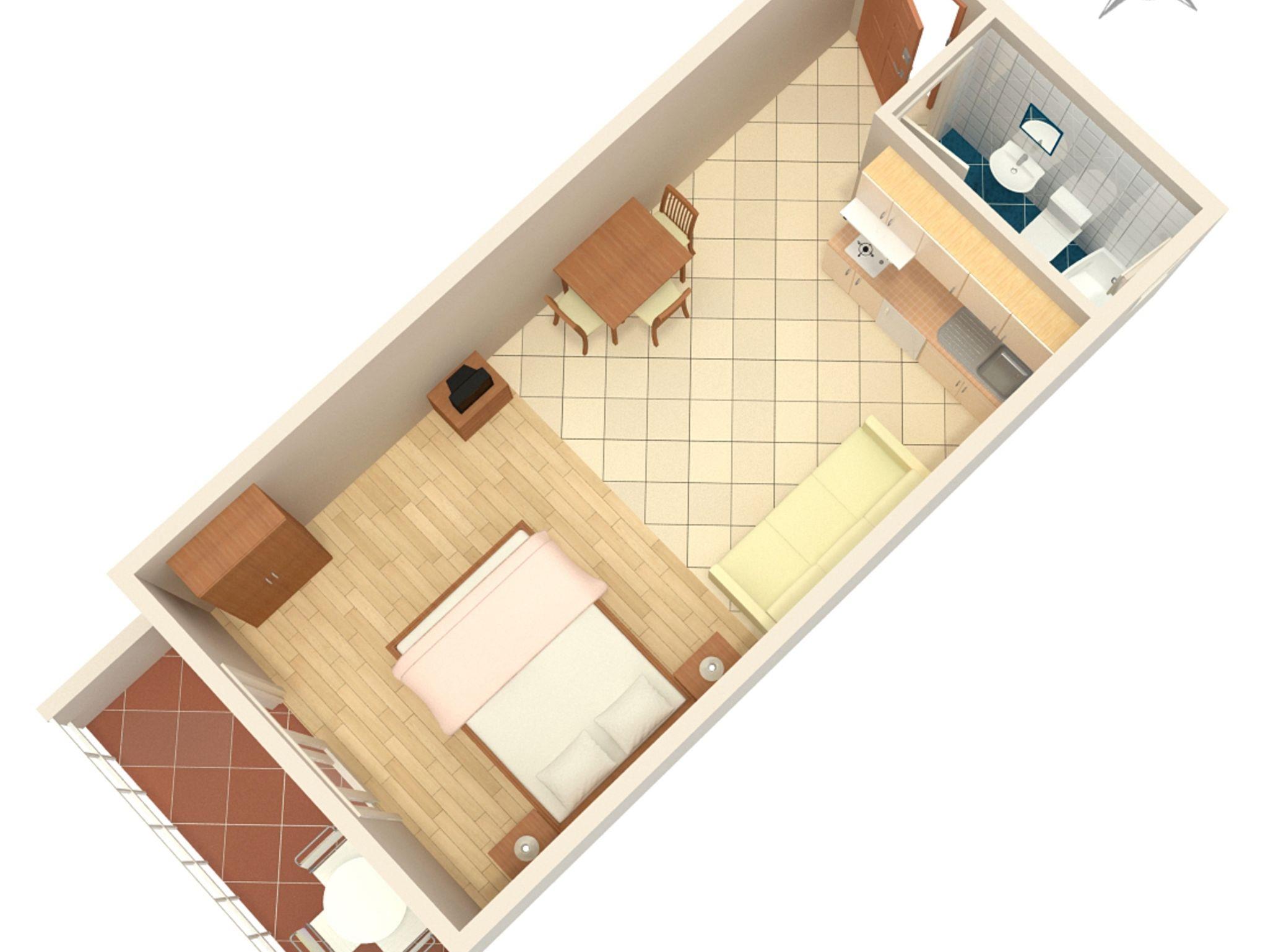 Studio bietet Platz für 2 Gäste. Die Betten sind in Schlafzimmern, die es 1 gibt, innerhalb einer Gesamtfläche von 20m2, angeordnet. Die Gäste haben einen eigenen Balkon zur Verfügung, auf der sie in warmen Sommernächten genießen können. Das Studio-Apartment bietet Meerblick. Es ist erlaubt, Speisen auf dem Gemeinschafts-Grill vorzubereiten. IM PREIS INBEGRIFFEN: Kurtaxe, Endreinigung, Klimatisierung, Parkplatz, Internet, Kinderbett, Bügeleisen, Bügelbrett, Föhn, tragbarer Grill, 1 Bett für Kinder (im Preis enthalten). VERBINDLICHE ZUSÄTZLICHE KOSTEN: Aufzahlung für Kurzaufenthalte (prozentualer Zuschlag pro Nächtigungsanzahl: 30% - 1, 20% - 2, 10% - 3). UNVERBINDLICHE ZUSÄTZLICHE KOSTEN: Wäschewaschen (5,00 € Waschen). Die Verfügbarkeit zusätzlicher Dienstleistungen in Ihrem reservierten Termin und die Preise derselben (falls nicht aufgeführt) müssen im Voraus überprüft werden. Zusätzliche Dienstleistungen die in der Zahlungsaufforderung nicht aufgeführt sind werden direkt beim Vermieter bezahlt, angenommen der Gast nutzt auch diese.