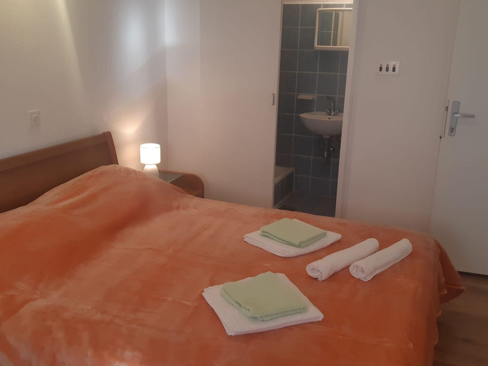 Ferienwohnung bietet Platz für 5 Gäste. Die Betten sind in Schlafzimmern, die es 2 gibt, und in Esszimmer, innerhalb einer Gesamtfläche von 44m2, angeordnet. Die Gäste haben einen eigenen Balkon zur Verfügung, auf der sie in warmen Sommernächten genießen können. Das Apartment bietet Meerblick. Es ist erlaubt, Speisen auf dem Gemeinschafts-Grill vorzubereiten. IM PREIS INBEGRIFFEN: Kurtaxe, Endreinigung, Klimatisierung, Parkplatz, Internet, Kinderbett, Bügeleisen, Bügelbrett, Föhn, tragbarer Grill. VERBINDLICHE ZUSÄTZLICHE KOSTEN: Aufzahlung für Kurzaufenthalte (prozentualer Zuschlag pro Nächtigungsanzahl: 30% - 1, 20% - 2, 10% - 3). Die Verfügbarkeit zusätzlicher Dienstleistungen in Ihrem reservierten Termin und die Preise derselben (falls nicht aufgeführt) müssen im Voraus überprüft werden. Zusätzliche Dienstleistungen die in der Zahlungsaufforderung nicht aufgeführt sind werden direkt beim Vermieter bezahlt, angenommen der Gast nutzt auch diese. Ermäßigung auf den Grundpreis: Gratistag 14=13 (bei einem Aufenthalt von 14 Tagen oder mehr erhalten Sie einen Gratistag für den Aufenthalt bis 31.12.26).