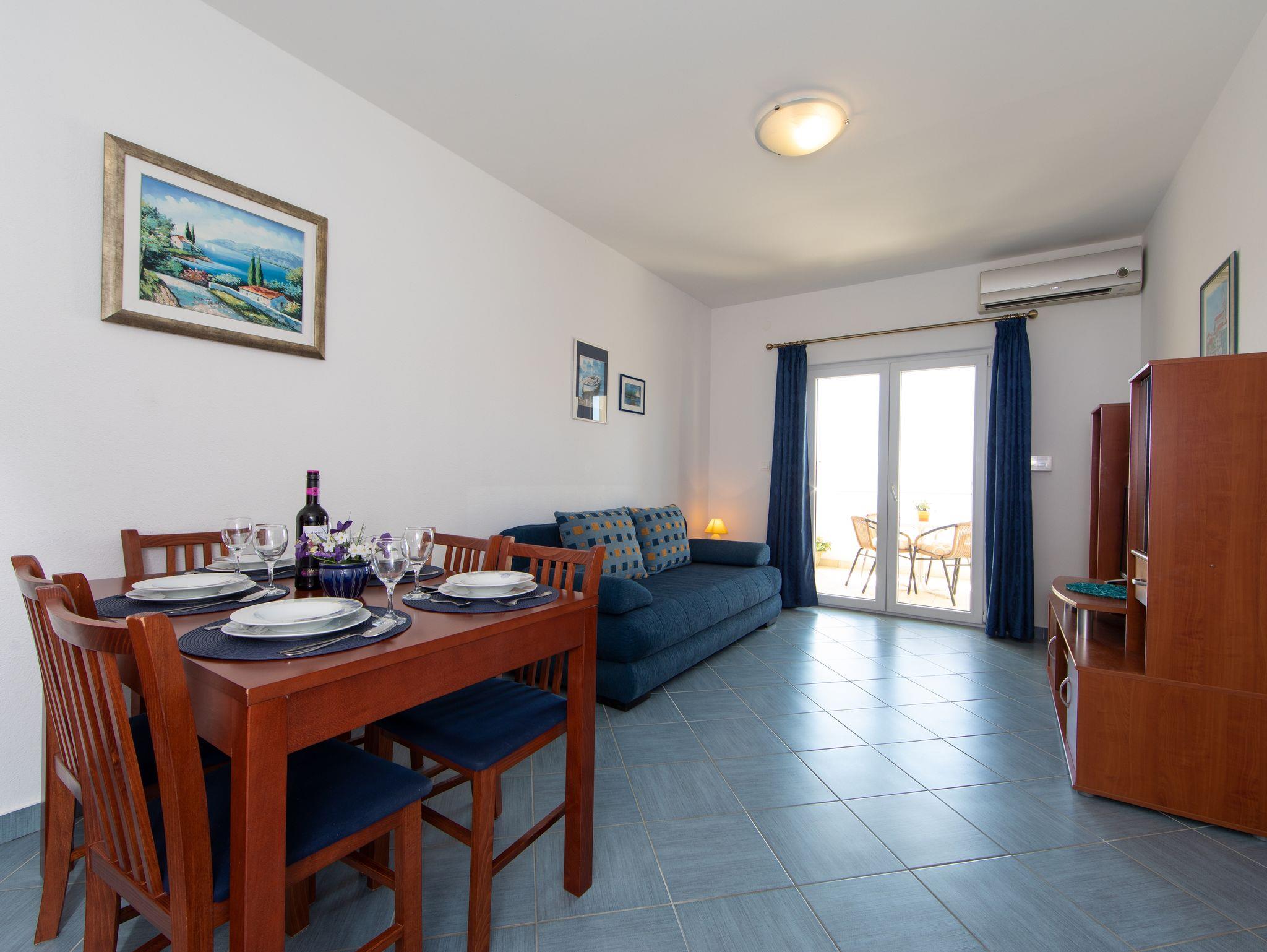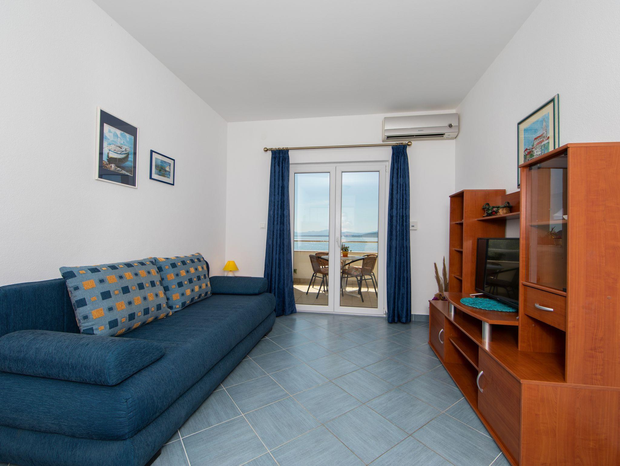 Ferienwohnung bietet Platz für 5 Gäste. Die Betten sind in Schlafzimmern, die es 1 gibt, und in Wohnzimmer, innerhalb einer Gesamtfläche von 42m2, angeordnet. Die Gäste haben eine eigene Terrasse zur Verfügung, auf der sie in warmen Sommernächten genießen können. Das Apartment bietet Meerblick. IM PREIS INBEGRIFFEN: Kurtaxe, Endreinigung, Klimatisierung, Parkplatz, Internet, Kinderbett. VERBINDLICHE ZUSÄTZLICHE KOSTEN: Aufzahlung für Kurzaufenthalte (prozentualer Zuschlag pro Nächtigungsanzahl: 30% - 1, 20% - 2, 10% - 3). Die Verfügbarkeit zusätzlicher Dienstleistungen in Ihrem reservierten Termin und die Preise derselben (falls nicht aufgeführt) müssen im Voraus überprüft werden. Zusätzliche Dienstleistungen die in der Zahlungsaufforderung nicht aufgeführt sind werden direkt beim Vermieter bezahlt, angenommen der Gast nutzt auch diese.