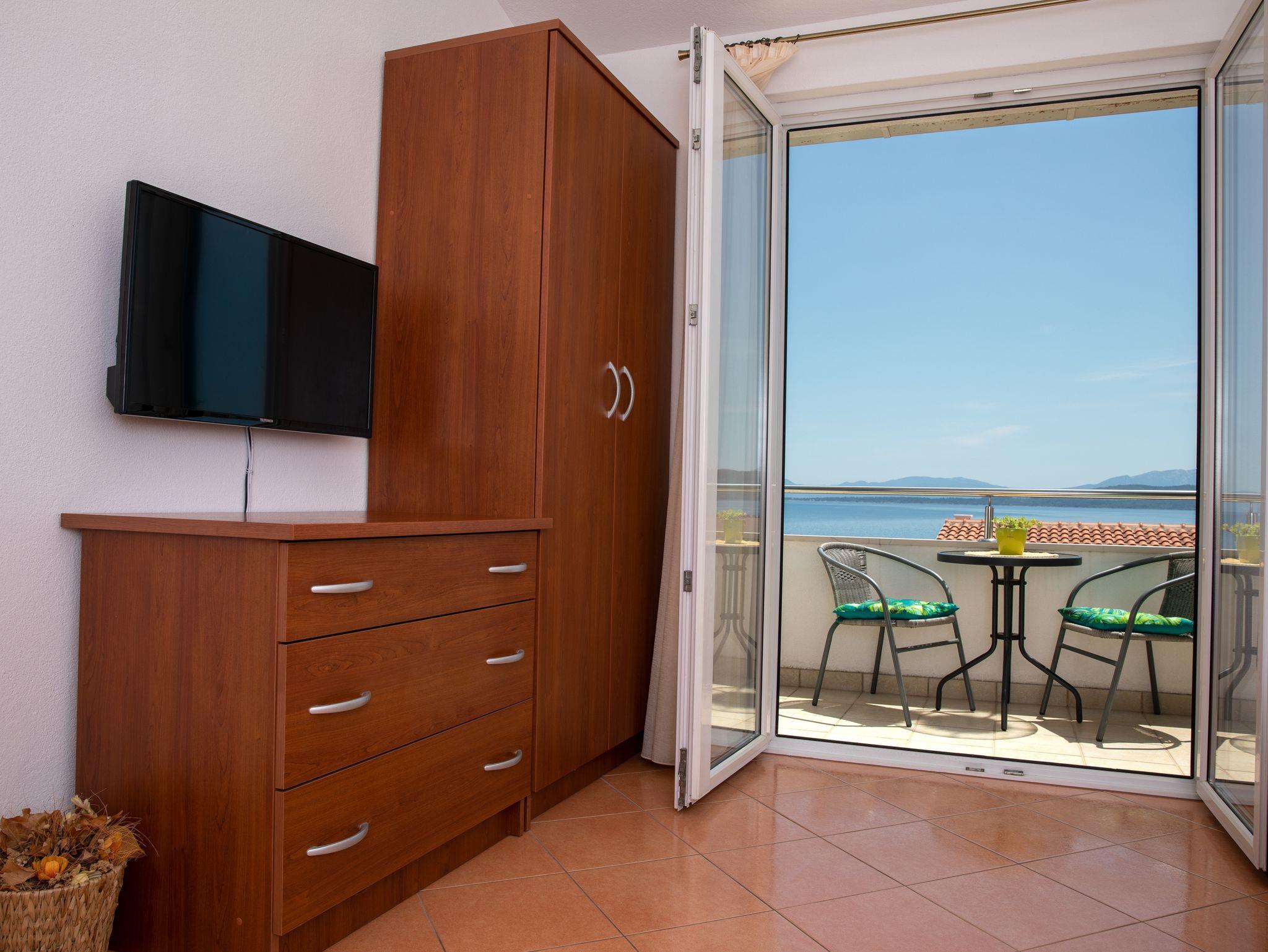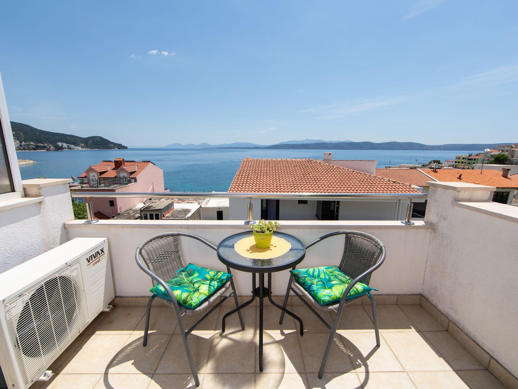 Ferienwohnung bietet Platz für 4 Gäste. Die Betten sind in Schlafzimmern, die es 1 gibt, und in Wohnzimmer, innerhalb einer Gesamtfläche von 50m2, angeordnet. Die Gäste haben eine eigene Terrasse zur Verfügung, auf der sie in warmen Sommernächten genießen können. Das Apartment bietet Meerblick. IM PREIS INBEGRIFFEN: Kurtaxe, Endreinigung, Klimatisierung, Parkplatz, Internet, Kinderbett. VERBINDLICHE ZUSÄTZLICHE KOSTEN: Aufzahlung für Kurzaufenthalte (prozentualer Zuschlag pro Nächtigungsanzahl: 30% - 1, 20% - 2, 10% - 3). Die Verfügbarkeit zusätzlicher Dienstleistungen in Ihrem reservierten Termin und die Preise derselben (falls nicht aufgeführt) müssen im Voraus überprüft werden. Zusätzliche Dienstleistungen die in der Zahlungsaufforderung nicht aufgeführt sind werden direkt beim Vermieter bezahlt, angenommen der Gast nutzt auch diese.