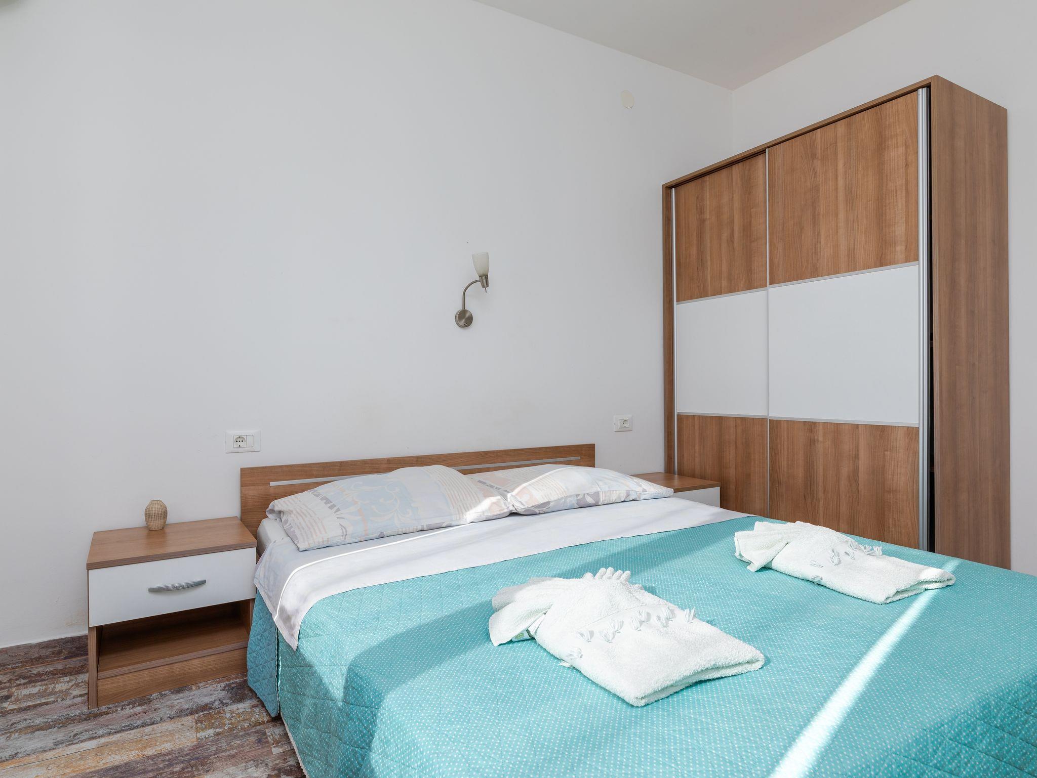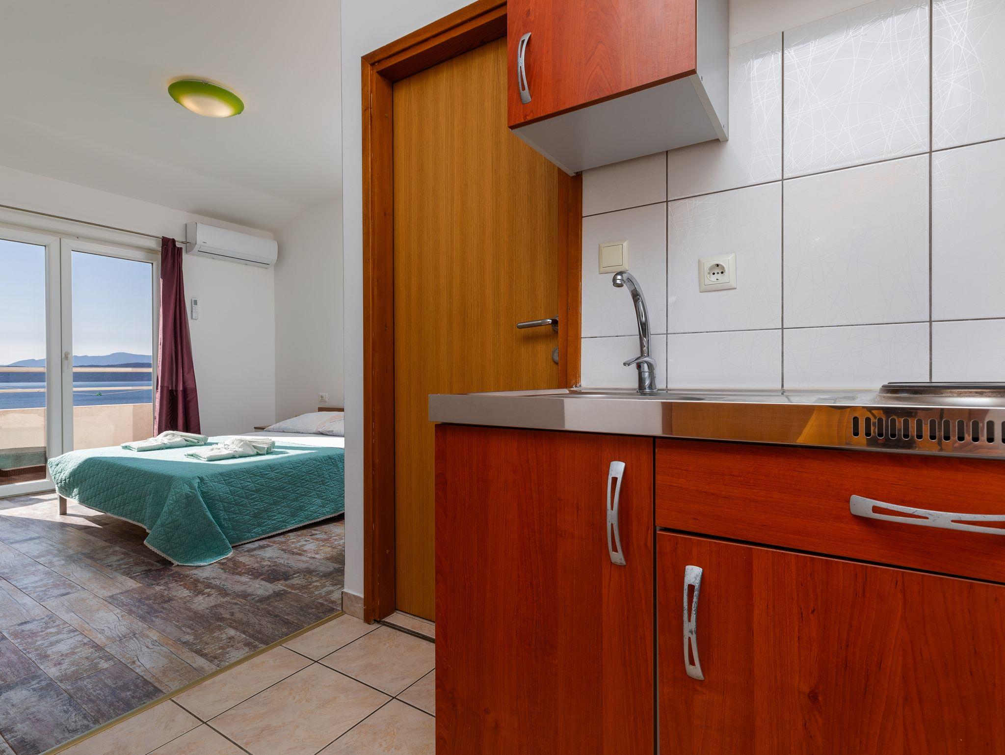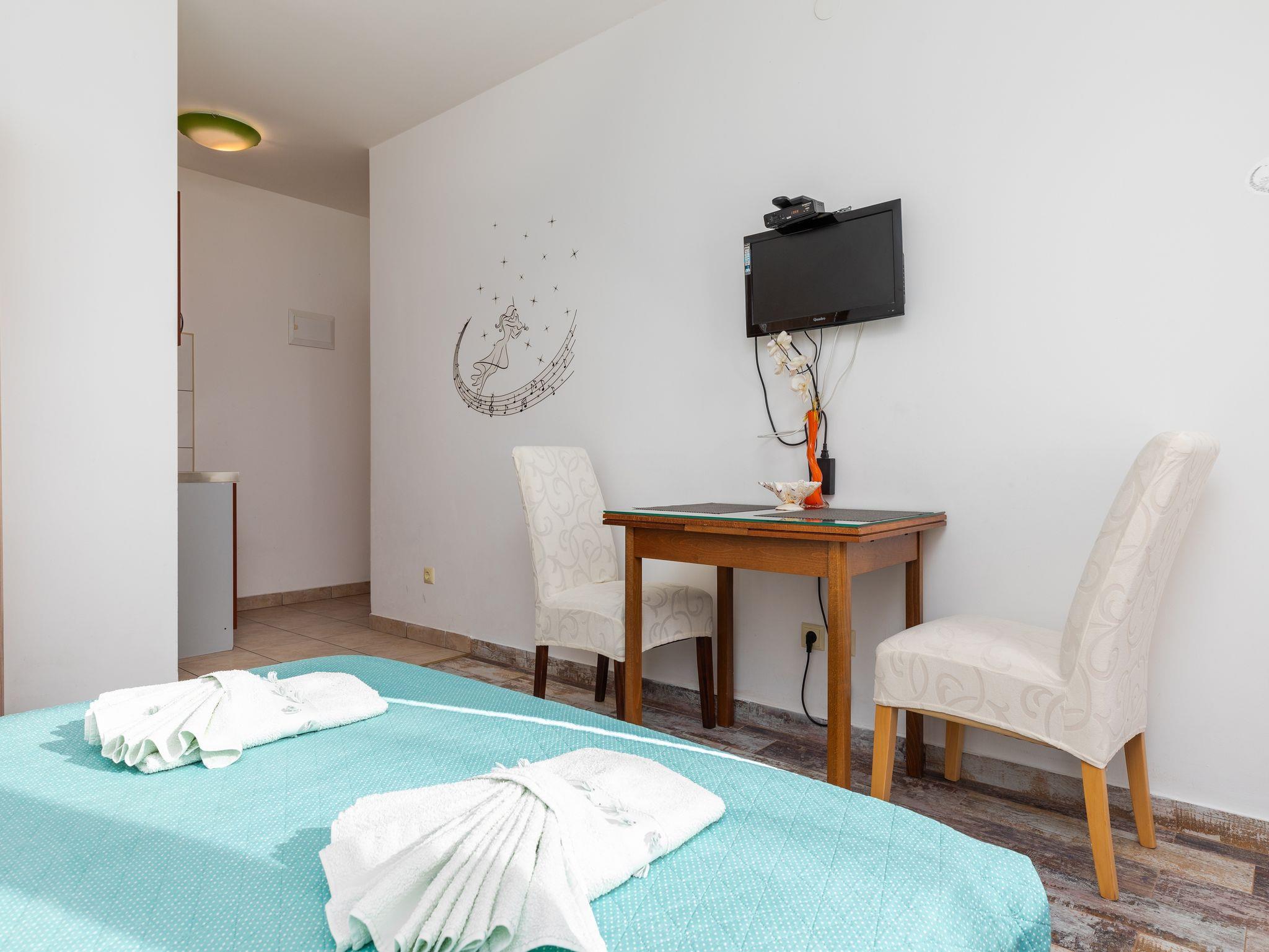 Studio bietet Platz für 2 Gäste. Die Betten sind in Schlafzimmern, die es 1 gibt, innerhalb einer Gesamtfläche von 17m2, angeordnet. Die Gäste haben einen eigenen Balkon zur Verfügung, auf der sie in warmen Sommernächten genießen können. Das Studio-Apartment bietet Meerblick. Es ist erlaubt, Speisen auf dem Gemeinschafts-Grill vorzubereiten. In der Unterkunftseinheit besteht die Möglichkeit des Mitbringens von Haustieren gegen Aufpreis. IM PREIS INBEGRIFFEN: Kurtaxe, Endreinigung, Klimatisierung, Parkplatz, Internet, Kinderbett, tragbarer Grill. VERBINDLICHE ZUSÄTZLICHE KOSTEN: Aufzahlung für Kurzaufenthalte (prozentualer Zuschlag pro Nächtigungsanzahl: 30% - 1, 20% - 2, 10% - 3). UNVERBINDLICHE ZUSÄTZLICHE KOSTEN: Haustiere (5,00 € pro Nacht). Die Verfügbarkeit zusätzlicher Dienstleistungen in Ihrem reservierten Termin und die Preise derselben (falls nicht aufgeführt) müssen im Voraus überprüft werden. Zusätzliche Dienstleistungen die in der Zahlungsaufforderung nicht aufgeführt sind werden direkt beim Vermieter bezahlt, angenommen der Gast nutzt auch diese. Ermäßigung auf den Grundpreis: Gratistag 14=13 (bei einem Aufenthalt von 14 Tagen oder mehr erhalten Sie einen Gratistag für den Aufenthalt bis 31.12.26).