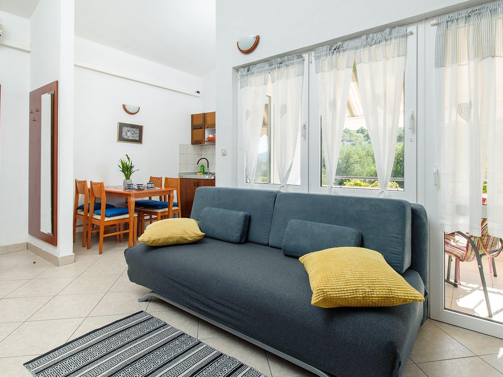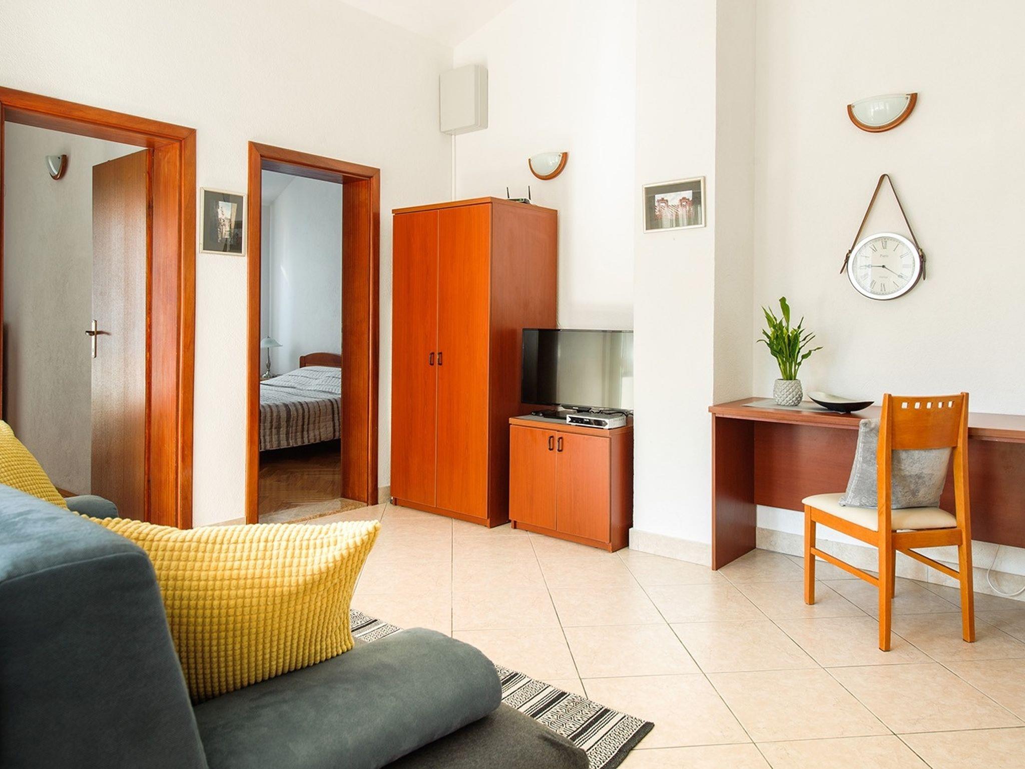 Ferienwohnung bietet Platz für 5 Gäste. Die Betten sind in Schlafzimmern, die es 2 gibt, und in Wohnzimmer, innerhalb einer Gesamtfläche von 49m2, angeordnet. Die Gäste haben eine eigene Terrasse zur Verfügung, auf der sie in warmen Sommernächten genießen können. Das Apartment bietet Meerblick. Es ist erlaubt, Speisen auf dem Gemeinschafts-Grill vorzubereiten. IM PREIS INBEGRIFFEN: Kurtaxe, Endreinigung, Klimatisierung, Parkplatz, Internet. Die Verfügbarkeit zusätzlicher Dienstleistungen in Ihrem reservierten Termin und die Preise derselben (falls nicht aufgeführt) müssen im Voraus überprüft werden. Zusätzliche Dienstleistungen die in der Zahlungsaufforderung nicht aufgeführt sind werden direkt beim Vermieter bezahlt, angenommen der Gast nutzt auch diese.