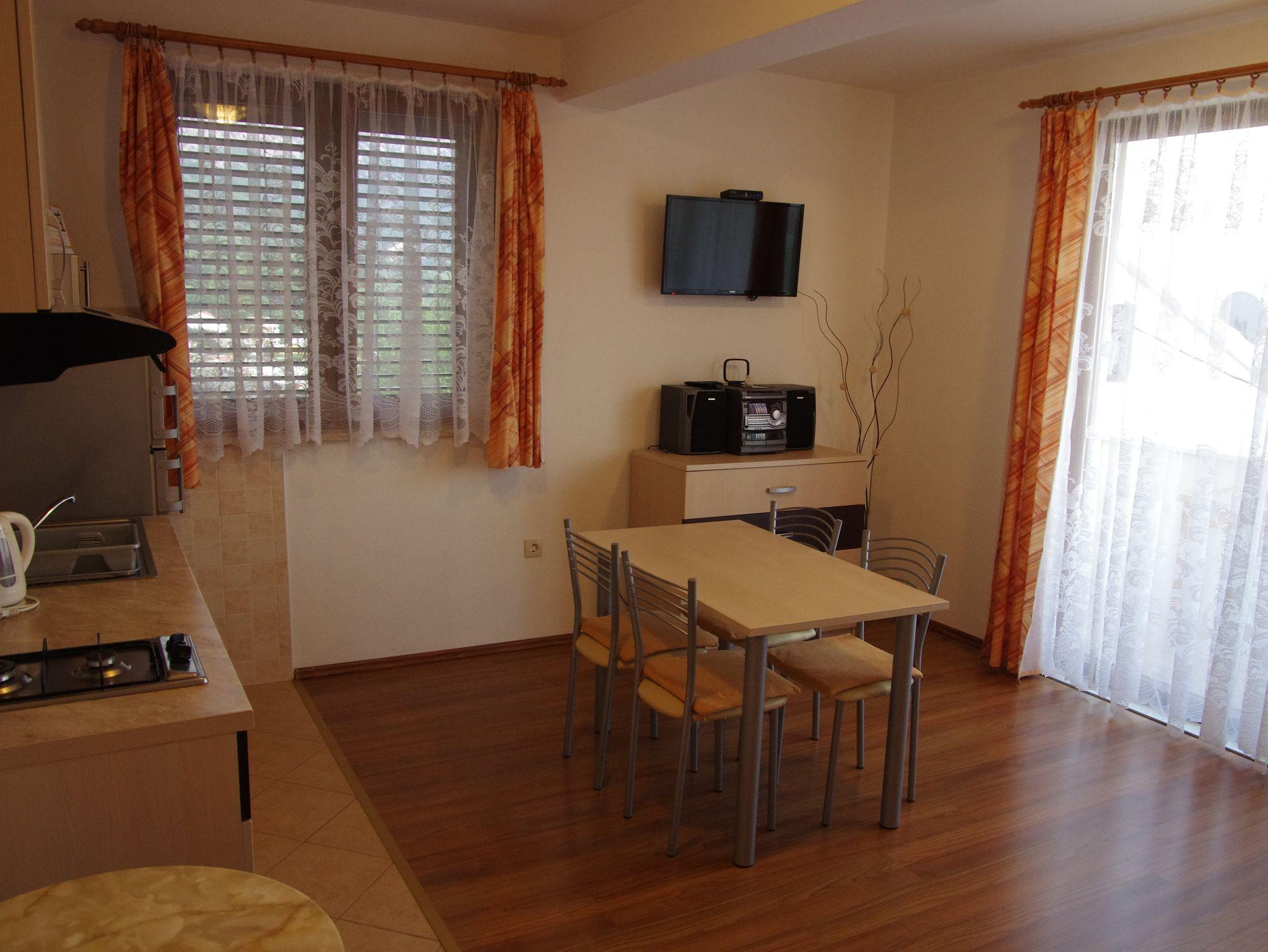 Ferienwohnung bietet Platz für 4 Gäste. Die Betten sind in Schlafzimmern, die es 1 gibt, und in Wohnzimmer, innerhalb einer Gesamtfläche von 40m2, angeordnet. Die Gäste haben einen eigenen Balkon zur Verfügung, auf der sie in warmen Sommernächten genießen können. Das Apartment bietet Meerblick. Räume der gebuchten Unterkunftseinheit werden nicht in eine Ganze verbunden. IM PREIS INBEGRIFFEN: Kurtaxe, Endreinigung, Klimatisierung, Parkplatz, Internet. Die Verfügbarkeit zusätzlicher Dienstleistungen in Ihrem reservierten Termin und die Preise derselben (falls nicht aufgeführt) müssen im Voraus überprüft werden. Zusätzliche Dienstleistungen die in der Zahlungsaufforderung nicht aufgeführt sind werden direkt beim Vermieter bezahlt, angenommen der Gast nutzt auch diese. Ermäßigung auf den Grundpreis: Gratistag 28=25 (bei einem Aufenthalt von 28 oder mehr Tagen erhalten Sie 3 kostenlose Tage für den Aufenthalt bis 31.12.26).