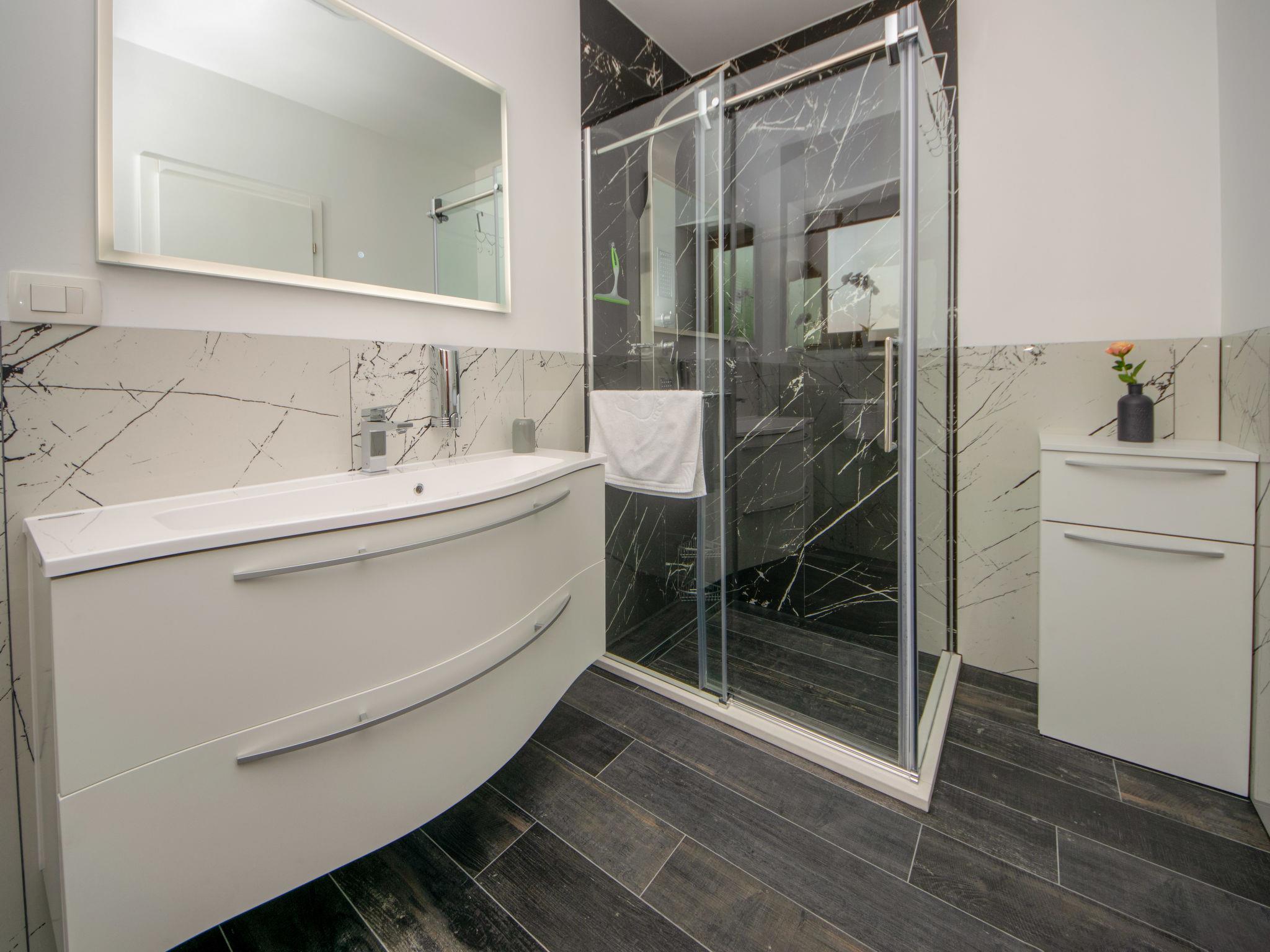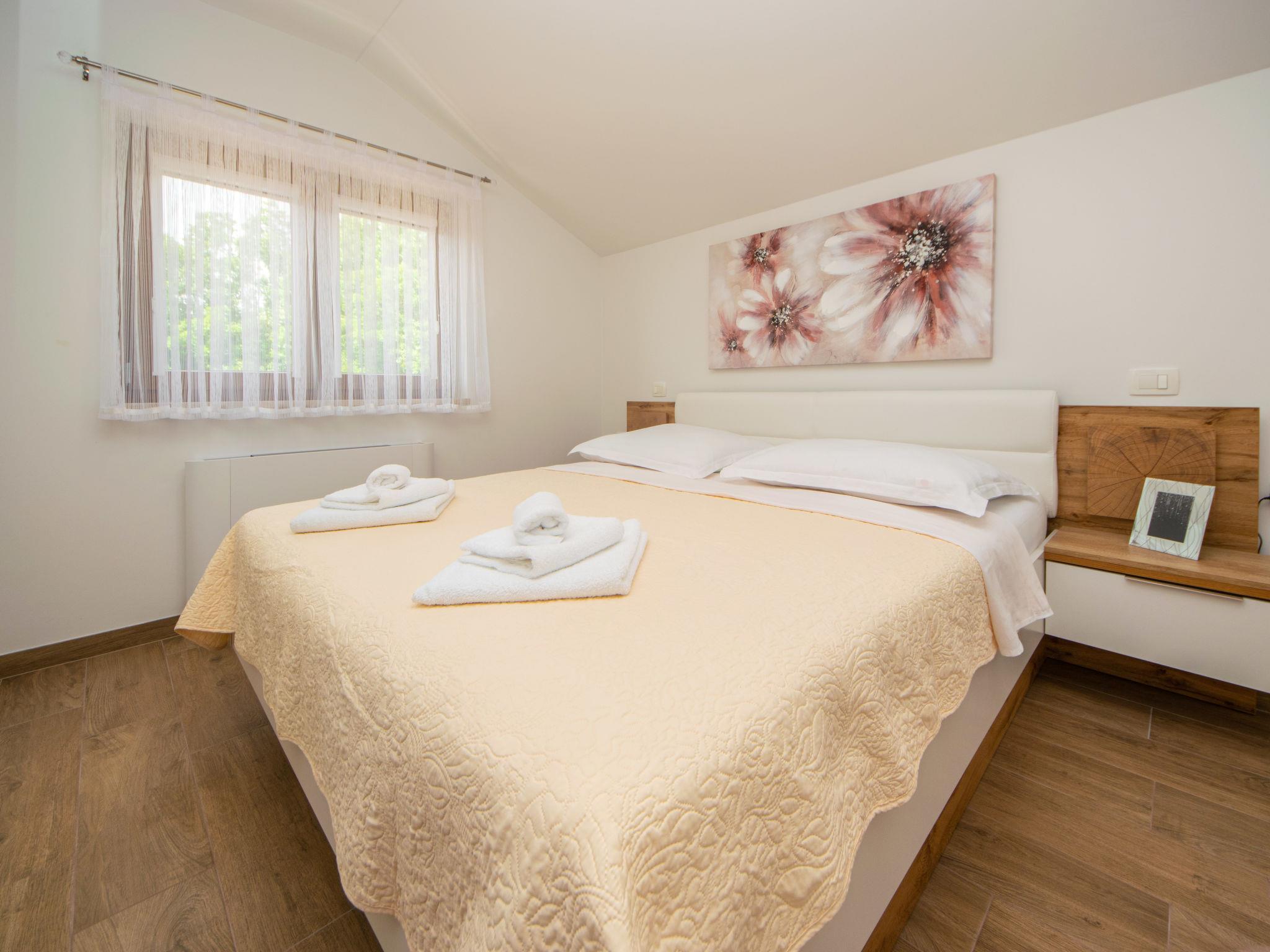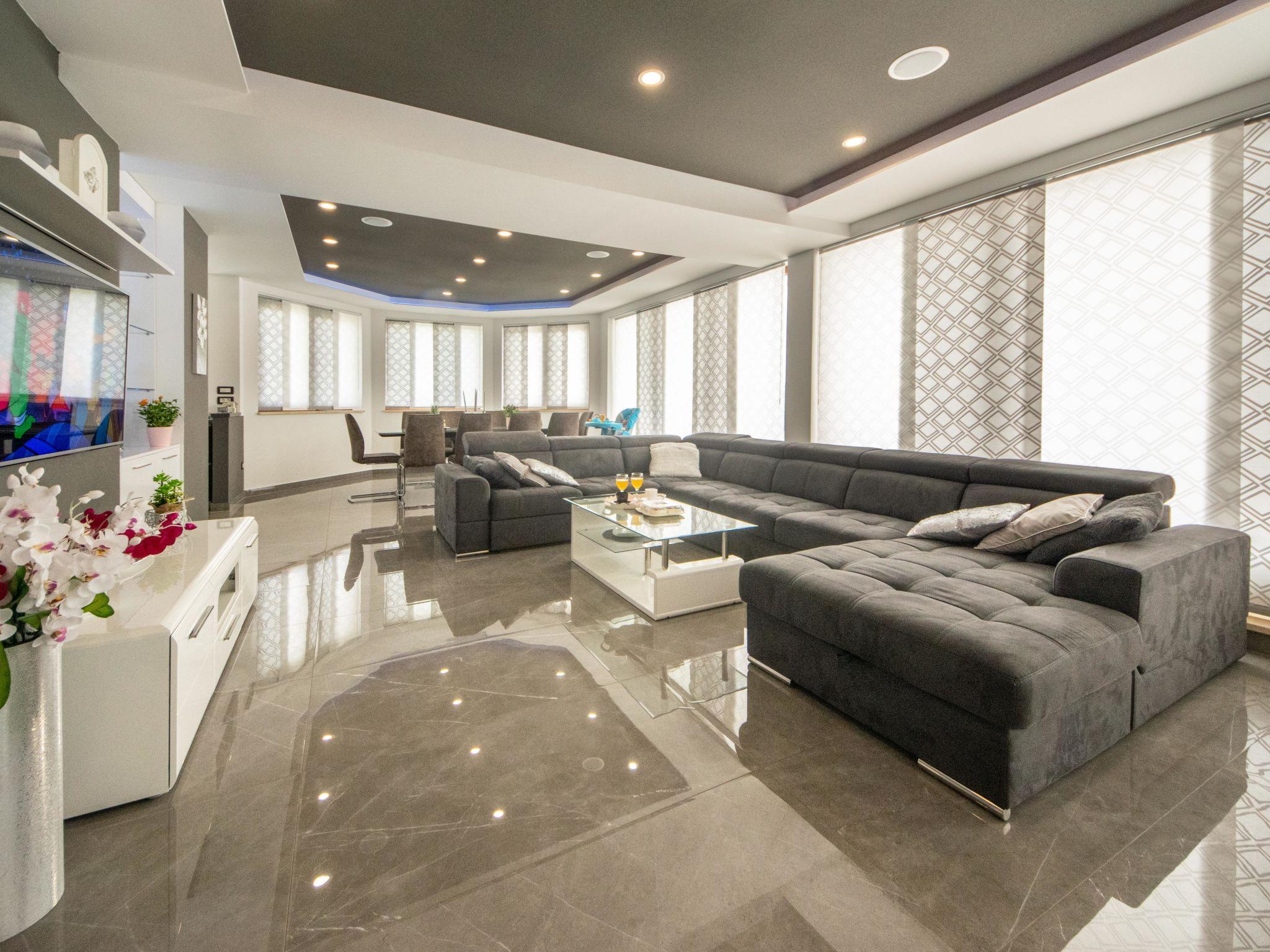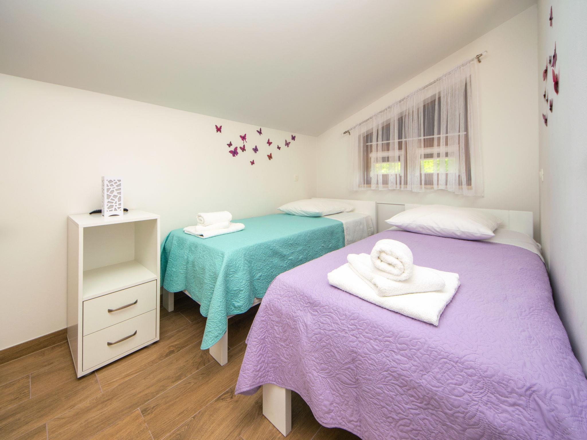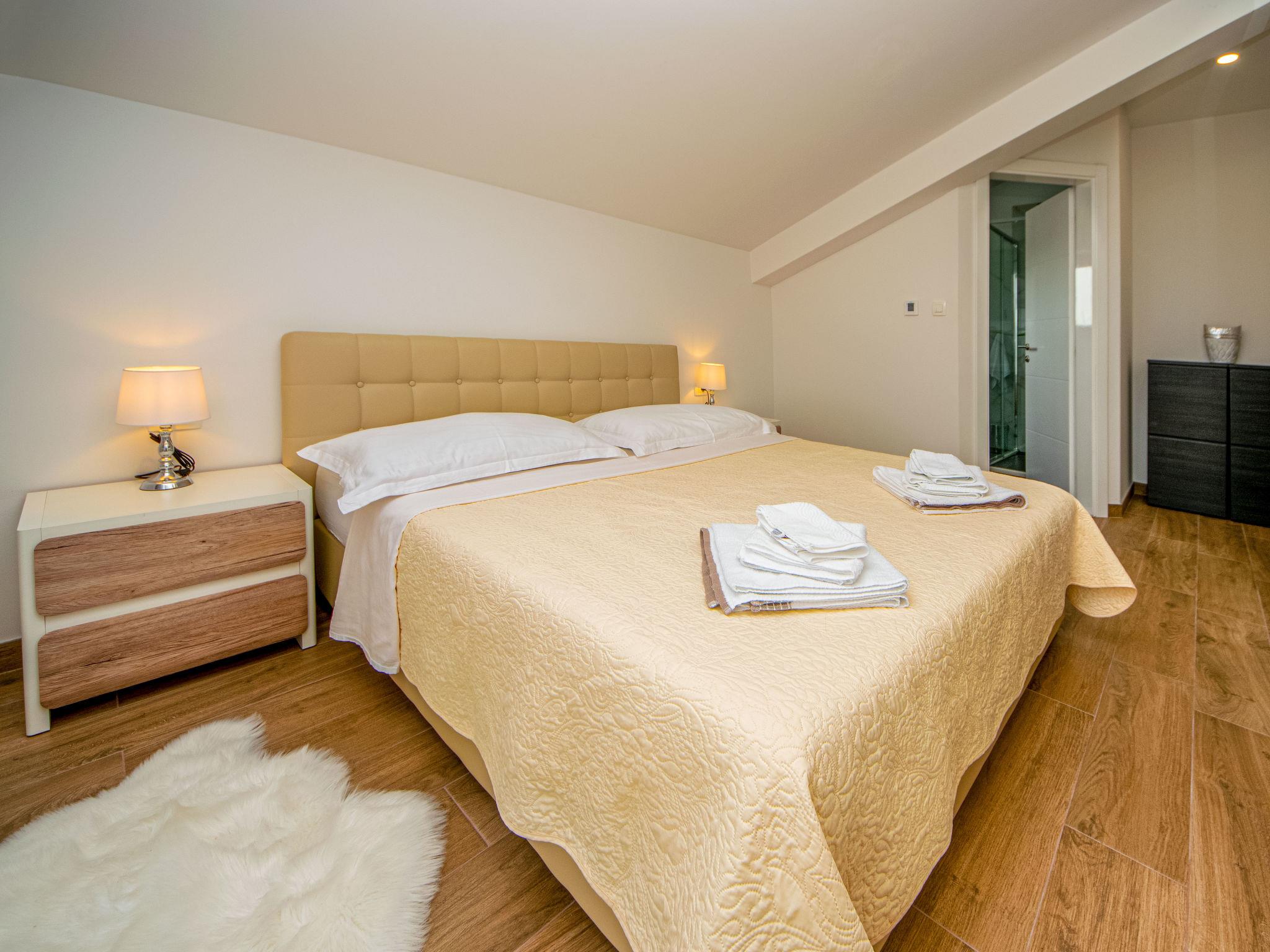 Gornji Proložac 6 km from Imotski: Child friendly, modern, beautiful villa "Oasis of peace", 2 storeys, built in 2019. In a quiet, sunny position, 38 km from the sea. Private: property 1'370 m2 (fenced), swimming pool angular, heated (12 x 5 m, depth 150 cm, seasonal availability: 01.May. - 01.Oct.) with internal staircase and salt-electrolysis pool-cleaning system. Paddling pool, outdoor shower, hot tub, pool house with fridge, WC and cooking stove, barbecue, children's playground (slide, swing). In the house: internet access, storage room for bicycles, washing machine. Available: bicycles. Parking (for 4 cars) at the house on the premises. Shop 6 km, restaurant 1 km, bus stop 7.3 km, pebble beach 38 km. Walking paths from the house 1 km, cycle lane 1 km. Well-known lakes can easily be reached: Modro jezero 1 km, Crveno jezero 1 km. Please note: suitable for families. The owner does not accept any youth groups. It is necessary to announce 7 days in advance if the pool heating is required. Pool house: kitchen with dining table and satellite TV. Private: small football playground (included).