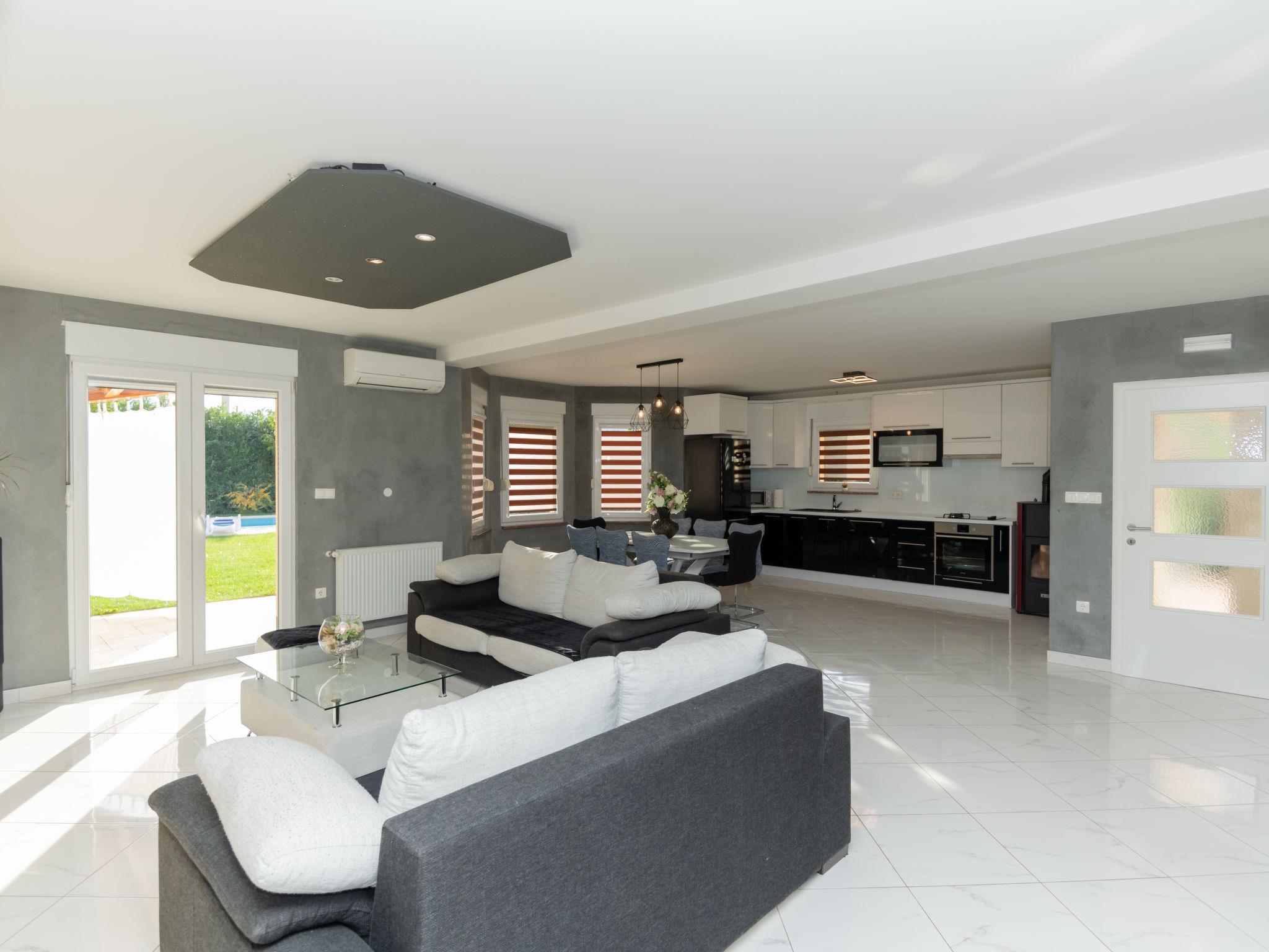 Donji Proložac 10 km from Imotski: Single-family house "Six Brothers", 2 storeys. 700 m from the centre of Donji Proložac, in a quiet, sunny position, 30 km from the sea. Private: property 1'000 m2 (fenced), swimming pool angular (9 x 4 m, depth 150 cm, seasonal availability: 01.Jun. - 01.Oct.). Basketball, barbecue, children's playground. In the house: internet access, washing machine. Parking (for 3 cars) at the house on the premises, single garage. Supermarket 700 m, restaurant 2 km, bus stop 6.7 km, pebble beach 30 km. Well-known lakes can easily be reached: Modro jezero 5 km. Please note: airfield 100 km from the property.