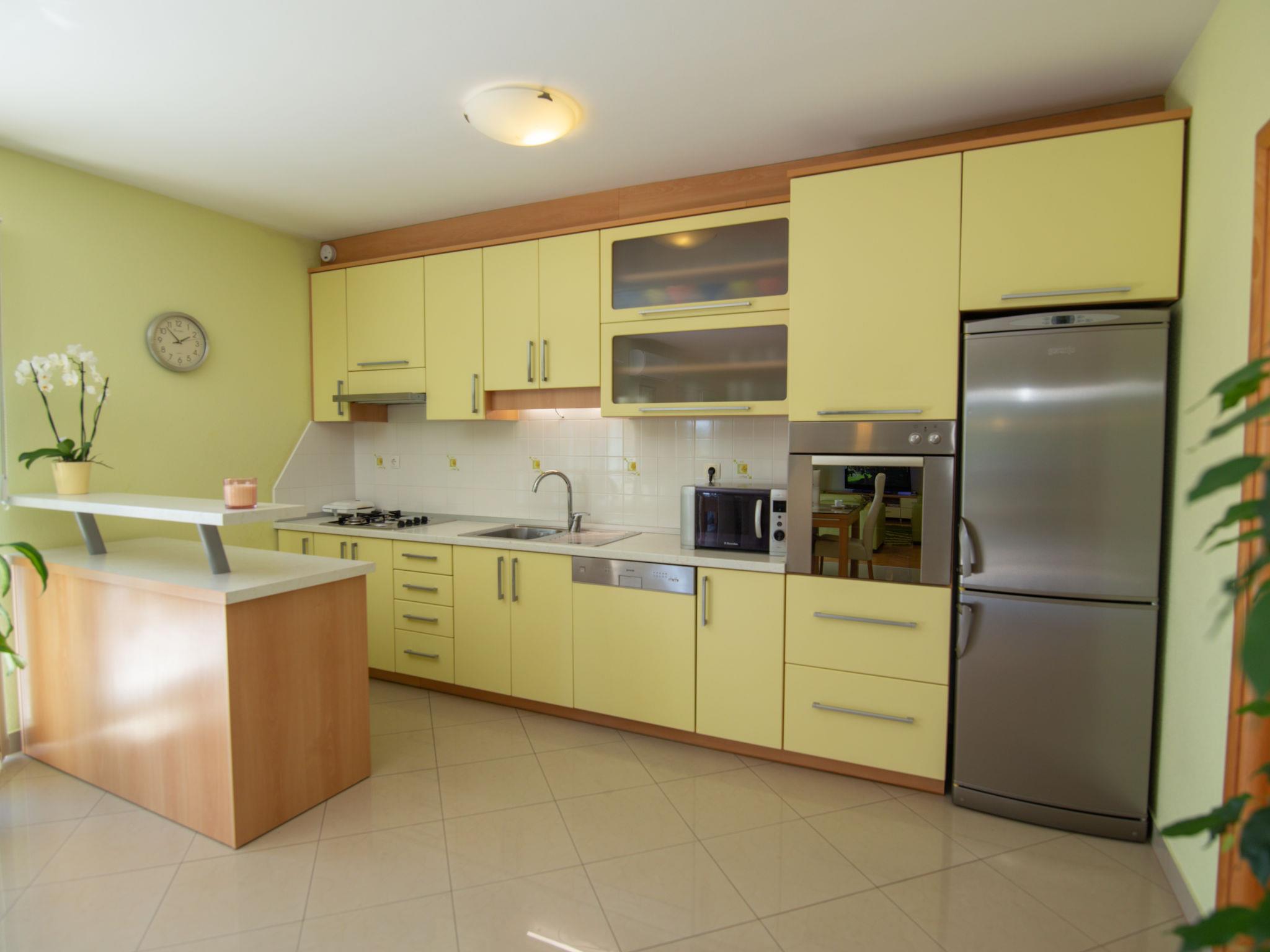 7-room house 200 m2, south facing position. Living/dining room 50 m2 with satellite TV (flat screen), air conditioning. Exit to the terrace. Open kitchen (4 hot plates, oven, dishwasher, microwave, freezer, electric coffee machine). Sep. WC. On the lower ground floor: living/dining room with satellite TV (flat screen), air conditioning. Exit to the terrace. 1 room with 1 french bed (160 cm, length 200 cm). 1 room with 1 french bed (180 cm, length 200 cm). Open kitchen (3 hot plates, oven, freezer). Shower/bidet/WC. Upper floor: 2 rooms, each room with 1 french bed (180 cm, length 200 cm). 1 room with 1 french bed (160 cm, length 200 cm). Bath/WC. Facilities: Internet (WiFi, free).