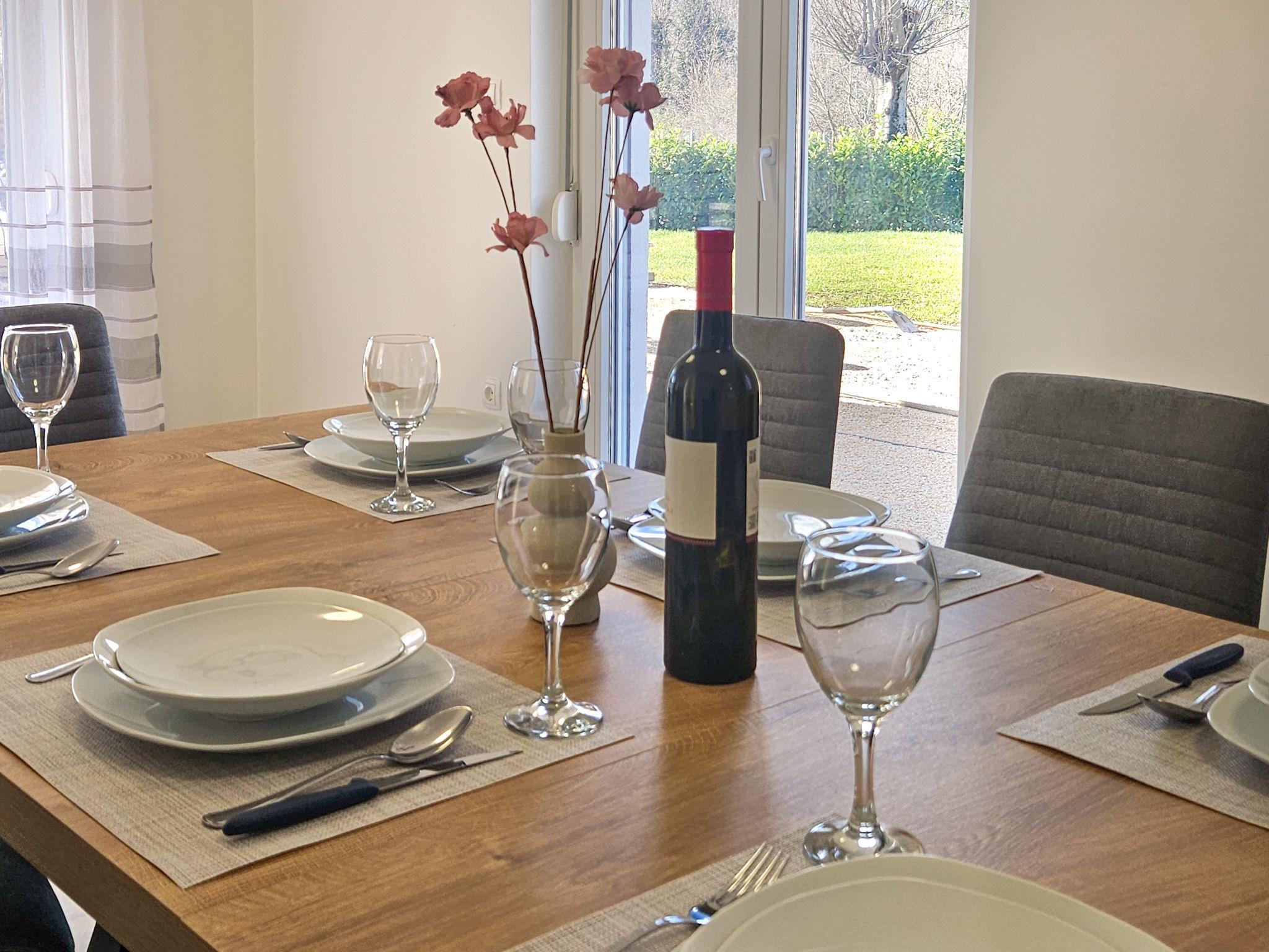 4-room house 140 m2 on 2 levels, south facing position. Living/dining room with satellite TV (flat screen), air conditioning. Exit to the terrace. Open kitchen (oven, dishwasher, 4 ceramic glass hob hotplates, kettle, microwave, freezer, electric coffee machine). Shower/WC. No heating option. Upper floor: 1 room with 1 french bed (160 cm, length 200 cm), shower/WC and satellite TV (flat screen), air conditioning. Exit to the balcony. 1 room with 1 french bed (160 cm, length 200 cm), satellite TV (flat screen), air conditioning. 1 room with 2 beds (90 cm, length 200 cm), satellite TV (flat screen), air conditioning. Shower/WC. Balcony 15 m2. Balcony furniture, barbecue (portable), deck chairs (6). View of the swimming pool and the countryside. Facilities: washing machine, children's high chair, baby cot. Internet (WiFi, free).