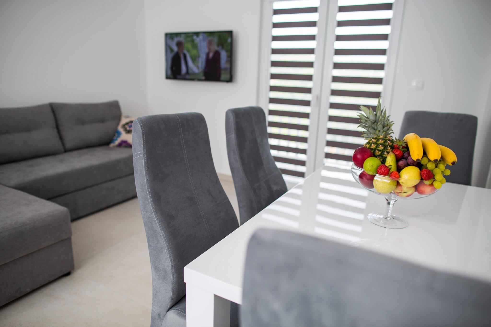 Denne indbydende 2-værelses lejlighed i Imotski kan komfortabelt rumme op til 8 gæster, hvilket gør den perfekt til familier eller grupper af venner, der søger at udforske den fantastiske Blue Lake i nærheden. Ejendommen tilbyder gratis WiFi, aircondition og balkon til at slappe af og nyde udsigten samt parkeringsfaciliteter for din bekvemmelighed. Gæster kan nemt leje en bil for at opdage nærliggende byer og attraktioner eller nyde en fredelig picnic ved floden. Lokale restauranter er kun en kort gåtur væk, hvor du kan nyde lækre regionale retter. Lejligheden har også en fælles opholdsstue og en restaurant på stedet. Indenfor finder du et fuldt udstyret køkken, sovesofa, fladskærms-tv og vaskemaskine til din komfort. En betalt morgenbuffet er tilgængelig for at starte din dag rigtigt. Med Split Lufthavn 74 km væk og en betalt shuttle-service tilbydes denne lejlighed en bekvem og komfortabel base for dit kroatiske eventyr.