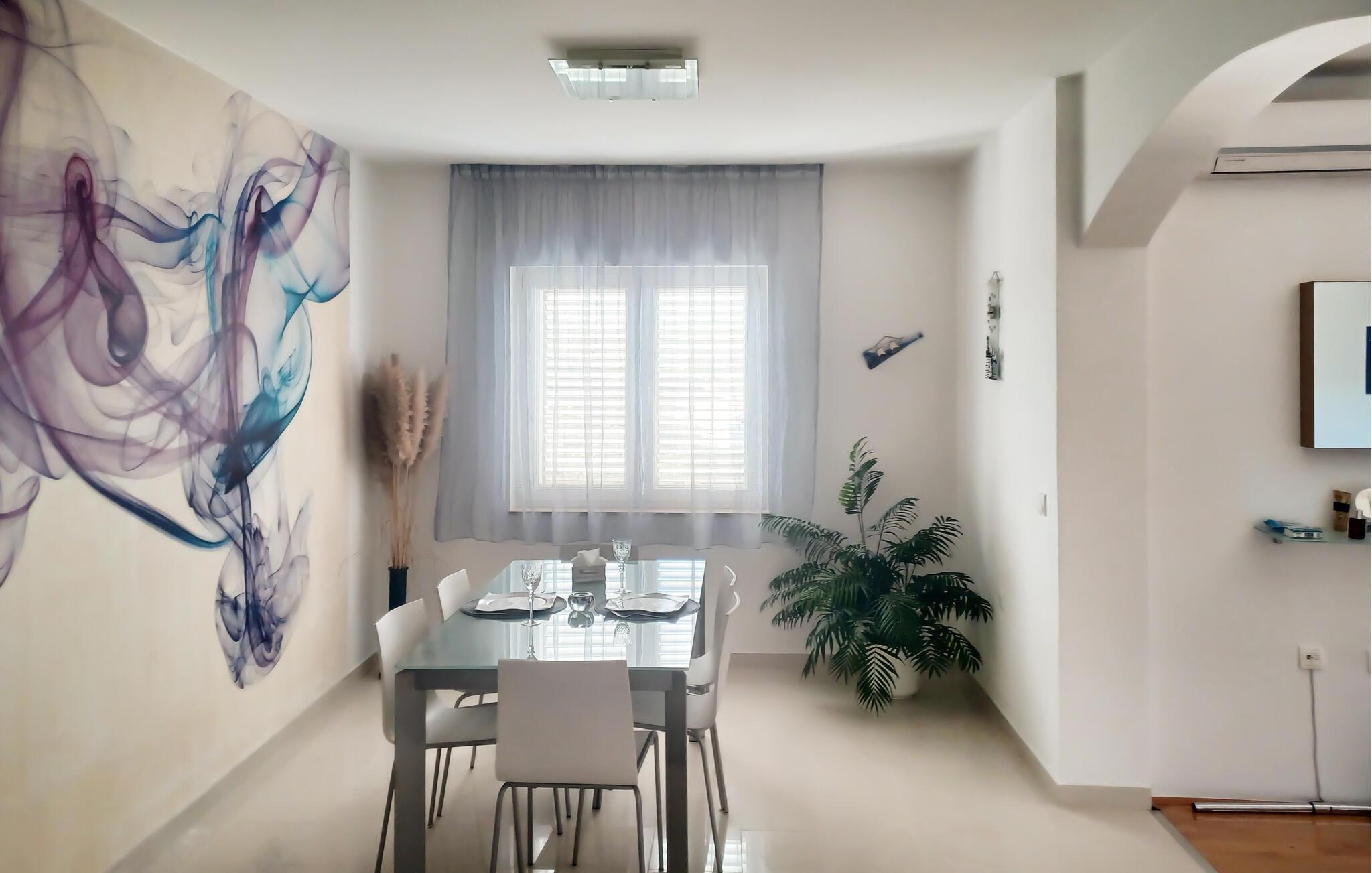 Sæt hverdagen på pause i denne moderne ferielejlighed med havudsigt.