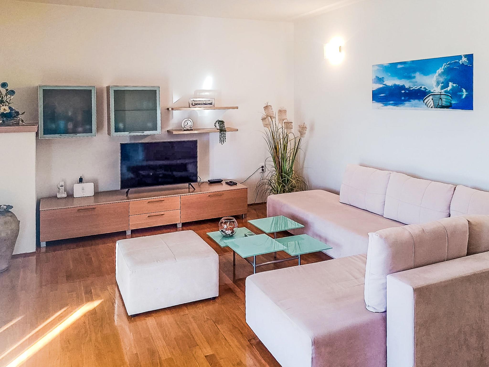 3-room apartment 140 m2 on 1st floor. Beautiful and tasteful furnishings: living/dining room with 1 sofabed (150 cm, length 200 cm), satellite TV and air conditioning. Exit to the balcony. 2 rooms, each room with 1 french bed (160 cm, length 200 cm). 1 room with 1 french bed (140 cm, length 200 cm), shower/WC. Open kitchen (oven, dishwasher, 4 ceramic glass hob hotplates, freezer, electric coffee machine). Shower/WC. Terrace furniture. Beautiful view of the sea.