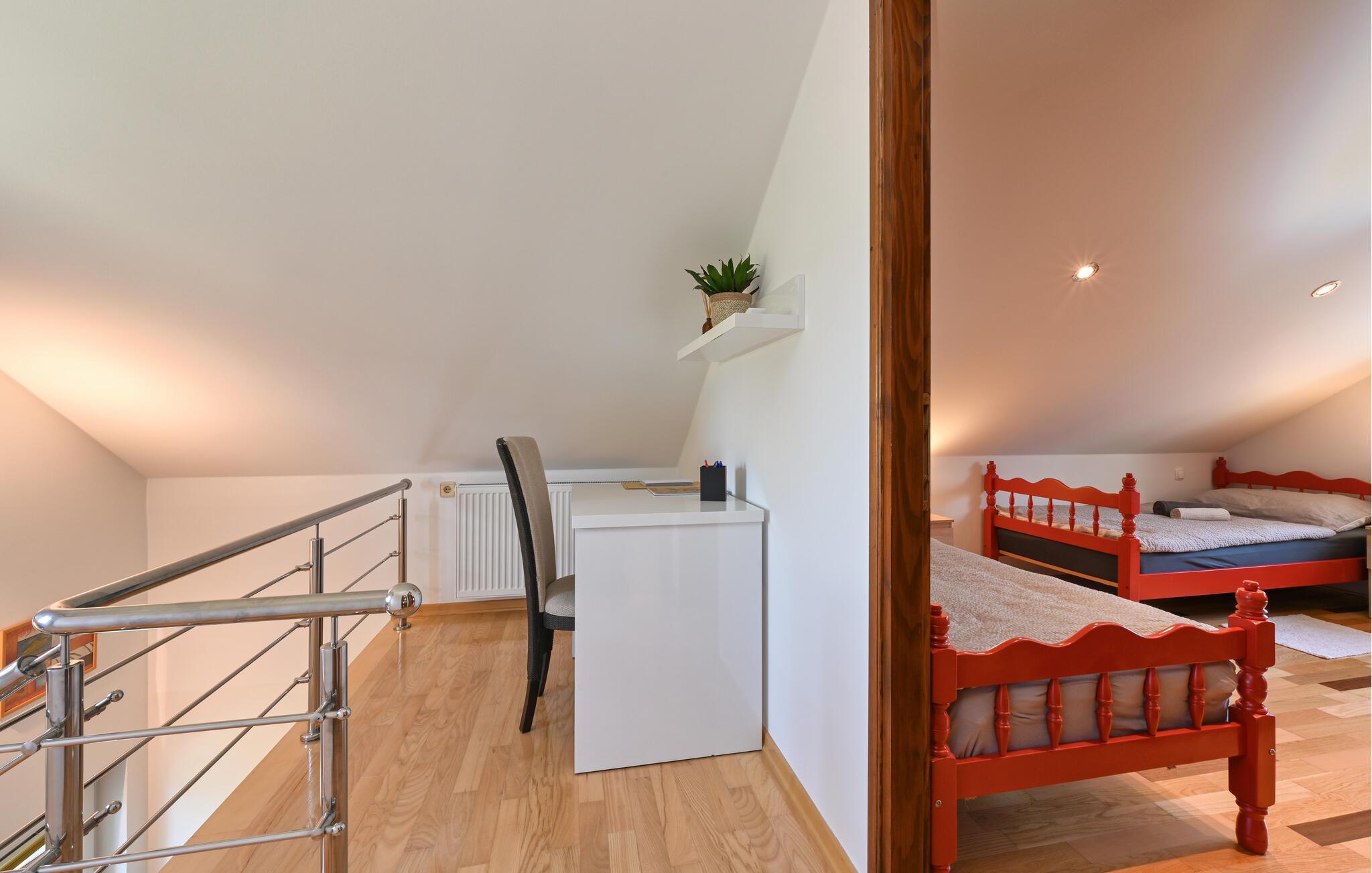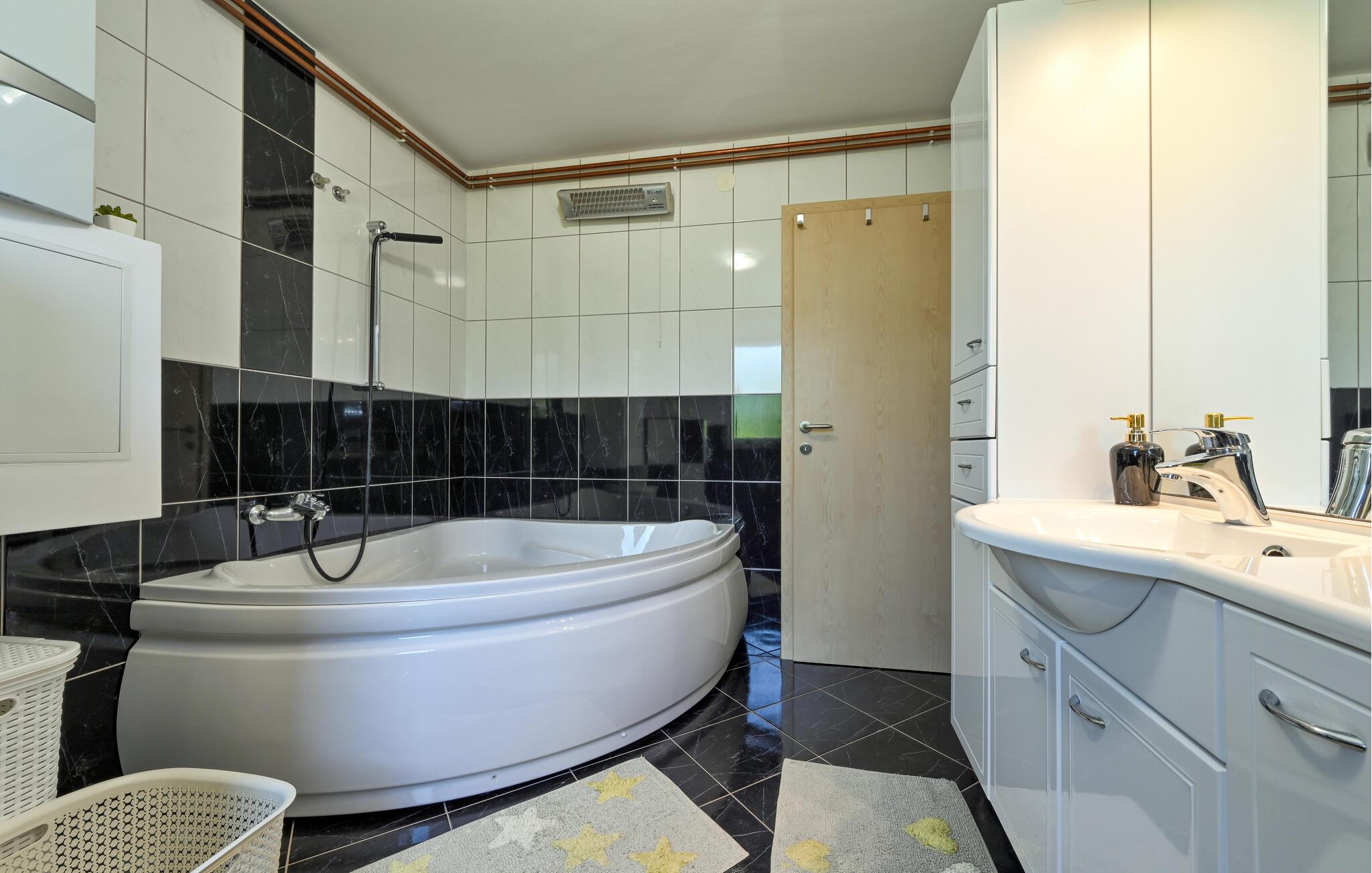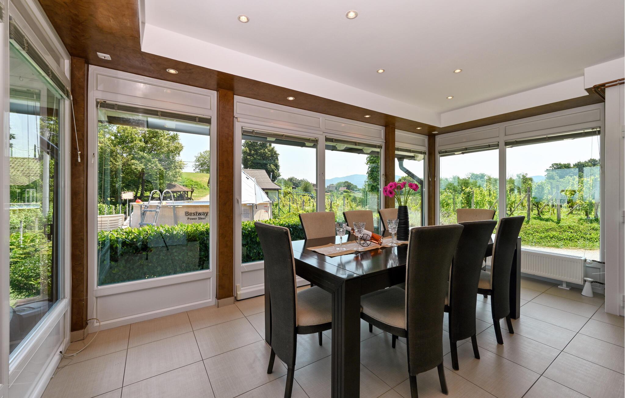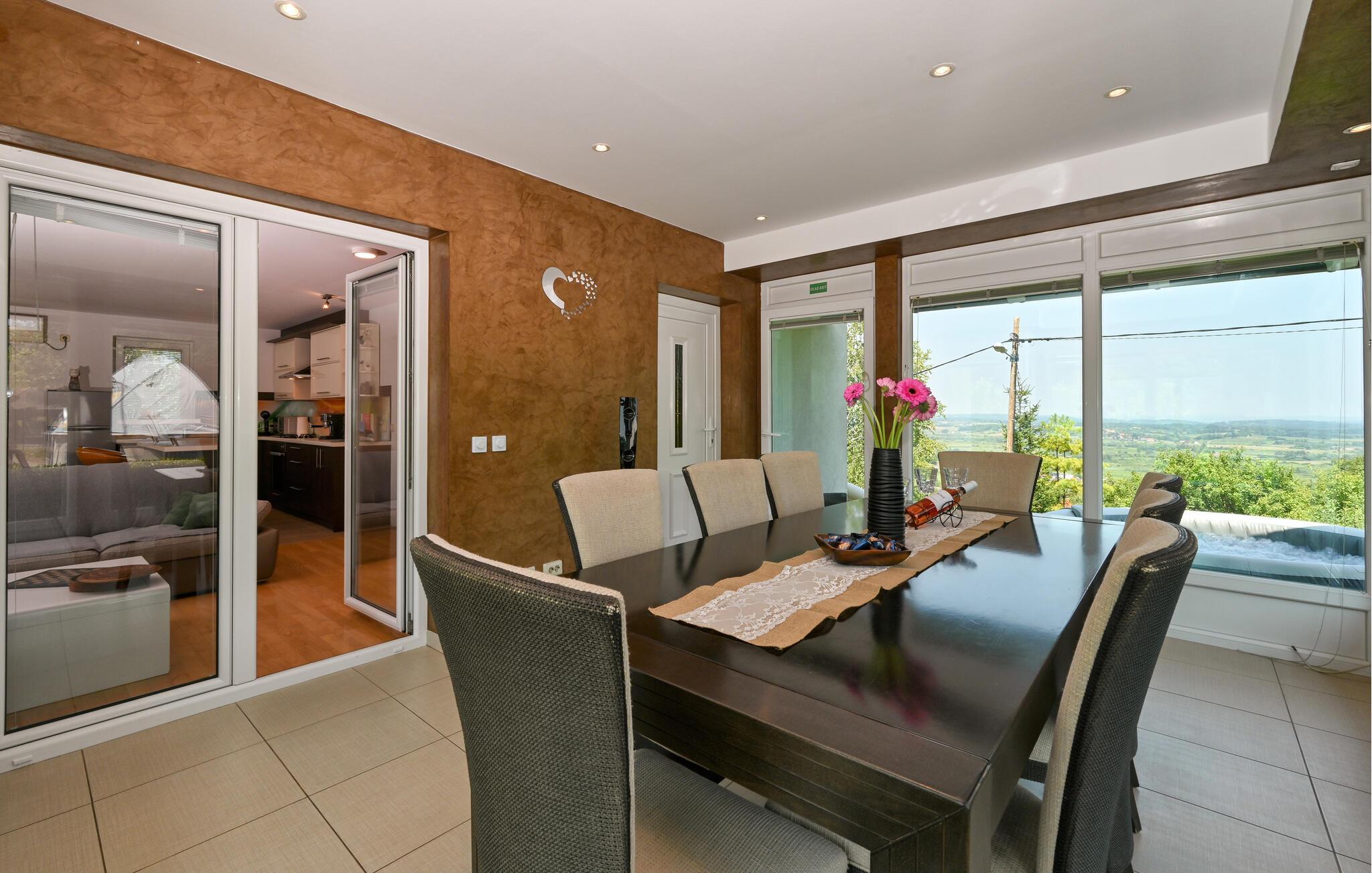 Pak jeres kufferter, og lad jer fortrylle af det skønne Nordkroatien. En ferie i dette hus i Salinovec byder på ro og afslapning i nogle maleriske omgivelser. Huset har en idyllisk beliggenhed og moderne faciliteter, der opfylder alle jeres ønsker. Begynd dagen med en lækker morgenmad under de skyggefulde træer på terrassen. Hop derefter i badebassinet, eller slap af i spabadet. Fra jeres hus har I en betagende udsigt over den omkringliggende natur. Indendørsområdet er stilfuldt indrettet og indbyder til nogle hyggelige stunder med hele familien.