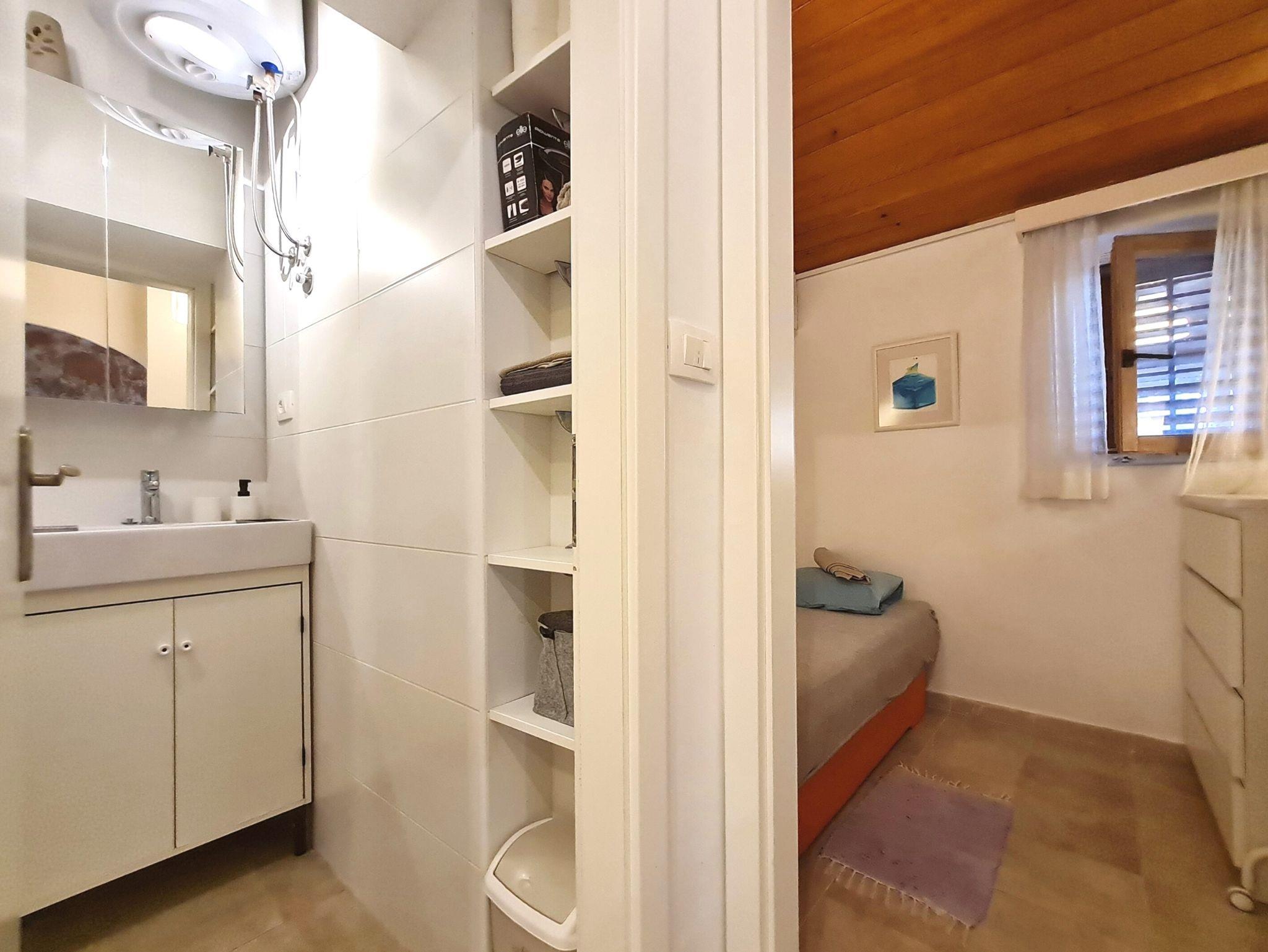 Haus bietet Platz für 4 Gäste. Die Betten sind in Schlafzimmern, die es 1 gibt, und in Wohnzimmer, innerhalb einer Gesamtfläche von 26m2, angeordnet. Die Gäste haben eine eigene Terrasse zur Verfügung, auf der sie in warmen Sommernächten genießen können. Das Haus bietet Meerblick. Es ist erlaubt, Speisen auf dem Gemeinschafts-Grill vorzubereiten. In der Unterkunftseinheit besteht die Möglichkeit des Mitbringens von Haustieren gegen Aufpreis. IM PREIS INBEGRIFFEN: Kurtaxe, Endreinigung, Parkplatz, Internet, Bügeleisen, Bügelbrett, Föhn, tragbarer Grill. VERBINDLICHE ZUSÄTZLICHE KOSTEN: Aufzahlung für Kurzaufenthalte (prozentualer Zuschlag pro Nächtigungsanzahl: 30% - 1, 20% - 2, 10% - 3). UNVERBINDLICHE ZUSÄTZLICHE KOSTEN: Haustiere (10,00 € pro Nacht). Die Verfügbarkeit zusätzlicher Dienstleistungen in Ihrem reservierten Termin und die Preise derselben (falls nicht aufgeführt) müssen im Voraus überprüft werden. Zusätzliche Dienstleistungen die in der Zahlungsaufforderung nicht aufgeführt sind werden direkt beim Vermieter bezahlt, angenommen der Gast nutzt auch diese. Ermäßigung auf den Grundpreis: Gratistag 14=13 (bei einem Aufenthalt von 14 Tagen oder mehr erhalten Sie einen Gratistag für den Aufenthalt bis 31.12.26).