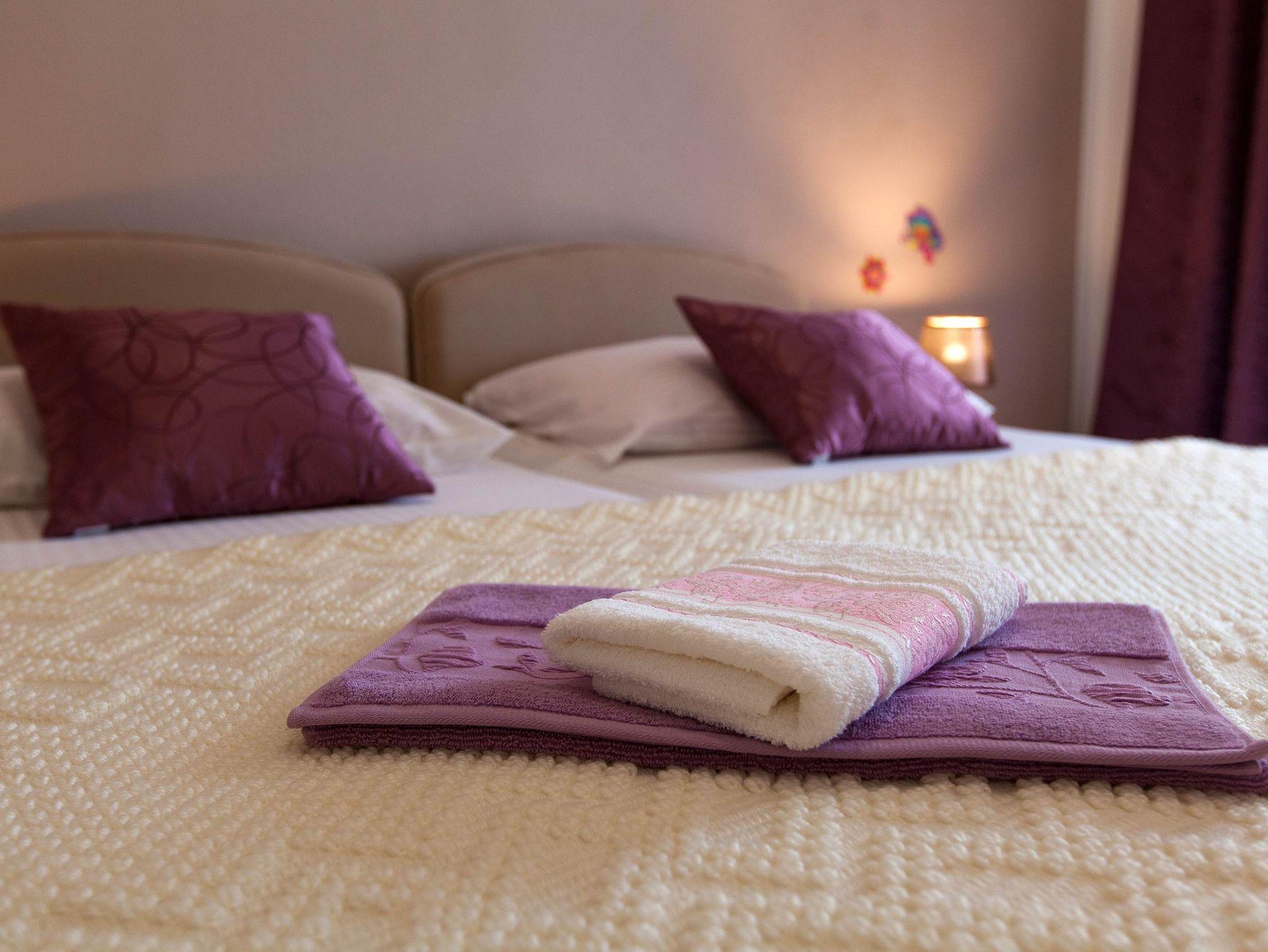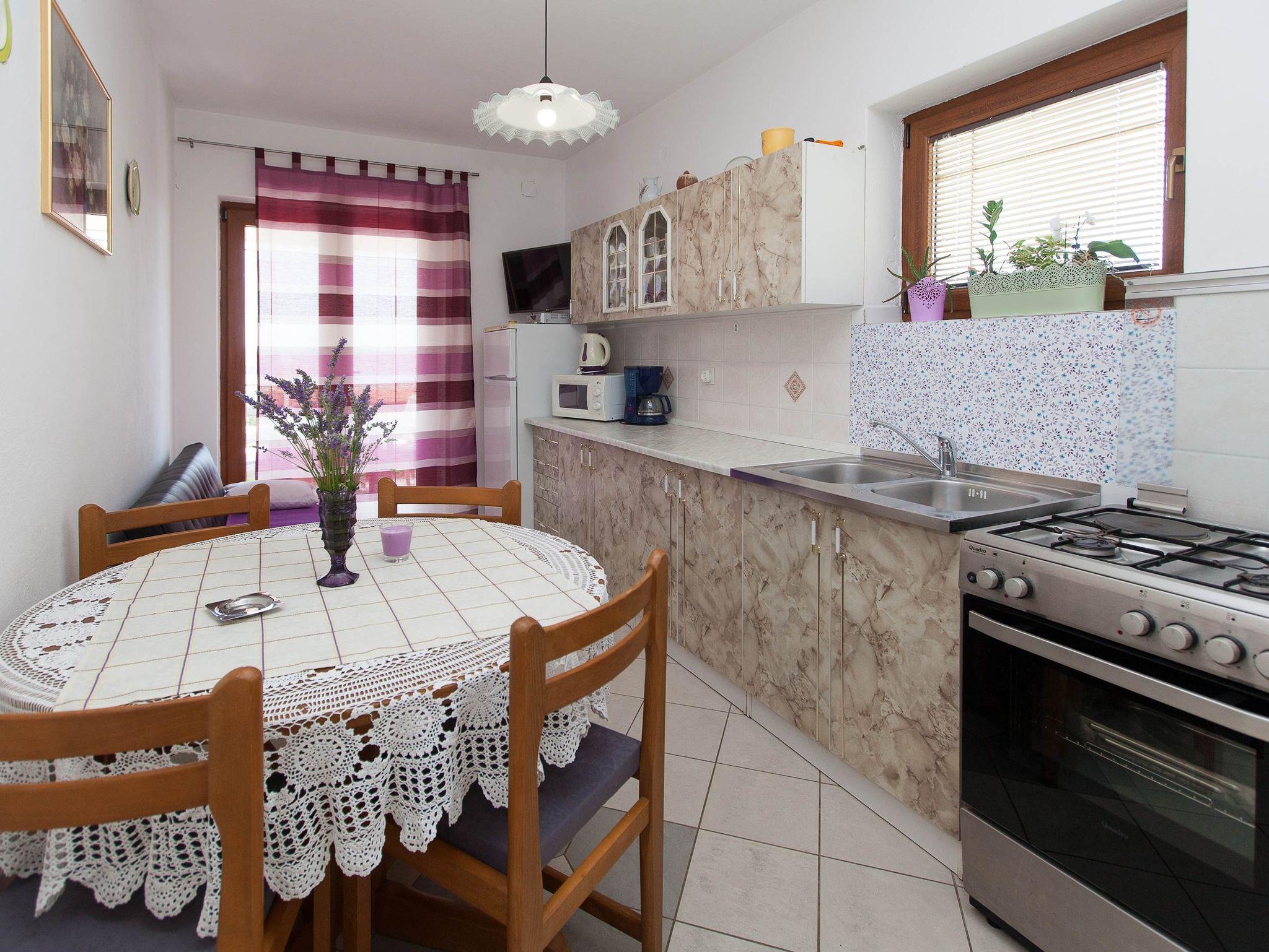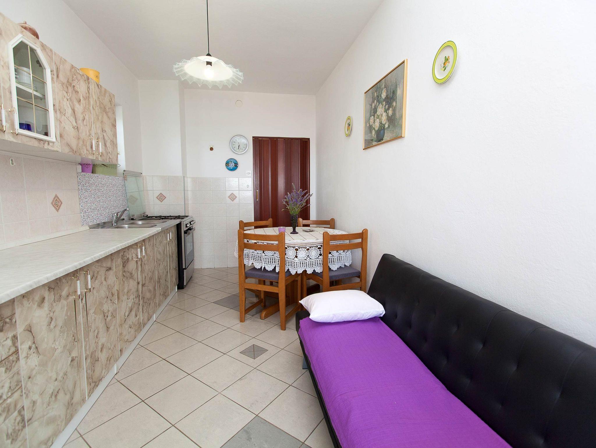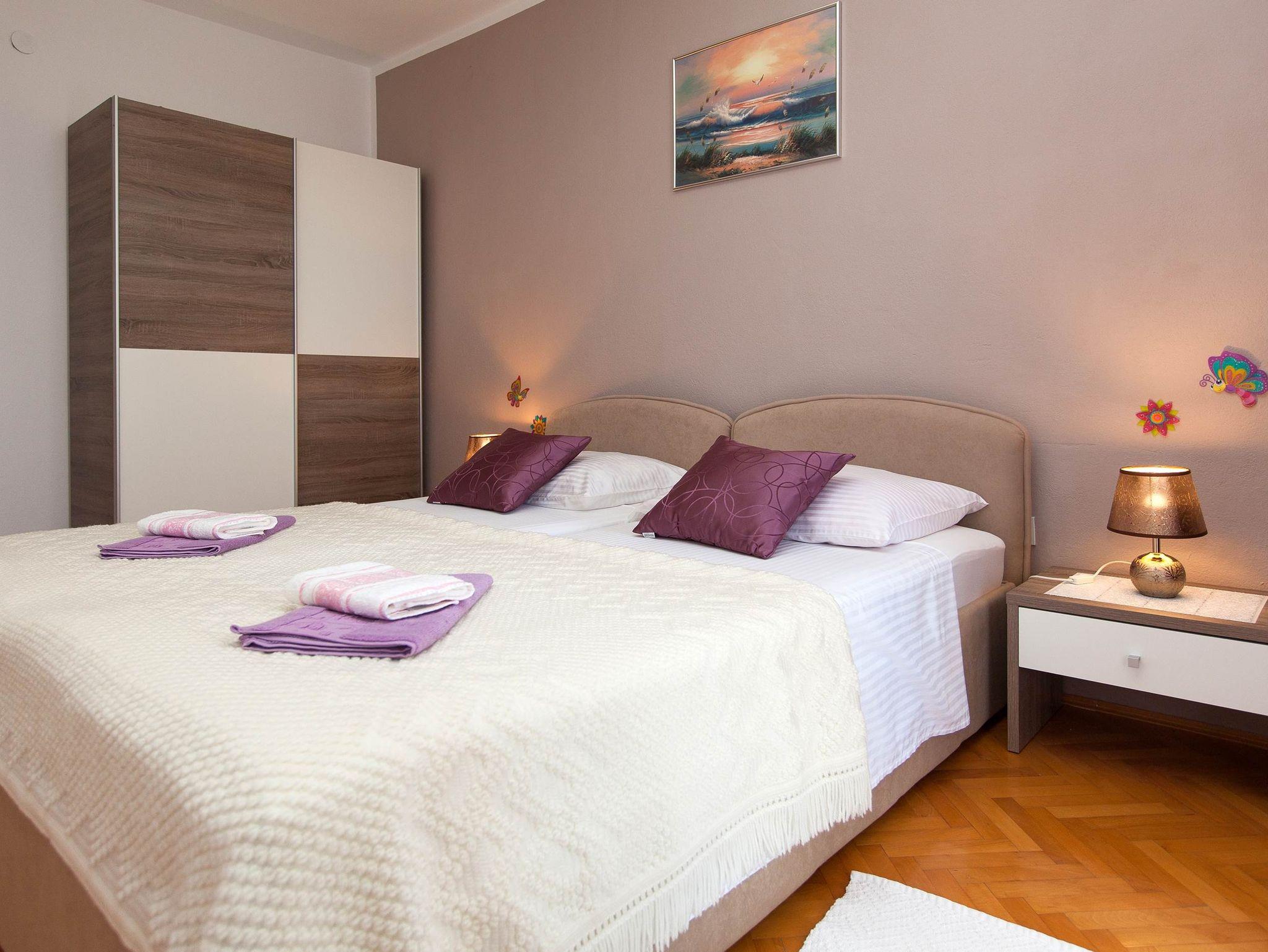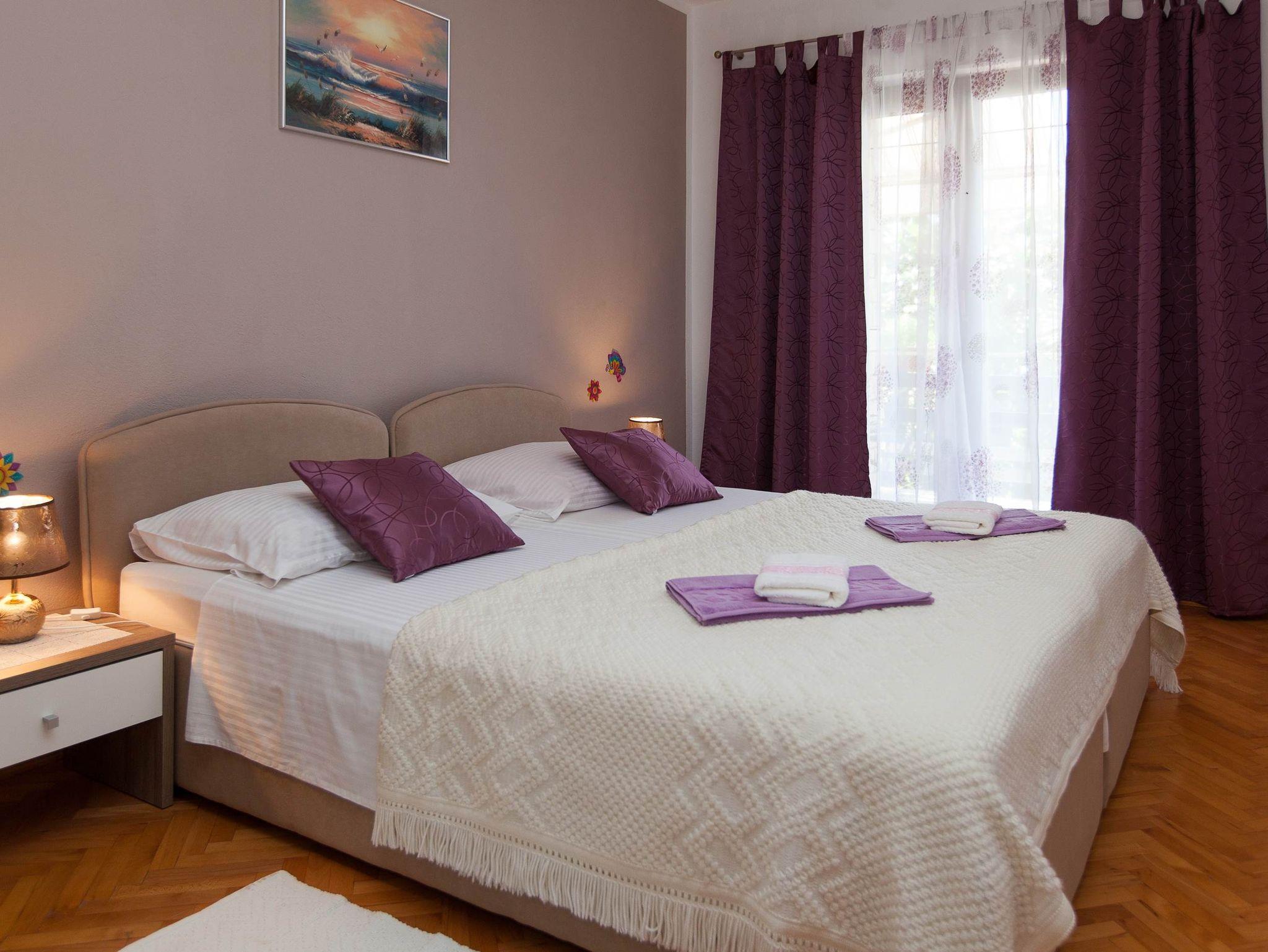 Ferienwohnung bietet Platz für 4 Gäste. Die Betten sind in Schlafzimmern, die es 2 gibt, innerhalb einer Gesamtfläche von 46m2, angeordnet. Die Gäste haben eine eigene Terrasse zur Verfügung, auf der sie in warmen Sommernächten genießen können. Das Apartment bietet Meerblick. Es ist erlaubt, Speisen auf dem Gemeinschafts-Grill vorzubereiten. In der Unterkunftseinheit besteht die Möglichkeit des Mitbringens von Haustieren gegen Aufpreis. IM PREIS INBEGRIFFEN: Kurtaxe, Endreinigung, Parkplatz, Internet, Fahrrad, Kinderbett, Bügeleisen, Bügelbrett, Föhn. VERBINDLICHE ZUSÄTZLICHE KOSTEN: Aufzahlung für Kurzaufenthalte (prozentualer Zuschlag pro Nächtigungsanzahl: 30% - 1, 20% - 2, 10% - 3). UNVERBINDLICHE ZUSÄTZLICHE KOSTEN: Klimatisierung (7,00 € pro Nacht), Haustiere (10,00 € pro Nacht). Die Verfügbarkeit zusätzlicher Dienstleistungen in Ihrem reservierten Termin und die Preise derselben (falls nicht aufgeführt) müssen im Voraus überprüft werden. Zusätzliche Dienstleistungen die in der Zahlungsaufforderung nicht aufgeführt sind werden direkt beim Vermieter bezahlt, angenommen der Gast nutzt auch diese.