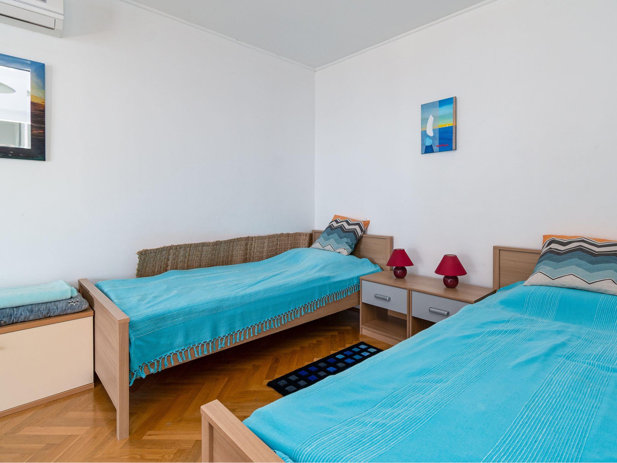 Ferienwohnung bietet Platz für 4 Gäste. Die Betten sind in Schlafzimmern, die es 1 gibt, und in Wohnzimmer, innerhalb einer Gesamtfläche von 38m2, angeordnet. Die Gäste haben eine eigene Terrasse zur Verfügung, auf der sie in warmen Sommernächten genießen können. Das Apartment bietet Meerblick. IM PREIS INBEGRIFFEN: Kurtaxe, Endreinigung, Klimatisierung, Parkplatz, Internet, Bügeleisen, Bügelbrett. VERBINDLICHE ZUSÄTZLICHE KOSTEN: Aufzahlung für Kurzaufenthalte (prozentualer Zuschlag pro Nächtigungsanzahl: 30% - 1, 20% - 2, 10% - 3). Die Verfügbarkeit zusätzlicher Dienstleistungen in Ihrem reservierten Termin und die Preise derselben (falls nicht aufgeführt) müssen im Voraus überprüft werden. Zusätzliche Dienstleistungen die in der Zahlungsaufforderung nicht aufgeführt sind werden direkt beim Vermieter bezahlt, angenommen der Gast nutzt auch diese.