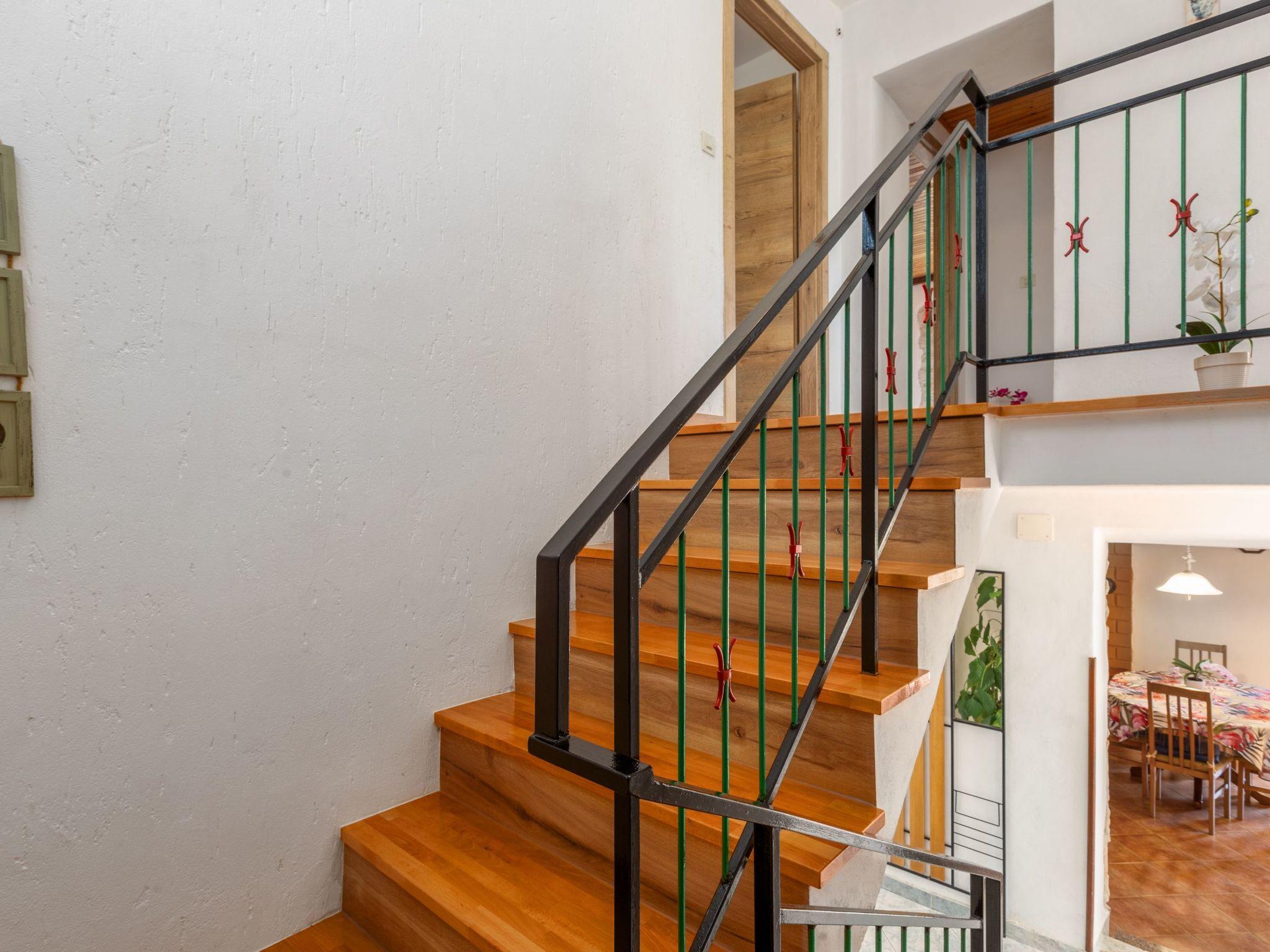 Inside, House Anna is designed to cater to your every need, ensuring a comfortable stay. The ground floor boasts a fully equipped kitchen, complete with a dishwasher, stove, oven, microwave, electric kettle, and a filter coffee machine, ensuring you have everything you need to whip up delicious meals. The dining table is perfectly situated for family meals, while the cozy living room, with direct access to the outdoor terrace, offers a welcoming space to relax. A convenient bathroom with a washing machine, shower, and toilet, as well as a useful storage room, is also located on the ground floor. The first floor comprises three bedrooms, one offering balcony access for a breath of fresh air, alongside an additional bathroom equipped with a shower and toilet, accommodating the needs of families and guests alike.