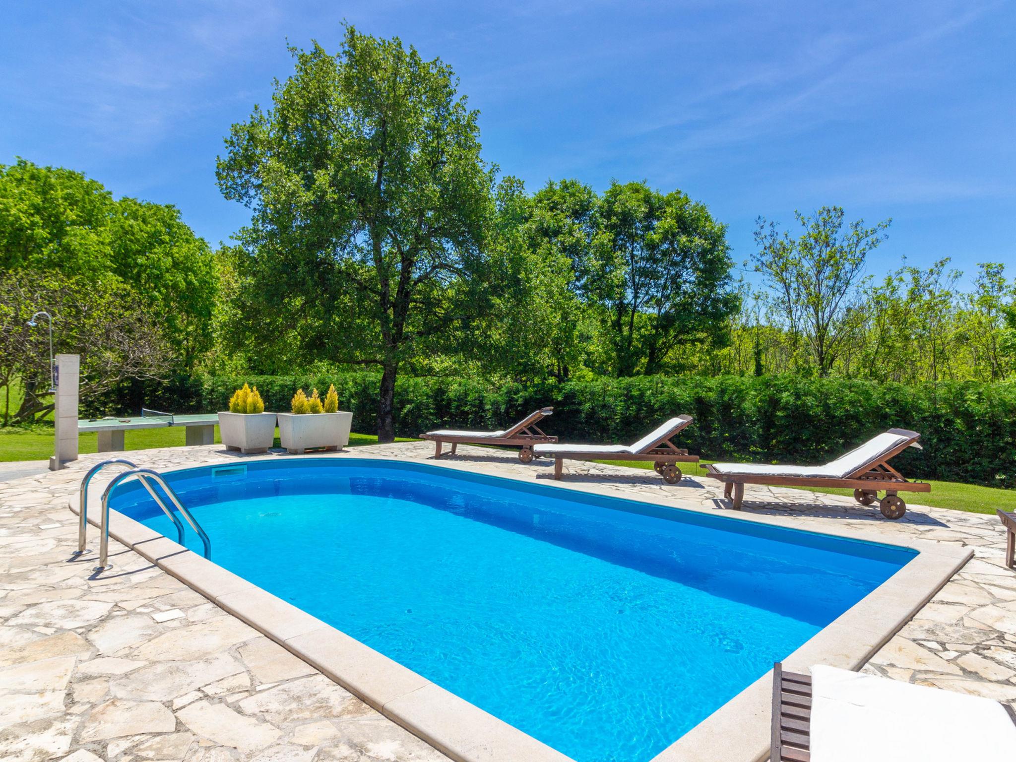 Beautiful villa Morena a semi-detached holiday house with private swimming pool in Tinjan. This wonderful villa is positioned on a plot of 4000 m2 with extraordinary well manteined lawn. Inside the plot is a private parking for 2 cars, a private pool of 30 m2 size, an outdoor covered dinning area with a full equipped kitchen near the pool. For your relax time you can play table tennis, volleyball, badminton. Kids can enjoy also on swings :-)